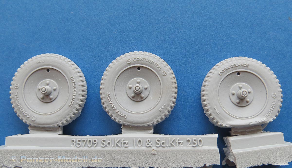In der Blisterverpackung finden wir 3 Resinteile für die Fronträder der Sd.Kfz.250 und Sd.Kfz.10 in 1:35