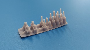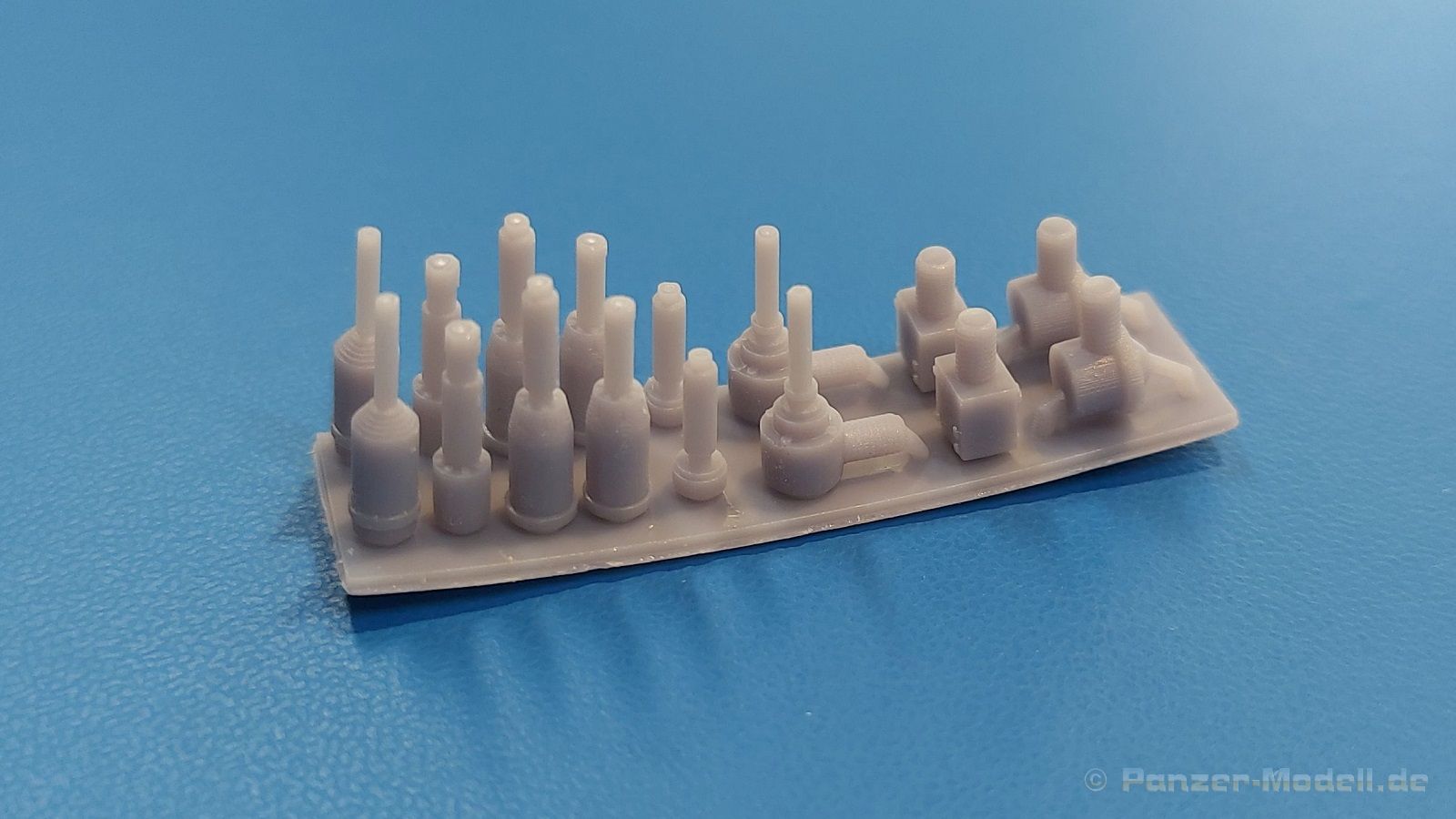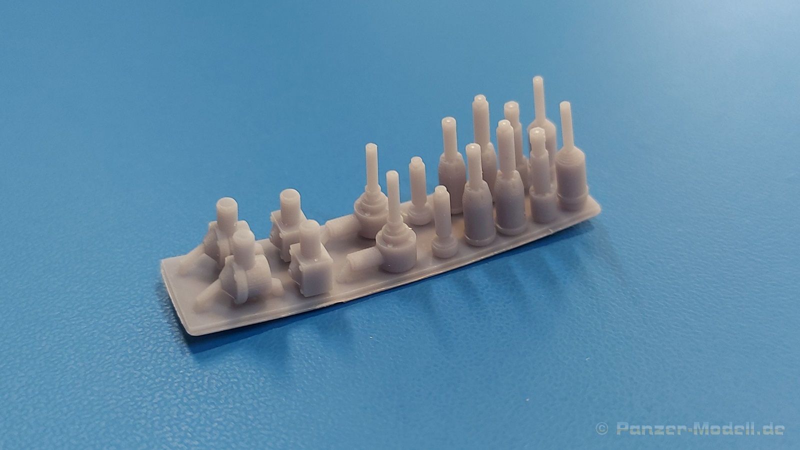 JGSDF antenna bases Für Fahrzeuge der japanischen Bodenselbstverteidigungsstreitkräfte (JGSDF Japan Ground Self-Defense Force) bietet FC Model Trend ein Set Antennenfüße an. Die acht Antennenfußpaare befinden sich auf einer großen Basisplatte in einer 105x60x22 mm großen Blisterverpackung. Die 3D gedruckten Teile zeigen feine Details und sind sauber ausgedruckt. In der Nahaufnahme sind sogar Schraubenköpfe zu erkennen, sofern beim Original vorhanden. Die Füße sitzen auf einer Platte und sind nur mit am unteren Ende mit dieser verbunden. Da gibt es so gut wie keine Versäuberungsarbeit nach dem Abtrennen. Die Palette von 6 Antennenfuß- und 2 Antennenfußbodenpaaren deckt so ziemlich alle Antennenfüße der Fahrzeuge der JGSDF ab. Antennenfüße und -böden können miteinander kombiniert werden, um sie z.B. an einem Type 87 Aufklärungsfahrzeug anbringen zu können. Eine Bauanleitung gibt es nicht und braucht man auch nicht, aber es wäre schön gewesen, wenn eine Beschreibung vorhanden wäre, die angibt, welcher Fuß für welches Fahrzeug verwendet wurde. So bleibt nur die eigene Recherche.
