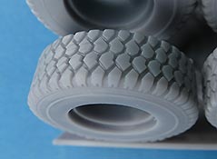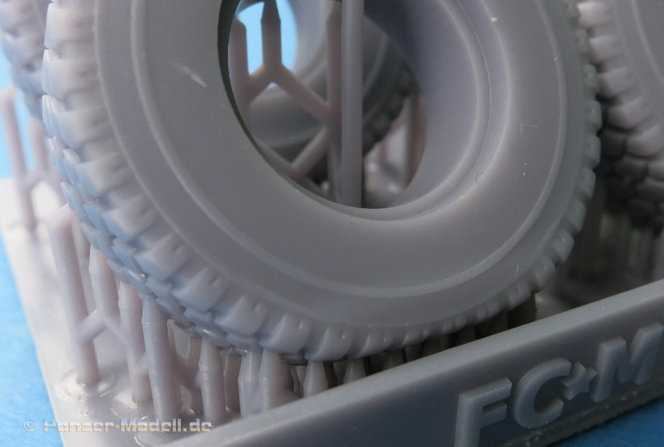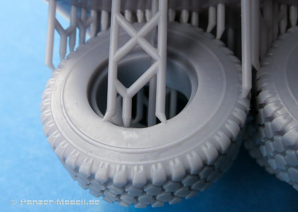 Die vier Reifen sind ohne Felge gedruckt und werden auf die Bausatzfelgen gesteckt. Die Druckstützen sind relativ klein und von geringer Zahl.