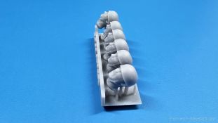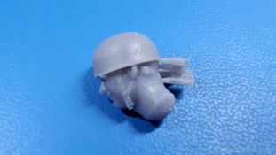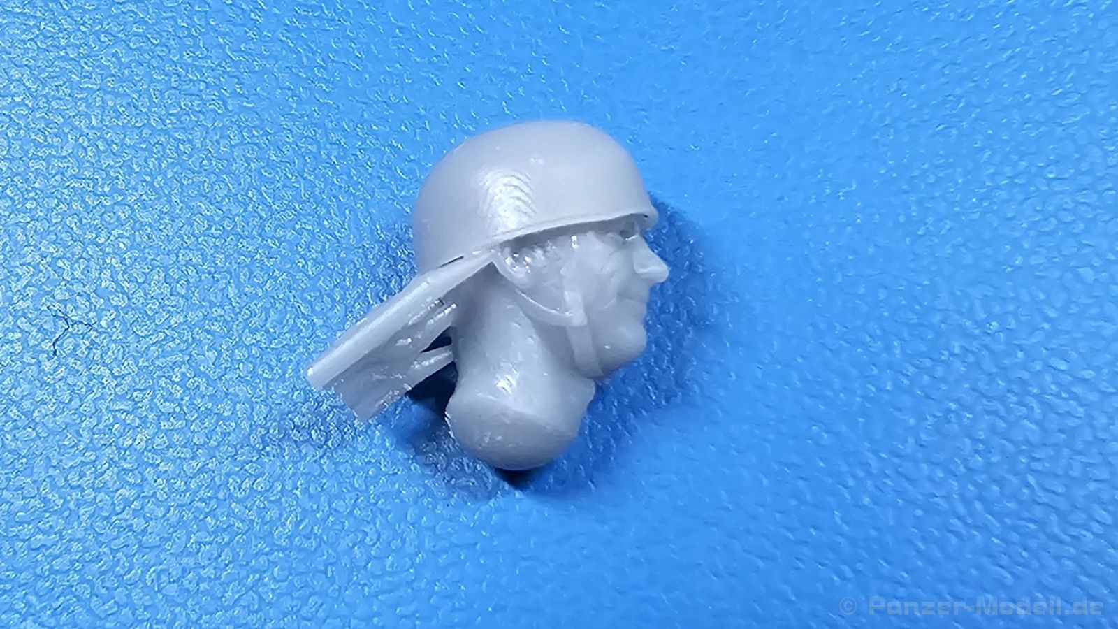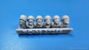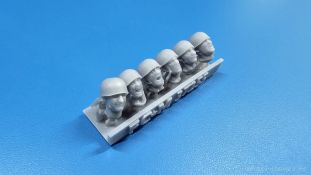 German heads with M38 helmet WWII FC Model Trend ist seine 3D-gedruckten Modelle und Zurüstsätze bekannt. Der spanische Hersteller hat sich einen Kopf gemacht, was anderes auch in 3D-Druck machbar wäre, und hat Köpfe für sich entdeckt. Da sich der M35 Standardhelm der Wehrmacht mit seinem vorstehenden Vorder- und Hinterschirm in den Fangleinen eines Fallschirmes verfing, wurde der M38 eben ohne diese Schirme, aber mit zusätzlichem Nackenriemen entwickelt. In der Blisterverpackung des Herstellers befindet sich eine 3D-Druckbasis mit 5 Köpfen mit eben solchen M38 Helmen, wie sie von deutschen Fallschirmjägern im 2. Weltkrieg getragen wurden. Jedes Gesicht zeigt einen anderen Ausdruck von grinsend über erstaunt bis hin zu schreiend. Es sind Unterschiede bei den Gesichtern deutlich erkennbar, die auch auf die unterschiedlichen Nasenformen zurückzuführen sind. Bei den Helmen sind die typischen Riemen samt Verschlüssen und Nackenriemen vorhanden. Leider entsprechen die gedruckten Köpfe nicht dem beiliegenden Produktbild, denn die Formen erscheinen etwas weich und schwammig. Grad die Nackenriemen der Helme erscheinen stellenweise arg flach, bzw. verschwinden hinter den Ohren fast vollständig. Macht Euch anhand der Fotos einen eigenen Eindruck. Im deutschen Handel liegt der Preis um die 11,- Euro, was im gleichen Preissegment ist wie Köpfe anderer Hersteller ist.