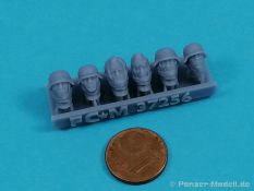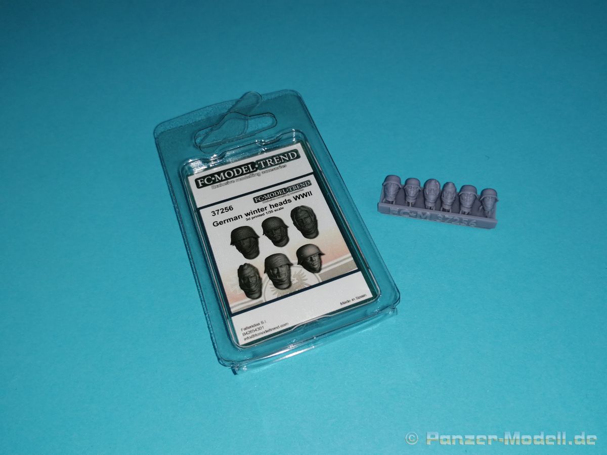 German Winter Heads WWII Mittlerweile hat sich auch FCMT der Herstellung von verschiedenen Köpfen angenommen. In einem weitere Set befinden sich ebenfalls sechs Köpfe in einer Blisterverpackung. Diese sind in Reihe auf einem Drucksteg und nur mit den Hinterköpfen durch die Supports an diesem befestigt. Ein Abtrennen sollte problemlos möglich sein. Auf den ersten Blick machen die Köpfe keinen schlechten Eindruck. Vor allem die Physiognomie kann gefallen. Ernste Gesichter und “Grinsebacken”. Recht nett sind die Schals und sonstigen Kleidungsstücke die die Köpfe gegen die eisigen Temperaturen schützen.