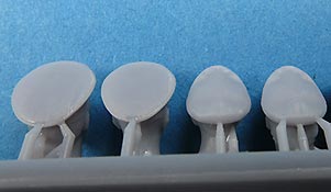 Auf einer Druckplatte sitzen 6 verschiedene Köpfe in einer Reihe, die Druckstützen sitzen an der Unterseite des Halses und an der Rückseite der Mützen. Diese sind klein und an der Zahl gering, die Versäuberung sollte schnell und problemlos vonstatten gehen.