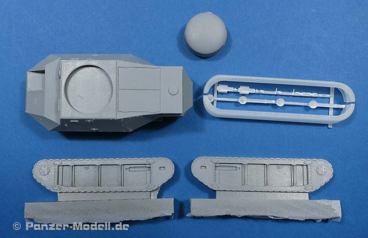 Ergänzt wird der Bausatz durch die 3D Druckteile, die das Modell weiter ergänzen, wie z.B. Abschleppösen, die Auspufftöpfe oder eben die Bewaffnung - hier hat der Modellbauer die Wahl zwischen den Lewis oder DT MGs. Die beiden großen Kettenabdeckbleche sind ebenfalls als 3D teile enthalten und machen einen guten Eindruck.