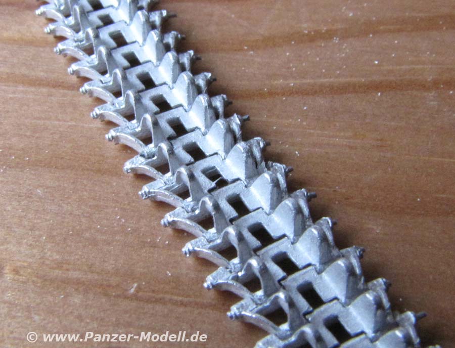 Prinzipiell handelt es sich hier um die Panzer II Kette aber mit eben wesentlich mehr Kettengliedern, da der LWS ein extrem langes Fahrwerk hat - dies ist auch der Grund für den deutlich erhöhten Preis von ca. 38 Euro. Damit aber immer noch deutlich billiger als 2 einzelne Kettensätze und absolut eine nötige Ergänzung für das Modell.