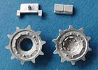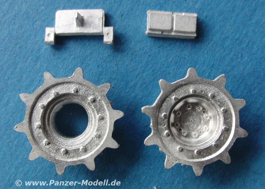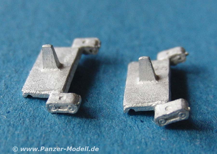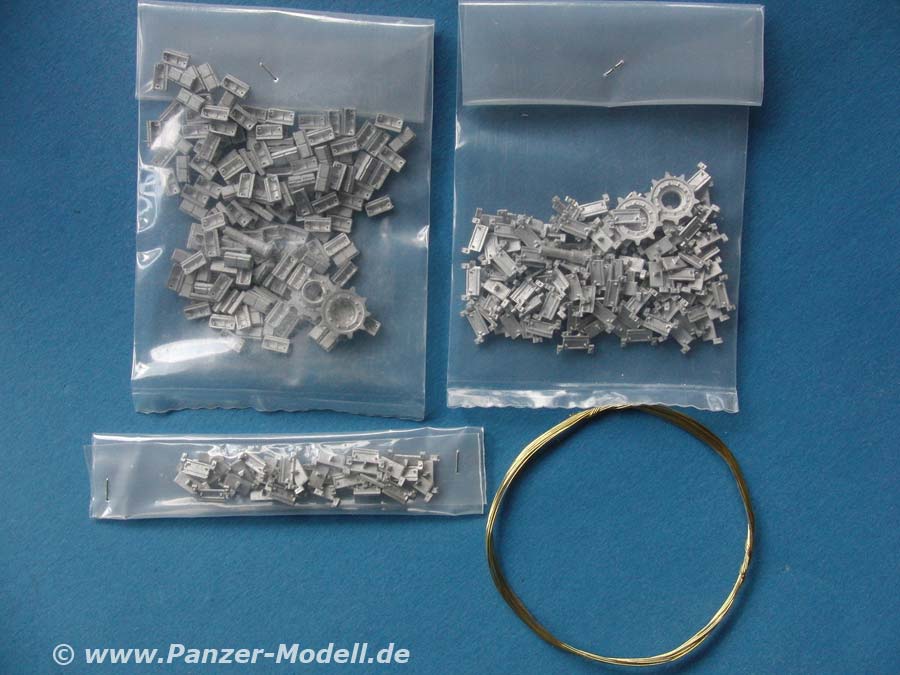 Die Ketten sind sehr sauber in Metall gegossen mit feiner Detaillierung und durchweg feinen Löchern für den Steckbolzen. Die Kettenpolster sind als separate Teile in einem Beutel enthalten und müssen auf die kettenglieder aufgeklebt werden.