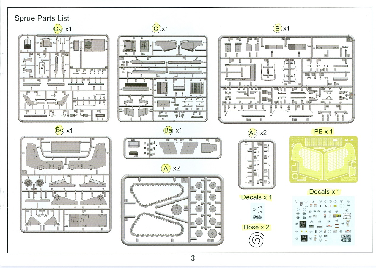 Die farbige Bauanleitung im Querformat für das kleine Fahrzeug hat immer noch 20 Seiten und es empfiehlt sich, diese „vor Baubeginn“ sehr genau zu studieren, grad wegen Bemalungen und Decalanbringung, die bereits in den Bauschritten zu erfolgen haben. Auf dem Deckblatt finden wir Informationen zum Original in Englisch, Deutsch, 2x Chinesisch und Japanisch. Arbeits- und Warnhinweise, Symbolerklärungen, empfohlenes Werkzeug und Hinweise zur Decalanbringung sind auf Seite 2. Auf Seite 3 gibt es die Teileübersicht. Für den Bau des Fahrzeugs gibt es 30 übersichtliche und gut verständliche Bauschritte. In den Bauschritten tauchen immer wieder Hinweise zur Detailbemalung und Decalanbringung (z.B. Armaturen) auf. PE-Teile sind immer in einem Goldton angegeben. Dass die Teile gebogen werden müssen, wird mit dem passenden Symbol angegeben. Unterbaugruppen, die in späteren Bauschritten verbaut werden, bekommen einen roten Kleinbuchstaben in einem Kasten, der dann später wieder auftaucht, wenn die Baugruppe einge-/verbaut werden soll. Zum Schluss gibt es die Decalanbringung für ein Fahrzeug und die Bemalungsanleitung mit Farbangaben für Mission Models Farben. Das Zusatzblatt liefert dann das gleich für das zweite Fahrzeug. Auch hier findet man sehr, sehr viel Liebe zum Detail und zur Technik. Ich sehe da puren Bastelspaß auf einen zukommen, der aber Geduld und präzises Bauen fordern wird. Für Anfänger kein geeignetes Übungsgerät. Man sollte vorher schon ein,- zwei Bausätze mehr zusammengebaut haben. Sieht man nur das Material, kommt einem ein Preis zwischen 35 und 38 Euro vielleicht viel vor, aber Qualität und Details rechtfertigen ihn dann doch. Eine runde Sache und durch die Beweglichkeit der Schaufel und -arme bieten sich Gestaltungsmöglichkeiten für ein feines Diorama. Kleiner Tipp zum Schluss - wer das große Decalblatt genau betrachtet hat, wird 3(!) Bausatznummern gesehen haben. Nach dem Rad- und Raupenlader kommt also noch eine dritte Version!