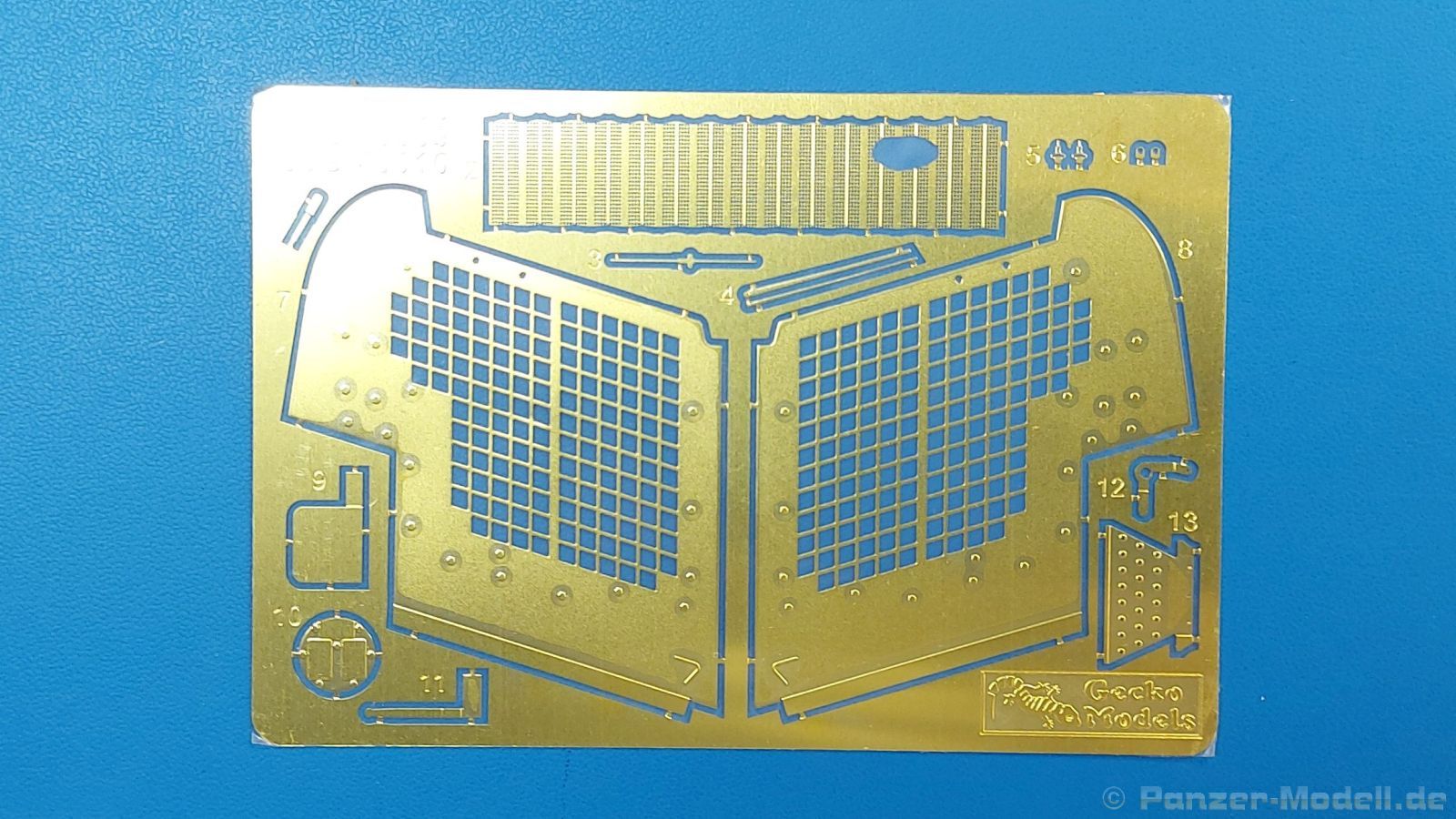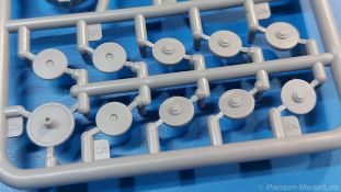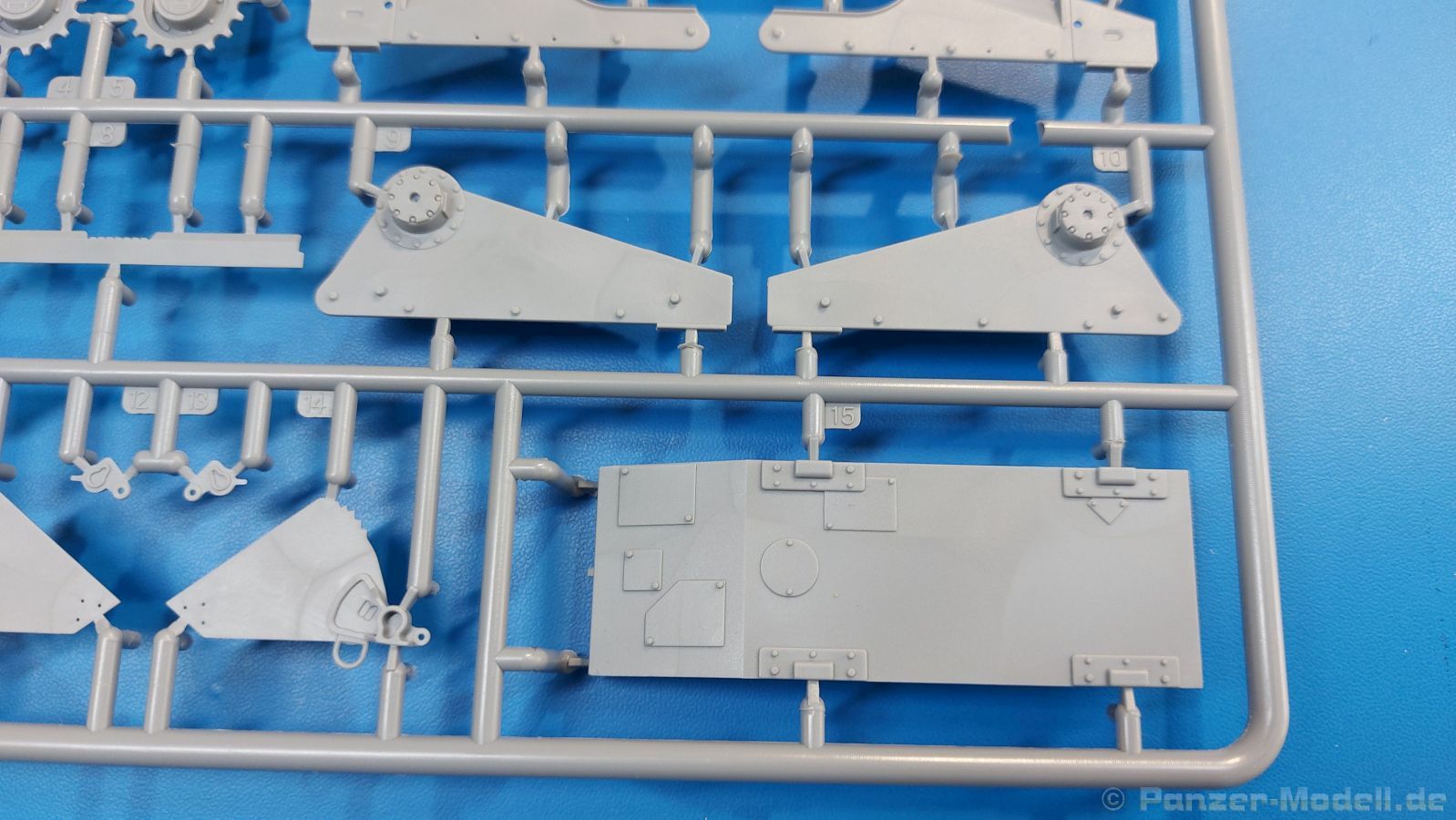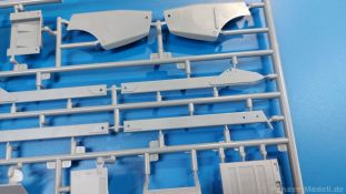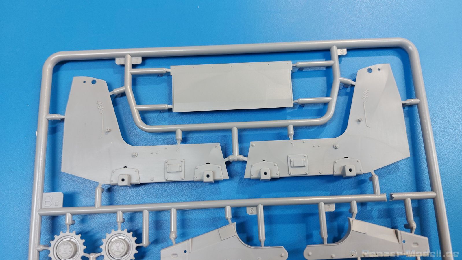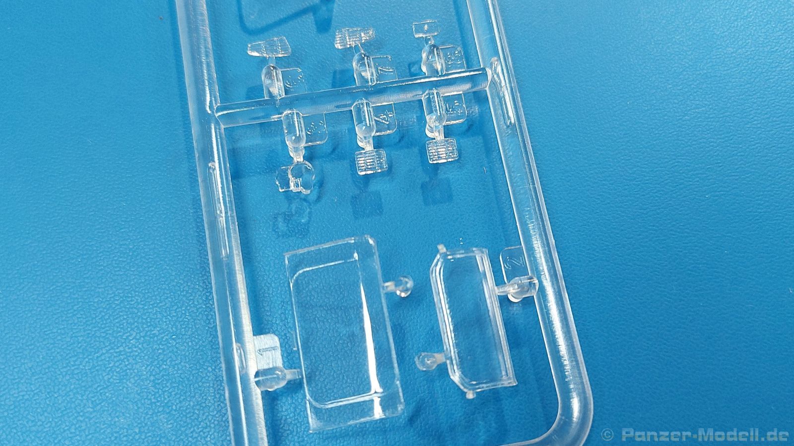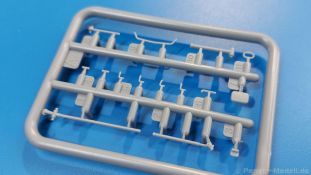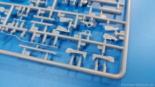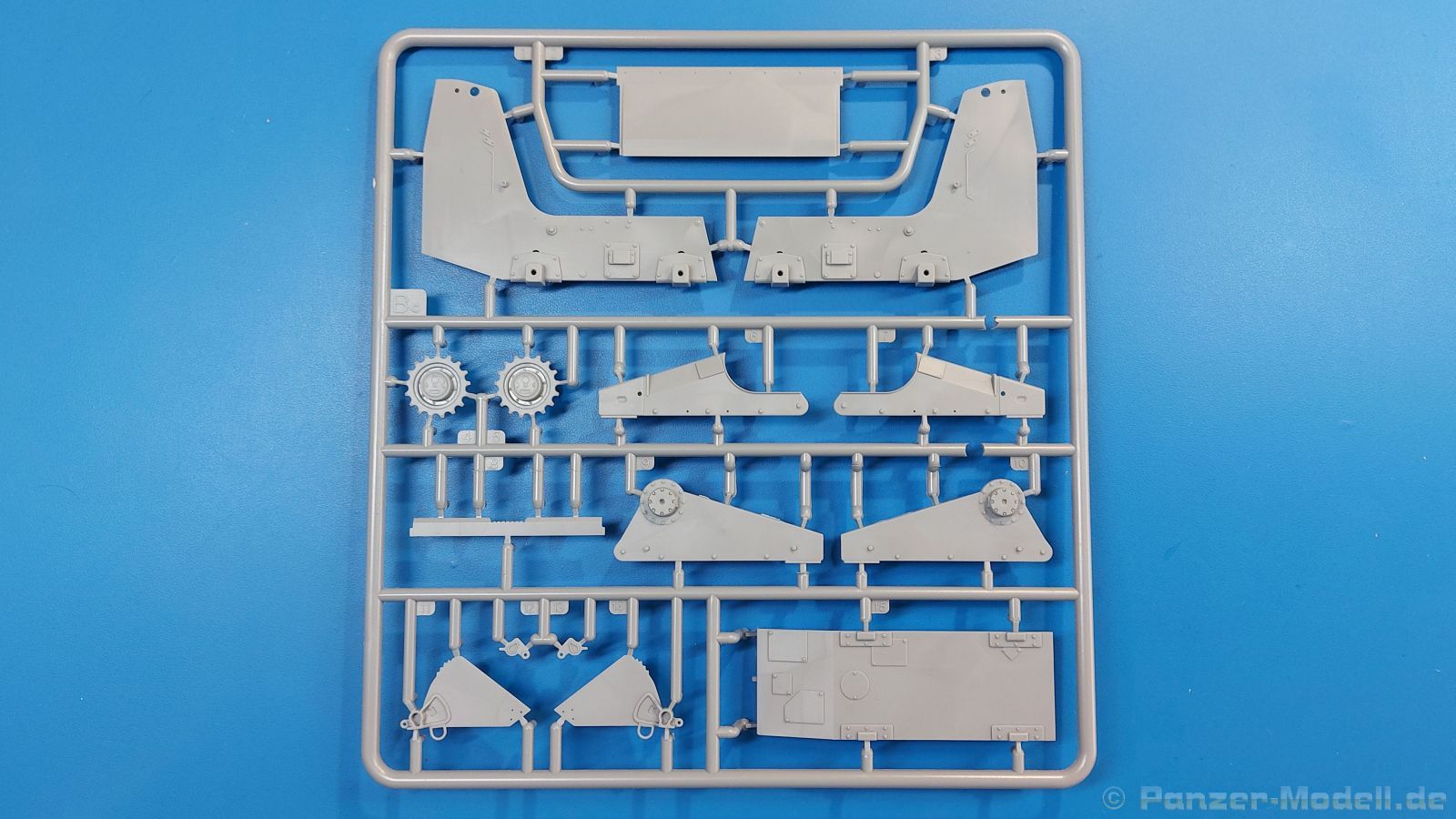 Der Bausatz: Wenn Gecko Models einen Bausatz rausbringt, der auch im Original Versionen vorweist, kann man damit rechnen, dass nach dem ersten Modell nicht Schluss ist. So kann man möglichst großen Nutzen aus den vorhandenen Formen ziehen, Kosten sparen und den Modellbauern trotzdem was anderes zu einem annehmbaren Preis bieten. Sven hat sich bereits den Kompakt-Radlader US Army Light Type III Skid Steer Loader (M400W) angeschaut. Heute zeige ich Euch die Raupenversion davon. Im 330 x 190 x 90 mm großen, stabilen Klappdeckelkarton mit farbigem Überkarton befinden sich 8 hellgraue, 1 Klarsichtspritzling, 1 PE-Platine, kunststoffüberzogener Draht, 1 großes Decalblatt und ein zusätzliches, kleineres und natürlich die Bauanleitung. Die Spritzlinge sind einwandfrei, die Teile ohne Versatz oder Sinkstellen. Nach dem Zusammenbau eventuell sichtbare Auswerferspuren konnte ich jetzt nicht entdecken. Bei sehr feinen Teilen entdeckt man leichten Grat der Formtrennnaht, aber der ist leicht zu entfernen und mir persönlich ist es lieber, etwas zu entfernen als aufwendig auffüllen zu müssen. Die Klarsichtteile sind kristallklar, sowie kratzer- und schlierenfrei, was man bei den großen Scheiben nur begrüßen kann. Ein paar Fotoätzteile, grad für die Schutzgitter, heben das Niveau. Für die flexiblen Hydraulikleitungen gibt es einen kunststoffüberzogenen, feinen Draht, den man auch ohne weitere Bemalung verwenden kann. Die kleine Fahrerkabine wird ein echter Hingucker. Die Bedienhebel, teils aus Plastik, teils aus Fotoätzteilen (PE) sind sehr fein wiedergegeben. Das Verschlussstück eines Beckengurtes ist aus PE wird in die Halterung eingebaut und wird dann so aussehen, als könnte man den Gurt herausziehen. Ein nach oben wegklappbarer Schutzbügel mit angegossener Polsterung im Bauchbereich (wie in manchen Achterbahnen) kann sicherlich bei sparsamem Umgang mit Klebstoff beweglich angebaut werden. Sitznähte und Struktur der Faltenbälge der Joysticks sind sehr glaubhaft. Bedienknöpfe und Schalter der Armaturen sind deutlich wiedergegeben. Die Fenster und die große Einstiegstür sind glasklar. Die Einstiegstür kann meines Erachtens auch geöffnet angebaut werden. An der Tür werden noch Griffe und ein feiner Doppelarmscheibenwischer aus PE angebracht hat. Die Schutzgitter der Seitenfenster sind aus großen PEs, die dazu auch noch sehr schöne Sechskantschraubenköpfe vorzuweisen haben. Es gibt jede Menge Typschilder, Armaturenanzeigen und Warnhinweise, die mittels Nassschiebebildern angebracht werden. Das Schutzgitter im Dach ist bereits durchbrochen. Die Durchbrüche könnten ein klein wenig schärfer sein. Hier ggfs. ein klein wenig sehr vorsichtig nacharbeiten. Fahrscheinwerfergehäuse werden vorn ins Dach eingebaut. Die Scheinwerfergläser dazu zeigen die Riffelung im Glas wie beim Original. An das Hinterteil des Daches wird das Klimagerät angebaut. Das einzubauende Dachfutter hat bereits die Belüftungsklappen und Gitter eingegossen. Zwei Rückspiegel finden auch ihren Weg an die Dachunterseite. Das Motorgehäuse sollte den geringsten Aufwand beim Bau darstellen. Nur für das Gehäusegitter benötigt man PE-Origami-Fähigkeiten, da es in einem mehrfachen V-Muster gefaltet werden muss, damit es in die Aussparungen am Rahmen passt. Das Endstück des Auspuffs ist bereits schön tief geöffnet. Bei der Hydraulikanlage der Schaufelarme und der Schaufel selbst hat sich Gecko Models alle Mühe gegeben, nicht nur bei den Details, sondern auch der möglichen Beweglichkeit aller Teile. Dazu sind die Hydraulikzylinder in zwei Hälften geteilt, damit die Hydraulikstempel, die meist eine Verdickung am Ende haben, nicht mehr ganz herausrutschen können. Für die festen Hydraulikleitungen gibt es dünne, feine Teile aus Plastik, für die flexiblen liegt schwarzer Schlauch (mit einem Draht innen) bei. Für bessere Flexibilität ggfs. den Draht vorsichtig aus dem Schlauch herausziehen. Mit Draht drin lässt er sich aber besser formen. Die Schlauchanschlüsse kommen den Originalen sehr nahe, was sich allerdings auch auf die Größe bezieht und damit in dem Maßstab recht klein sind. Die Schaufel wird inkl. Schläuchen aus 23 Teilen zusammengesetzt. Von den Laufrollen sieht man zum Schluss nicht mehr viel, dennoch besteht jede der drei Laufrollendrillinge aus Innen-, Mittel- und Außenrad. Das Mittelrad läuft dann zwischen den zwei Zahnreihen der Ketten. Die Ketten für jede Seite sind in zwei Hälften geteilt und werden dann über Lauf-, Umlenk- und Antriebrädern zusammengeführt. Das Anbringen des Laufwerks am Gehäuse stellt dann auch den letzten Bauschritt dar. Die Bauanleitung bietet eine Markierungsoption an, ein Zusatzblatt eine zweite: