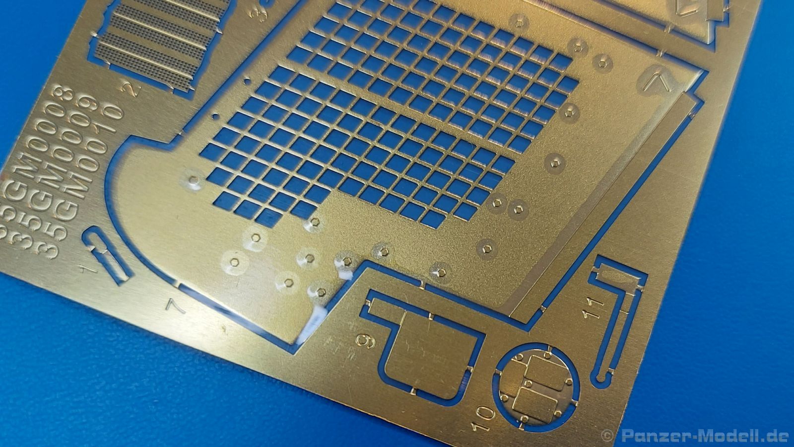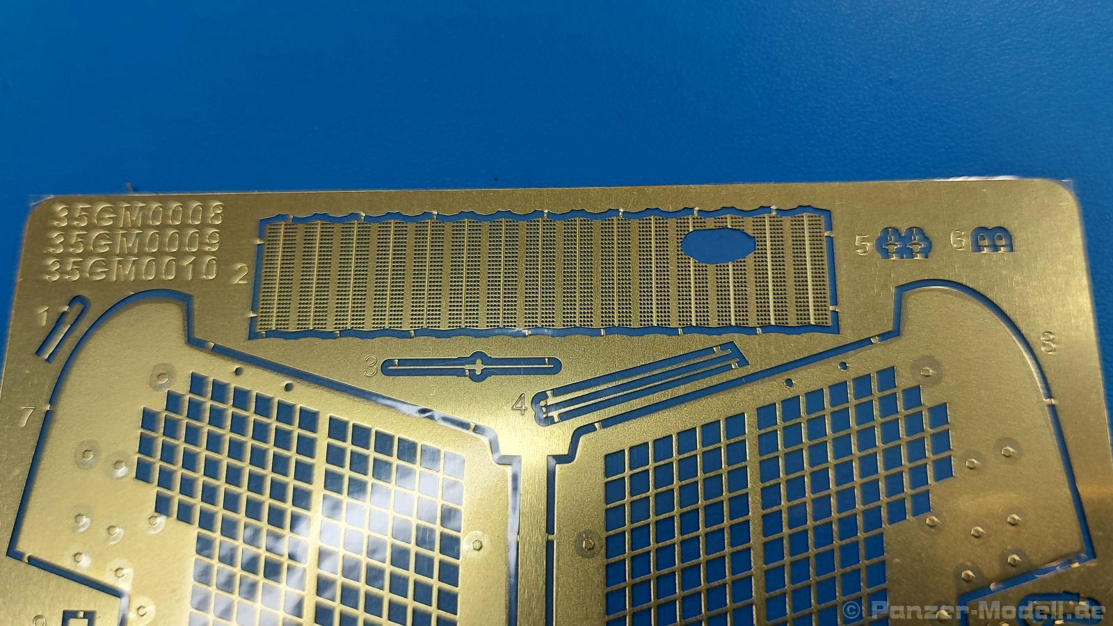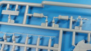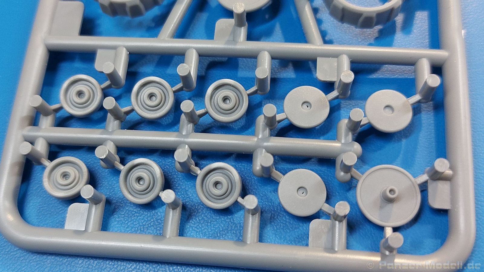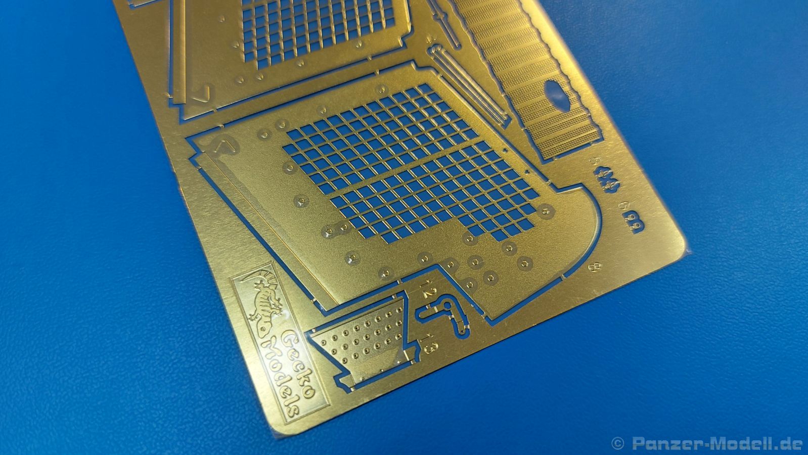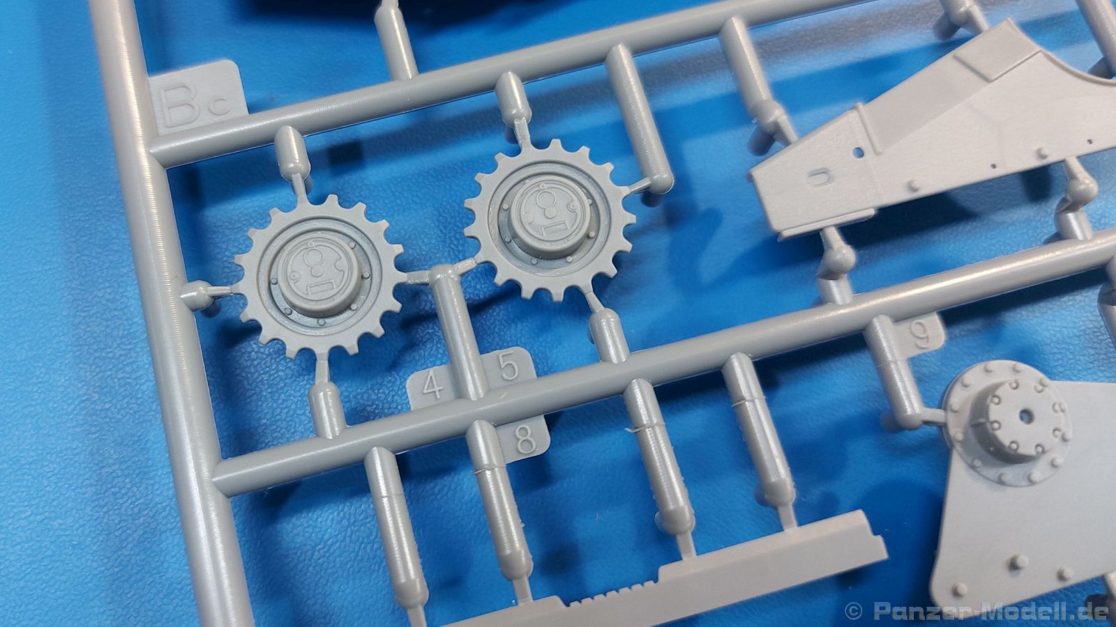 Der Bausatz: Wenn Gecko Models einen Bausatz rausbringt, der auch im Original Versionen vorweist, kann man damit rechnen, dass nach dem ersten Modell nicht Schluss ist. So kann man möglichst großen Nutzen aus den vorhandenen Formen ziehen, Kosten sparen und den Modellbauern trotzdem was anderes zu einem annehmbaren Preis bieten. Sven hat sich bereits den Kompakt-Radlader US Army Light Type III Skid Steer Loader (M400W) angeschaut. Heute zeige ich Euch die Raupenversion davon. Im 330 x 190 x 90 mm großen, stabilen Klappdeckelkarton mit farbigem Überkarton befinden sich 8 hellgraue, 1 Klarsichtspritzling, 1 PE-Platine, kunststoffüberzogener Draht, 1 großes Decalblatt und ein zusätzliches, kleineres und natürlich die Bauanleitung. Die Spritzlinge sind einwandfrei, die Teile ohne Versatz oder Sinkstellen. Nach dem Zusammenbau eventuell sichtbare Auswerferspuren konnte ich jetzt nicht entdecken. Bei sehr feinen Teilen entdeckt man leichten Grat der Formtrennnaht, aber der ist leicht zu entfernen und mir persönlich ist es lieber, etwas zu entfernen als aufwendig auffüllen zu müssen. Die Klarsichtteile sind kristallklar, sowie kratzer- und schlierenfrei, was man bei den großen Scheiben nur begrüßen kann. Ein paar Fotoätzteile, grad für die Schutzgitter, heben das Niveau. Für die flexiblen Hydraulikleitungen gibt es einen kunststoffüberzogenen, feinen Draht, den man auch ohne weitere Bemalung verwenden kann. Die kleine Fahrerkabine wird ein echter Hingucker. Die Bedienhebel, teils aus Plastik, teils aus Fotoätzteilen (PE) sind sehr fein wiedergegeben. Das Verschlussstück eines Beckengurtes ist aus PE wird in die Halterung eingebaut und wird dann so aussehen, als könnte man den Gurt herausziehen. Ein nach oben wegklappbarer Schutzbügel mit angegossener Polsterung im Bauchbereich (wie in manchen Achterbahnen) kann sicherlich bei sparsamem Umgang mit Klebstoff beweglich angebaut werden. Sitznähte und Struktur der Faltenbälge der Joysticks sind sehr glaubhaft. Bedienknöpfe und Schalter der Armaturen sind deutlich wiedergegeben. Die Fenster und die große Einstiegstür sind glasklar. Die Einstiegstür kann meines Erachtens auch geöffnet angebaut werden. An der Tür werden noch Griffe und ein feiner Doppelarmscheibenwischer aus PE angebracht hat. Die Schutzgitter der Seitenfenster sind aus großen PEs, die dazu auch noch sehr schöne Sechskantschraubenköpfe vorzuweisen haben. Es gibt jede Menge Typschilder, Armaturenanzeigen und Warnhinweise, die mittels Nassschiebebildern angebracht werden. Das Schutzgitter im Dach ist bereits durchbrochen. Die Durchbrüche könnten ein klein wenig schärfer sein. Hier ggfs. ein klein wenig sehr vorsichtig nacharbeiten. Fahrscheinwerfergehäuse werden vorn ins Dach eingebaut. Die Scheinwerfergläser dazu zeigen die Riffelung im Glas wie beim Original. An das Hinterteil des Daches wird das Klimagerät angebaut. Das einzubauende Dachfutter hat bereits die Belüftungsklappen und Gitter eingegossen. Zwei Rückspiegel finden auch ihren Weg an die Dachunterseite. Das Motorgehäuse sollte den geringsten Aufwand beim Bau darstellen. Nur für das Gehäusegitter benötigt man PE-Origami-Fähigkeiten, da es in einem mehrfachen V-Muster gefaltet werden muss, damit es in die Aussparungen am Rahmen passt. Das Endstück des Auspuffs ist bereits schön tief geöffnet. Bei der Hydraulikanlage der Schaufelarme und der Schaufel selbst hat sich Gecko Models alle Mühe gegeben, nicht nur bei den Details, sondern auch der möglichen Beweglichkeit aller Teile. Dazu sind die Hydraulikzylinder in zwei Hälften geteilt, damit die Hydraulikstempel, die meist eine Verdickung am Ende haben, nicht mehr ganz herausrutschen können. Für die festen Hydraulikleitungen gibt es dünne, feine Teile aus Plastik, für die flexiblen liegt schwarzer Schlauch (mit einem Draht innen) bei. Für bessere Flexibilität ggfs. den Draht vorsichtig aus dem Schlauch herausziehen. Mit Draht drin lässt er sich aber besser formen. Die Schlauchanschlüsse kommen den Originalen sehr nahe, was sich allerdings auch auf die Größe bezieht und damit in dem Maßstab recht klein sind. Die Schaufel wird inkl. Schläuchen aus 23 Teilen zusammengesetzt. Von den Laufrollen sieht man zum Schluss nicht mehr viel, dennoch besteht jede der drei Laufrollendrillinge aus Innen-, Mittel- und Außenrad. Das Mittelrad läuft dann zwischen den zwei Zahnreihen der Ketten. Die Ketten für jede Seite sind in zwei Hälften geteilt und werden dann über Lauf-, Umlenk- und Antriebrädern zusammengeführt. Das Anbringen des Laufwerks am Gehäuse stellt dann auch den letzten Bauschritt dar. Die Bauanleitung bietet eine Markierungsoption an, ein Zusatzblatt eine zweite: