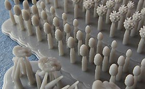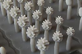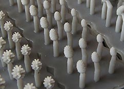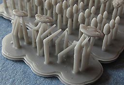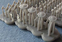 Der Druck der Zapfen ist gut und recht fein gerade die Zapfen mit den aufgestellten Schuppen ist recht beeindruckend. Die großen Zapfen sinden an zwei Ansatzstücen von denen sie abgetrennt werden müssen, die kleinen nur an einem Stück. Die Pilze hingegen haben mehrere Ansätzen von denen sie vorsichtig abgetrennt werden müssen.