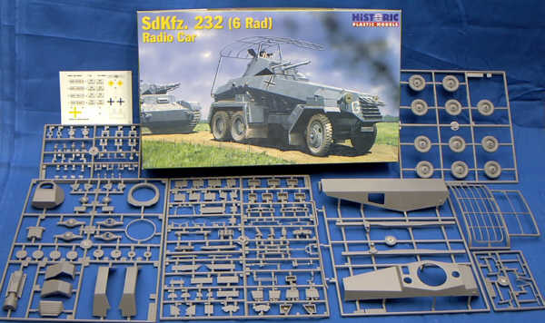 Nachdem uns HiPM ja 2001 mit dem Sd.Kfz.231 erfreute, kommt nun der logische Schluss, das Sd.Kfz.232. Dies ist nichts weiter als der Bausatz vom 231 mit erweiterten Spritzlingen für die große Rahmenantenne. Die Spritzgussqualität der über 150 Teile sieht am Spritzling gut aus ... die entgültige Beurteilung darüber folgt dann im Baubericht!