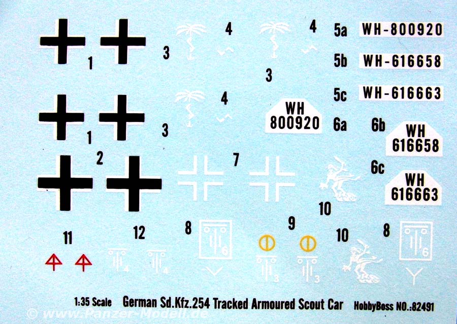 Der Decalbogen und der farbig gedruckte A4 Bogen als Bemalungsvorlage erlauben den Bau von 2 Versionen - die Farbangaben sind für Tamiya, Vallejo, Humbrol, Model Master und Mr.Color abgedruckt. Die genaue Version wird auf dem Vorlagenbogen nicht vermerkt, aber es müsste sich um folgende handeln: