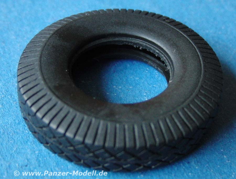 Wie schon beim EBR-10 gefallen mir die Reifen aus Vinyl sehr gut. Diese sind ganz ausgezeichnet detailliert, mit hervorragendem, feinem Profil. Allerdings gibt es hier keine Details wie etwa Herstelleraufdruck an den Reifenflanken.