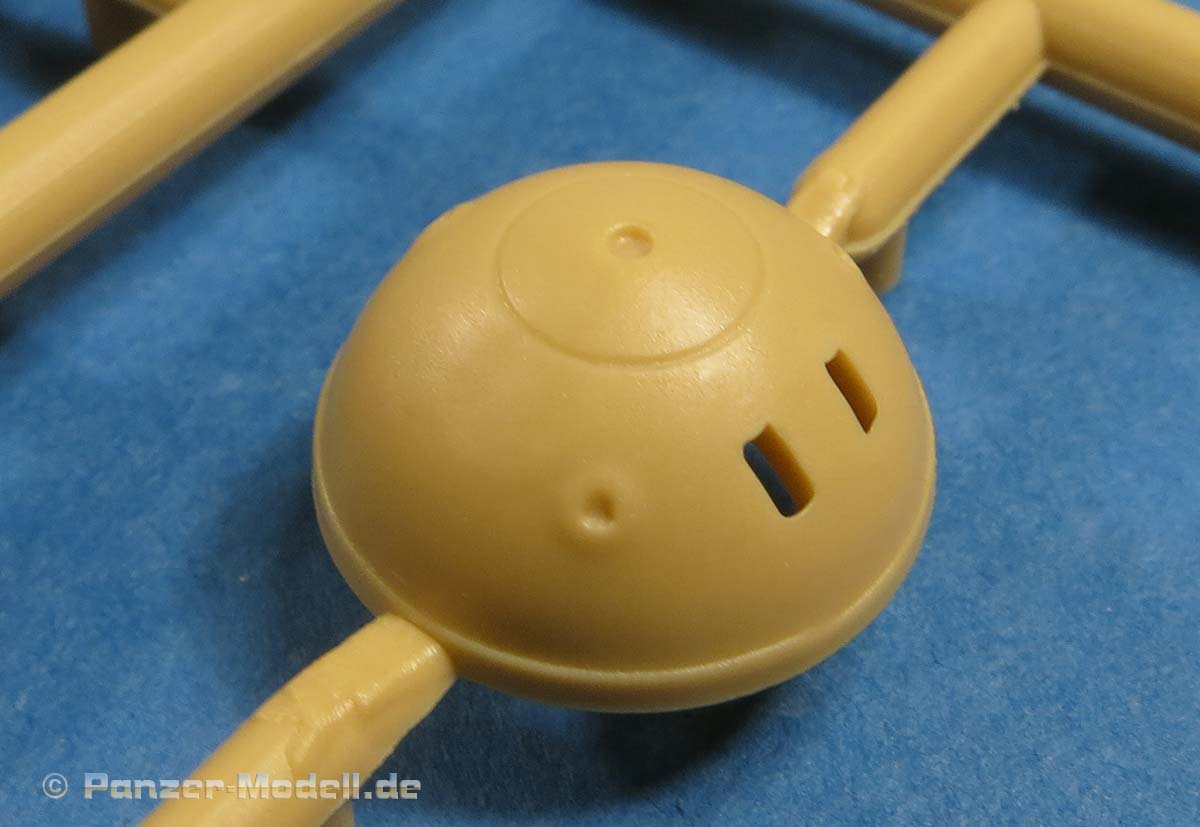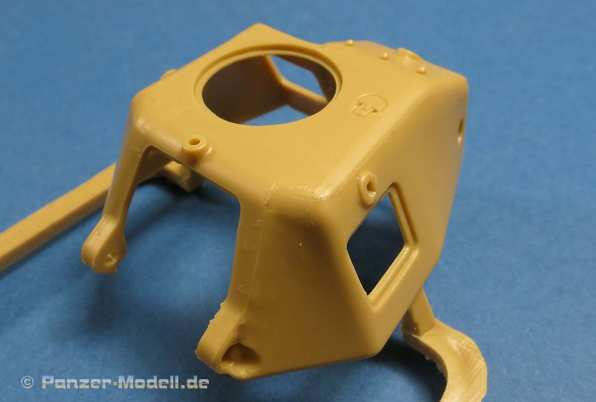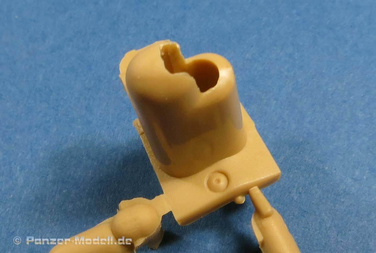 Die Kanone ist mit Innenteil mehrteilig dargestellt, aussen mit schöner Kanonenblende und dem neuen, langen Rohr, das sich aus mehreren Teilen zusammensetzt, aber zumindest nicht aus Halbteilen, sodass man hier keine Nähte verschleifen muss.