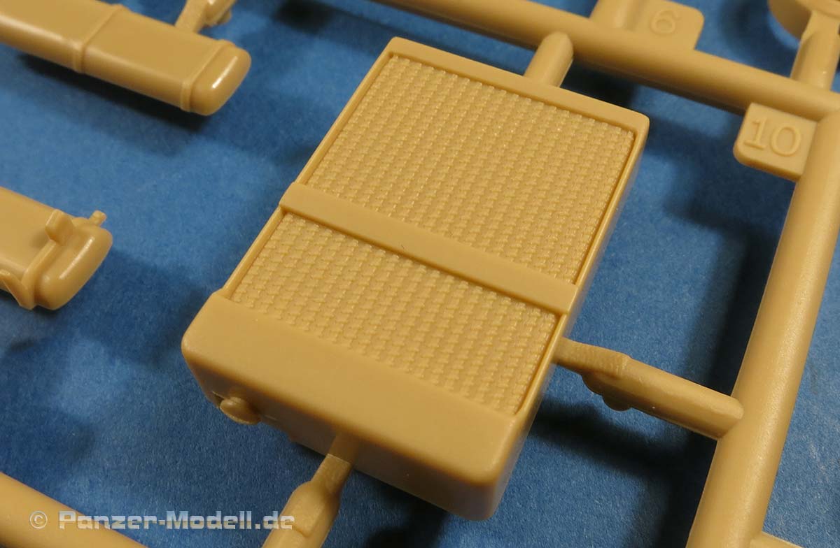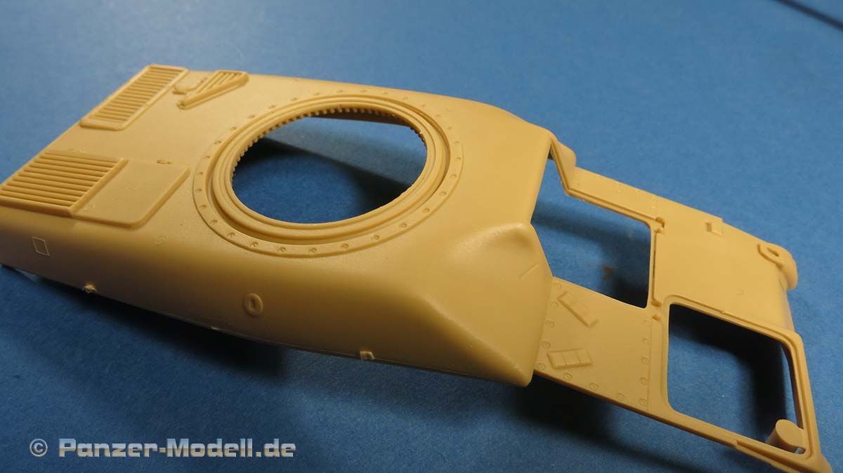 Die Oberwanne ist einteilig gespritzt und macht soweit einen guten Eindruck. Ausser dass die typische Gussstahlstruktur viel zu glatt dargestellt ist - das hätte man besser und gröber darstellen können.