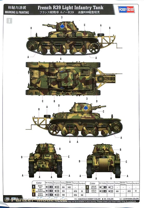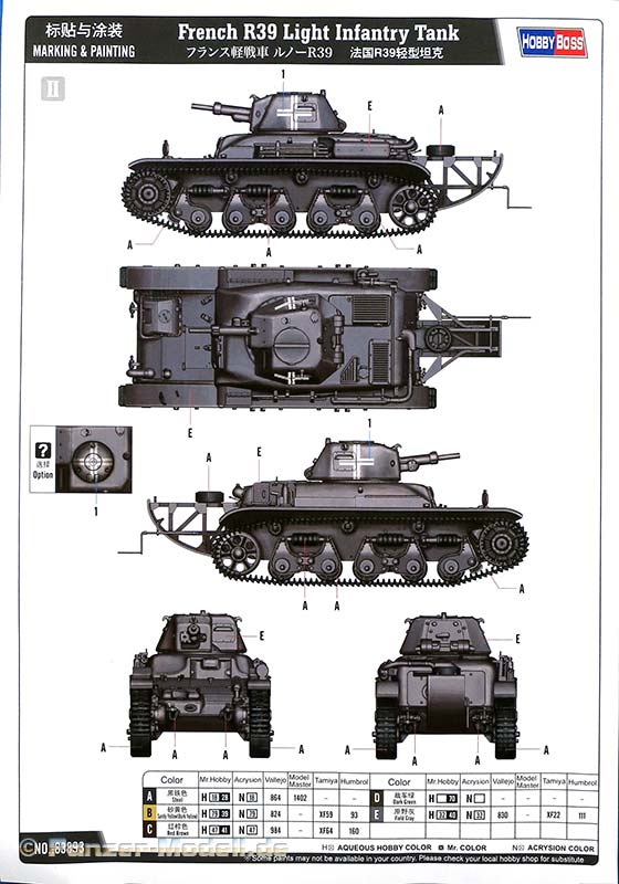 Auf Basis der R35 Bausätze hat Hobby Boss nun den R39 Panzer herausgebracht, welcher sich durch diverse Änderungen insbesondere der Kanone unterscheidet.