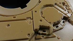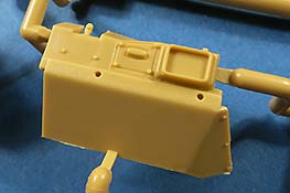 Die Waffenanlage macht einen guten Eindruck mit der Rohrhalterung bereits in großen Teilen fertig gebaut, dies erleichtert die Arbeit für die Modellbauer. Auch der Turm ist bereits in großen Teilen in einem Stück gespritzt und wird nur durch Rückseite und Deckplatten ergänzt. Die Detaillierung hier ist recht ansprechend, wennauch hier wieder die Einschränkung bezüglich der Gummimatten Panzerung, wie oben genannt. gilt.
