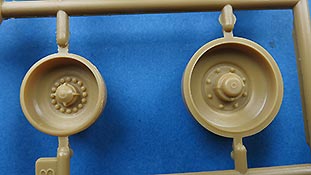 Die Laufrollen, wie auch Treib- und Leiträder setzen sich aus je zwei Radteilen und einem Polycap zusammen - durch das Polycap bleiben die Räder alle drehbar, was später die Bemalung der Gummierung vereinfacht.