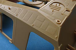 Die hinteren Zusatzpanzerungselemente, sowie die Elemente rund um das Aufbaudach und der Front sind ebenfalls vom Stil der SLAT Armor aus Spritzguss - wie oben schon geschrieben ist diese Art für den Bau von Vorteil, nur die Detaillierung ist natürlich etwas grob.