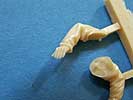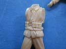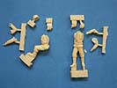 Die beiden Figuren bestehen aus jeweils 5 Teilen mit dem Körper, den beiden Armen, dem Kopf und einem Helm.
