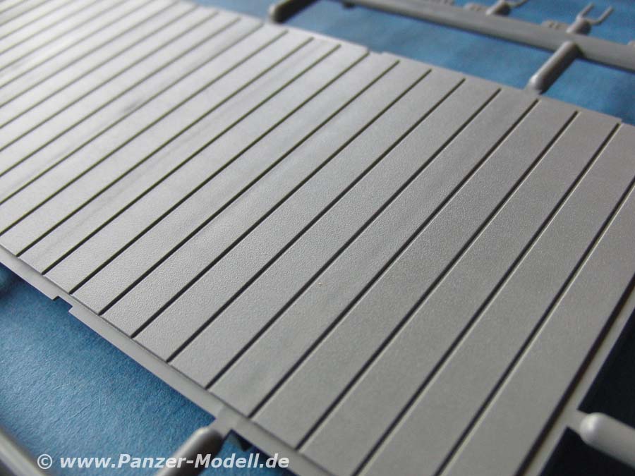 Schlussendlich ist eine sehr schöne Ladefläche mit querliegenden Bohlen enthalten. Für die Seitenwände liegen zwei verschiedene Versionen einmal mit und einmal ohne erhöhte Sicherungsbrettern. Die Bretterdarstellung ist gut gelungen, wennauch ohen eingeprägte Holzmaserung.