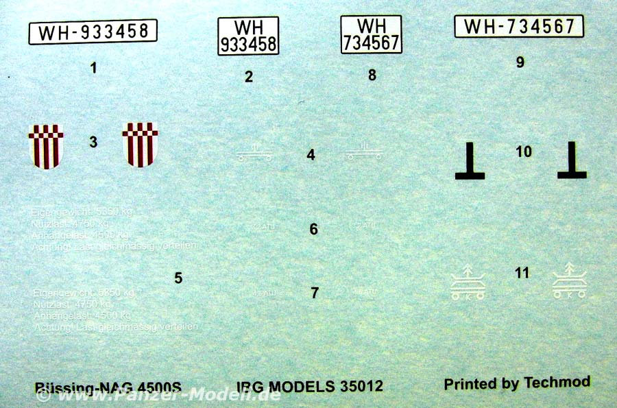 Es werden in der Bemalungsanleitung Farbangaben für Gunze, Model Master, Humbrol und Vallejo gemacht. An Varianten sind mit dem kleinen Decalbogen folgende machbar:
