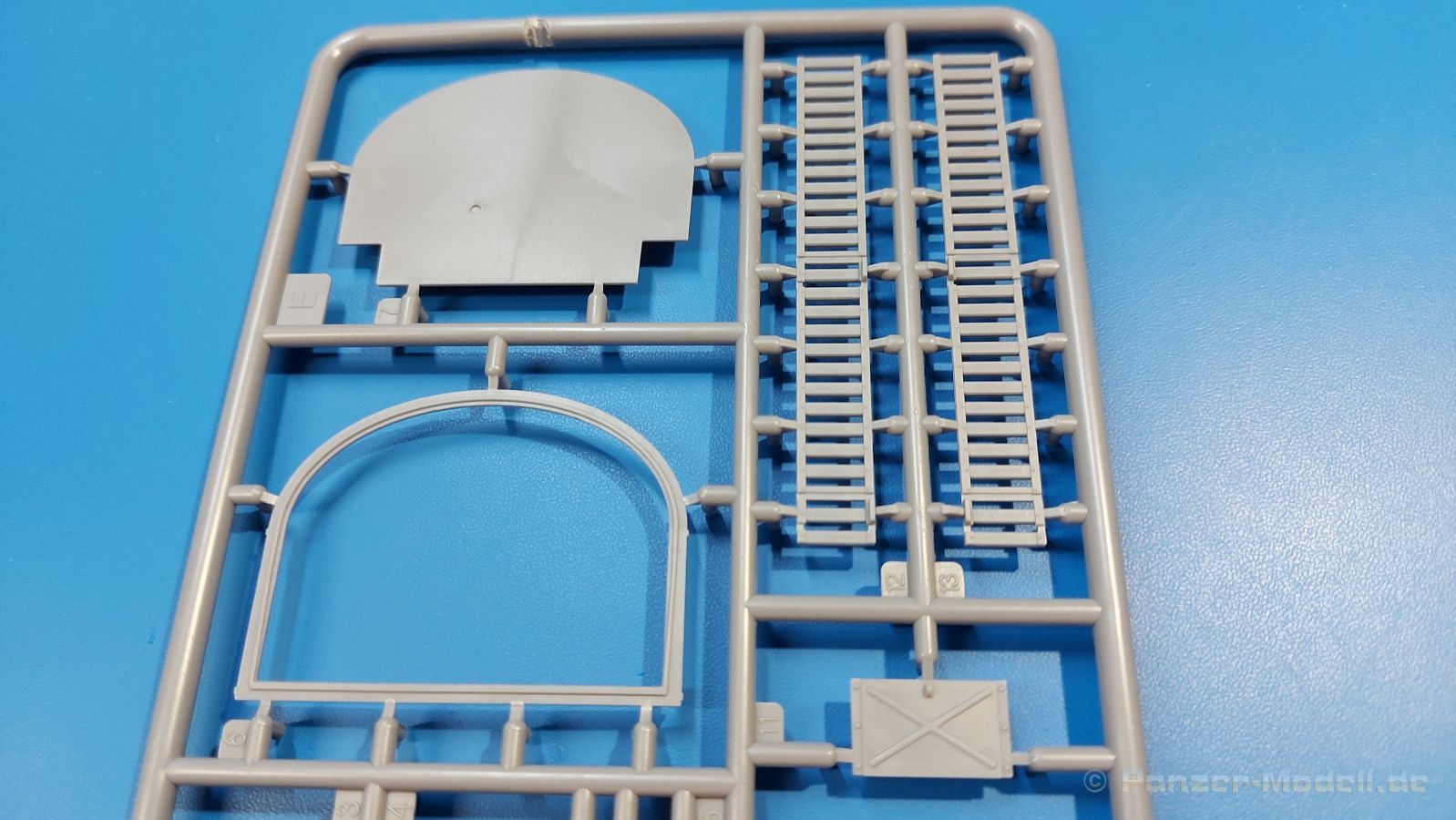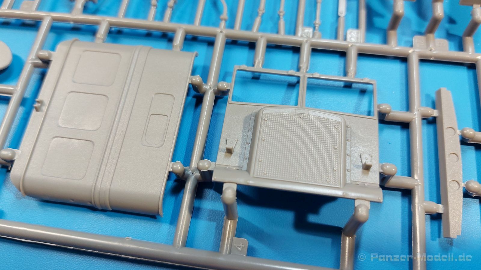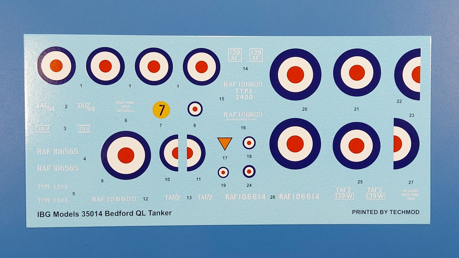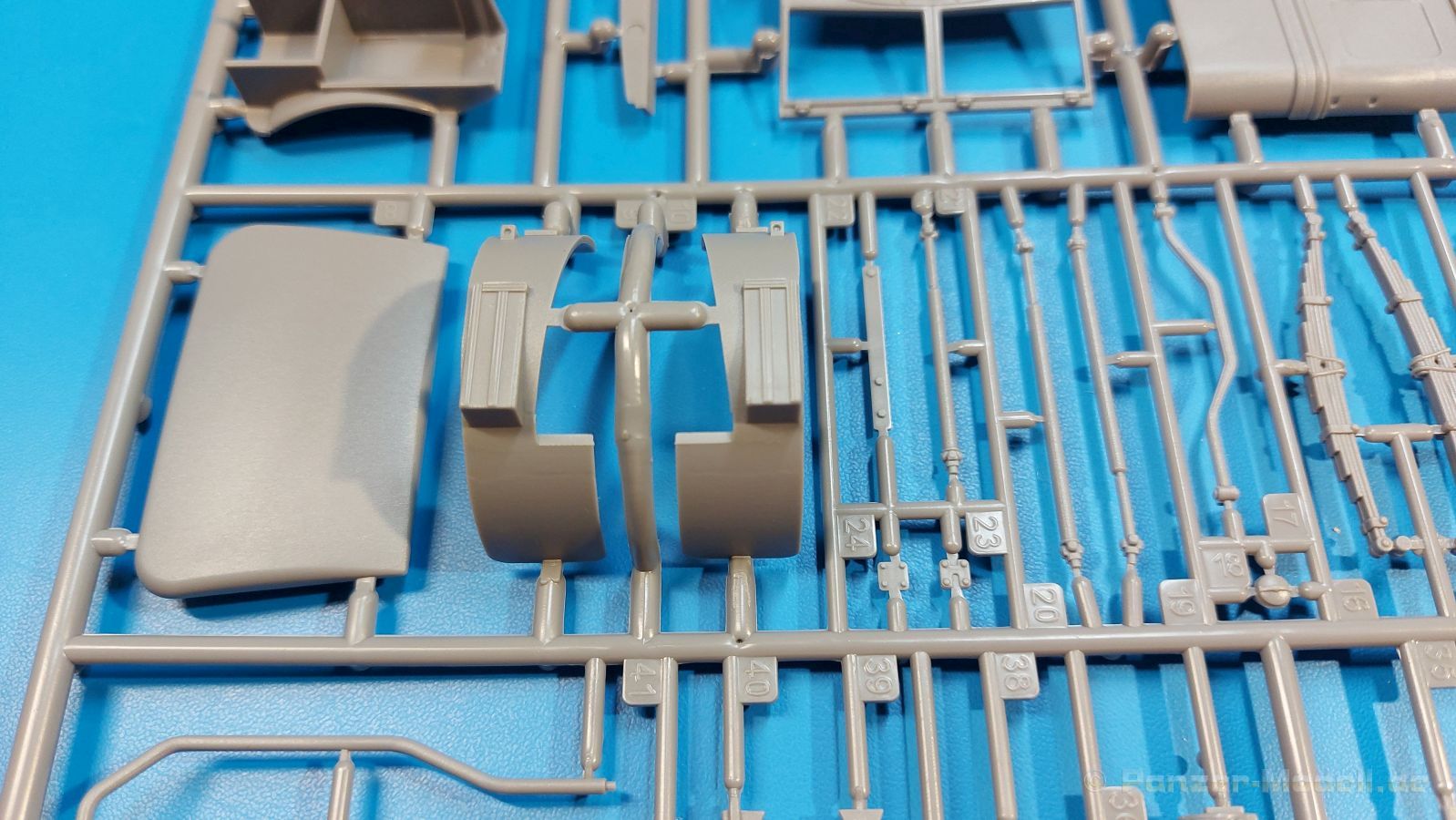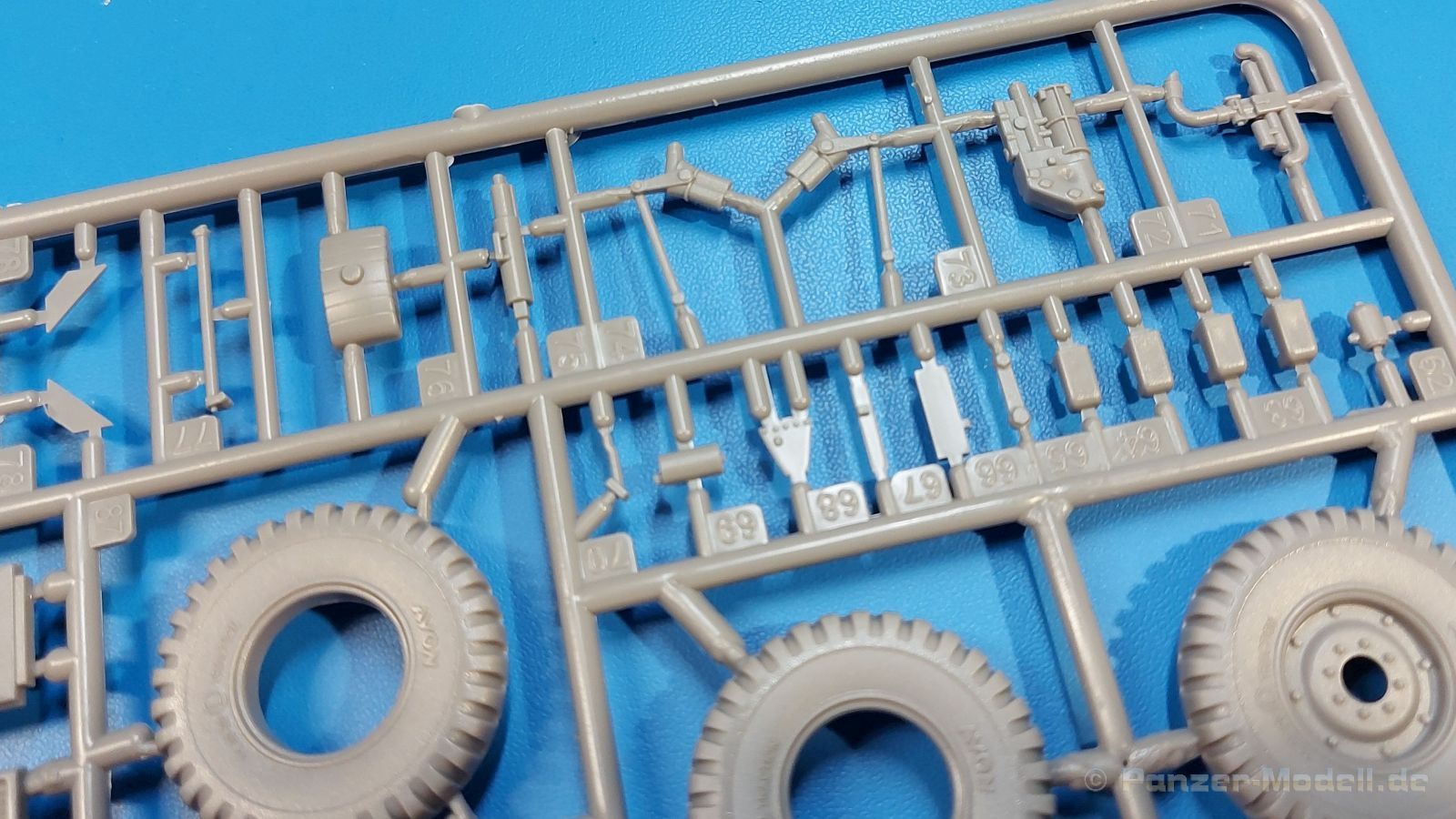 Das Original Der Bedford QL der gleichnamigen Firma Bedford gehörte zu einer Reihe von 3 to. Lkws, die zwischen 1941 und 1945 hergestellt und von den britischen Streitkräften im 2. Weltkrieg einsetzt wurden. Der QL Tanker war die Version eines Kraftstofftankfahrzeuges, welches hauptsächlich durch die Royal Air Force zum Betanken der Flugzeuge eingesetzt wurde. Der Tank fasste 950 Gallonen (ca. 4.319 Liter Umrechnung von britischen Gallonen in Liter). Der QL Tanker war natürlich auf Flugplätzen in England zu sehen, aber im Verlauf des Krieges auch näher an der Front wie z.B. in Belgien oder Italien. Der Bausatz: IBG Models führt seine Reihe des Bedford QL konsequent weiter und bringt als Nr. 5 einen QL Tankwagen auf den Markt. Im 405 x 258 x 60 mm großen Karton mit Stülpdeckel entdecken wir ein paar alte, bekannte und natürlich neue Spritzlinge. Insgesamt sind 9 graue Spritzlinge (Spritzlinge A und B sind bereits aus vorangegangenen Bedford QL Bausätzen von IBG bekannt.), 1 ebenfalls bekannter Klarsichtspritzling (Achtung: Ansicht in der Teileübersicht in der Bauanleitung entspricht nicht dem im Karton enthaltenen!), 1 PE-Platine, 1 Decalsheet und die Bauanleitung enthalten. Die Teile aus mittelgrauem Plastik sind größtenteils sauber ausgespritzt, ohne Grat und Versatz. Die Auswerfer sind meist auf den Spritzrahmen platziert. Leider finden sich an den Innenseiten der Blattfederpakete (Teile A13-A16), auf den Scheinwerfern (Teile B53, B54) und am Teil B72 Sinkstellen, die man außer bei den Scheinwerfern ggfs. ignorieren kann, weil sie am fertigen Modell nur schwer einzusehen sind. Die Klarsichtteile sind kristallklar ohne Kratzer oder Schlieren. Am Spritzling A finden wir die Hauptkomponenten des Fahrerhauses. Die Türen sind an den Seitenteilen fest angegossen. Innen sind die Fensterkurbeln bereits vorhanden, außen werden die Türgriffe noch angebracht. Aus den Klarsichtteilen werden nur die 2 Windschutzscheiben und die Türscheiben gebraucht. Bei den Türscheiben wurde auch das dreieckige Ausstellfenster bedacht. Man muss nur den Rahmen entsprechend in Fahrzeugfarbe bemalen. Das sehr gut getroffene Kühlergitter an der Frontseite ist auch fest eingegossen in die Front. Als Dach ist für den Tanker nur das geschlossene zu verwenden. Das ebenfalls vorhandene Dach mit der runden Öffnung wandert in die Ersatzteilkiste. Alle Pedale, Schalt- und Feststellbremshebel sind da und machen sich gut. Die Armaturentafel beim Original ist spartanisch eingerichtet, aber dennoch gut im Modell wiedergegeben. Der Feuerlöscher ist einfach gehalten, aber akzeptabel. Er verschwindet hinter dem Fahrersitz ohne weitere Aufmerksamkeit zu erregen. Bei den 3-teiligen Sitzen (Rückenlehne, Bodenplatte, Sitzpolster) gefällt mir die angeraute Oberfläche der Sitzpolster, die somit etwas Stoffstruktur wiedergeben. Der Fahrerhausboden hat die Motorabdeckung bereits integriert, so dass man den Motor nur zeigen könnte, wenn man das Fahrerhaus nicht festklebt. Die an den Ecken gerundeten, größeren Außenspiegel in der Form wie im Bausatz sieht man oft an restaurierten Fahrzeugen. Auf Fotos aus den 40 Jahren sind sie eher kleiner und viereckig. Auf den Kotflügeln des Fahrerhauses befinden sich Trittstufen mit feiner Antirutschriffelung. Zum ersten Mal ist eine PE-Platine im Bausatz, die auch das oft gesehene Gasdetektorblech samt Halterungen enthält. Auch ein großes Unterbodenblech, vermutlich um Motorwärme vom Tank fernzuhalten, ist dabei. Der Leiterrahmen besteht aus mehreren Längs- und Querträgern. Der 6-Zylinder Benzinmotor ist mit allen wichtigen Bauelementen (Motorblock, Zylinderkopf, Ölwanne, Anlasser, Generator, Vergaser, Zuluft-, Abgaskrümmer, Keilriemenscheiben mit Keilriemen, Lüfterpropeller) wiedergegeben. Kupplungsgehäuse und Schaltgetriebe schließen an den Motor an. Separate Kardanwellen werden zwischen Schalt- und Verteilergetriebe angebaut. Von dort zu Vorder- und Hinterachse. Die Gelenkköpfe der Kardanwellen kommen gut zur Geltung. Die Achsen sind mehrteilig ausgeführt, sollten sich aber problemlos gerade bauen lassen. Die Auslegung der Teile der Vorderachse lassen vermuten, dass ein Lenkeinschlag modellseitig nicht vorgesehen ist, aber es sind alle Teile des Lenkgestänges, Lenkgetriebe etc dabei. Die Federpakete der Blattfedern sind gut dargestellt, wären da nicht die Sinkstellen auf den Innenseiten. Die Federdämpfer der beiden Achsen sind sauber ausgearbeitet. Ein Auspuffrohr führt vom Abgaskrümmer zum 2-teiligen Schalldämpfer, der im linken Rahmenlängsträger verbaut wird. Das dort anzubringende Auspuffendrohr ist am Ende angeschrägt, aber leider nicht aufgebohrt. Für die linke Seite des Rahmens gibt es noch einen großen Staukasten unterhalb des Fahrzeugtanks, auf der rechten Seite den Druckluftbehälter für die Bremsen. Hinter dem Fahrerhaus wird ein 12-teiliges Gestell aufgebaut, dass sowohl den Kraftstofftank des Fahrzeugs als auch das Ersatzrad aufnimmt. Die Felgenlöcher sind des Ersatzrades durchbrochen (also ohne Schrauben), wie es sich gehört. Sowohl Ersatzrad als auch die vier anderen Räder tragen erhabene Hersteller- (AVON - Anmerkung: Bei den AVON Reifen scheint es sich gemäß anderer Quelle um Nachkriegsreifen zu handeln!) und Reifengrößenaufschriften (11.00-20). Die Radschrauben sind gut wiedergegeben. Als Fünfter im Bunde der IBG Bedford QL zeichnet sich der Tanker natürlich durch seinen Tankaufbau aus. Am Auffälligsten sind die große Unter- und Oberschale des Tanks. Zur Befestigung am Fahrzeugrahmen werden an der Unterschale vier Träger, jeder aus 4 Teilen bestehend, angebracht. Diese Träger nehmen auch beidseitig die Laufroste auf. Die hinteren Kotflügel werden mit dem Tank, nicht mit dem Rahmen verbunden. Zwei Gestelle aus PE nehmen insgesamt 4 Trichter (ebenfalls aus PE) auf. Die Stutzen der Trichter sind aus Plastik. Mein erster Gedanke war, dass ich diese beim Bau dann wohl aufbohren müsste, aber auf Originalfotos kann man se