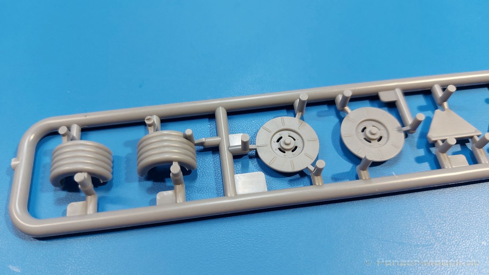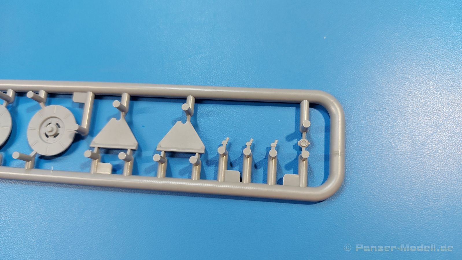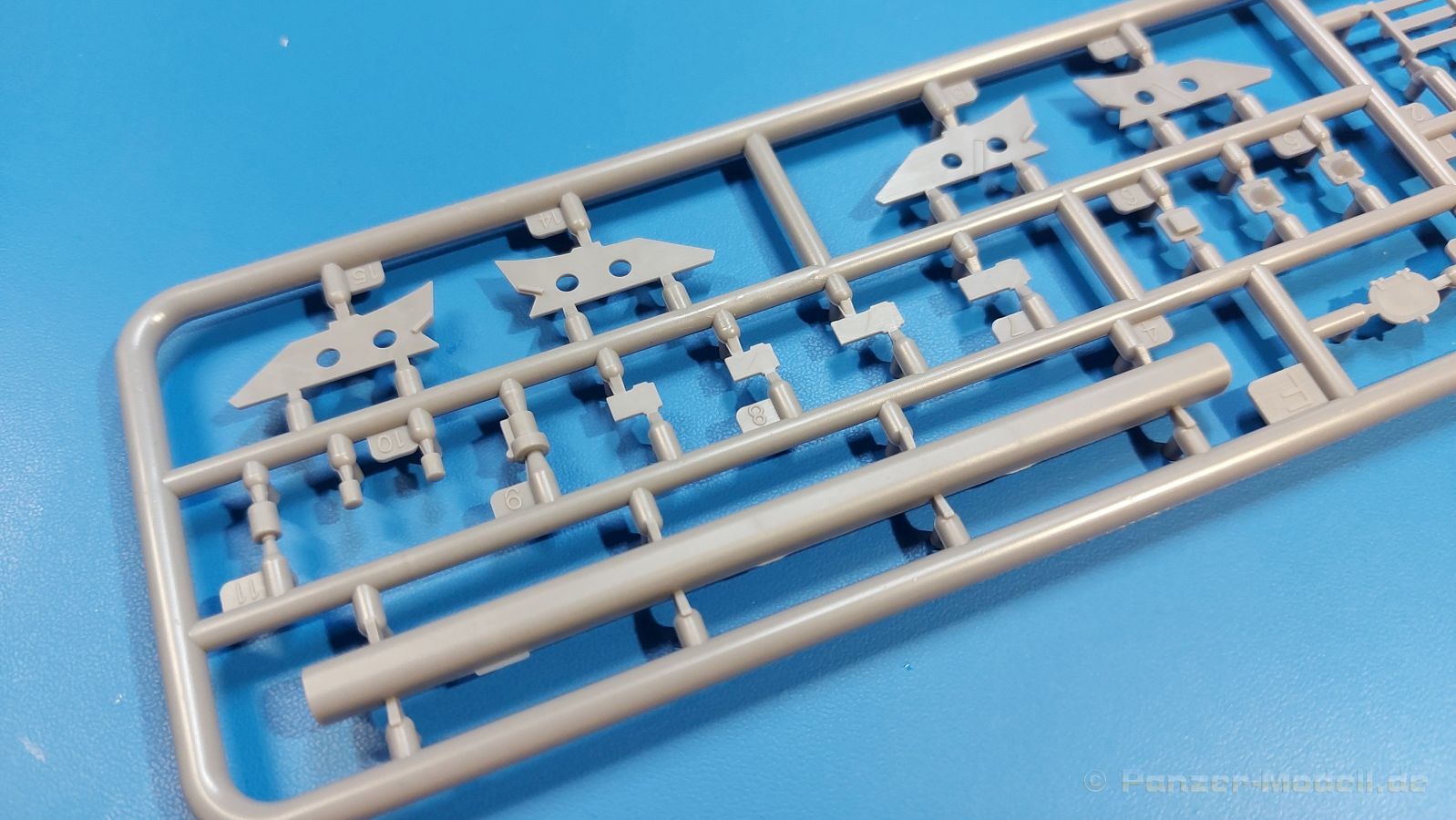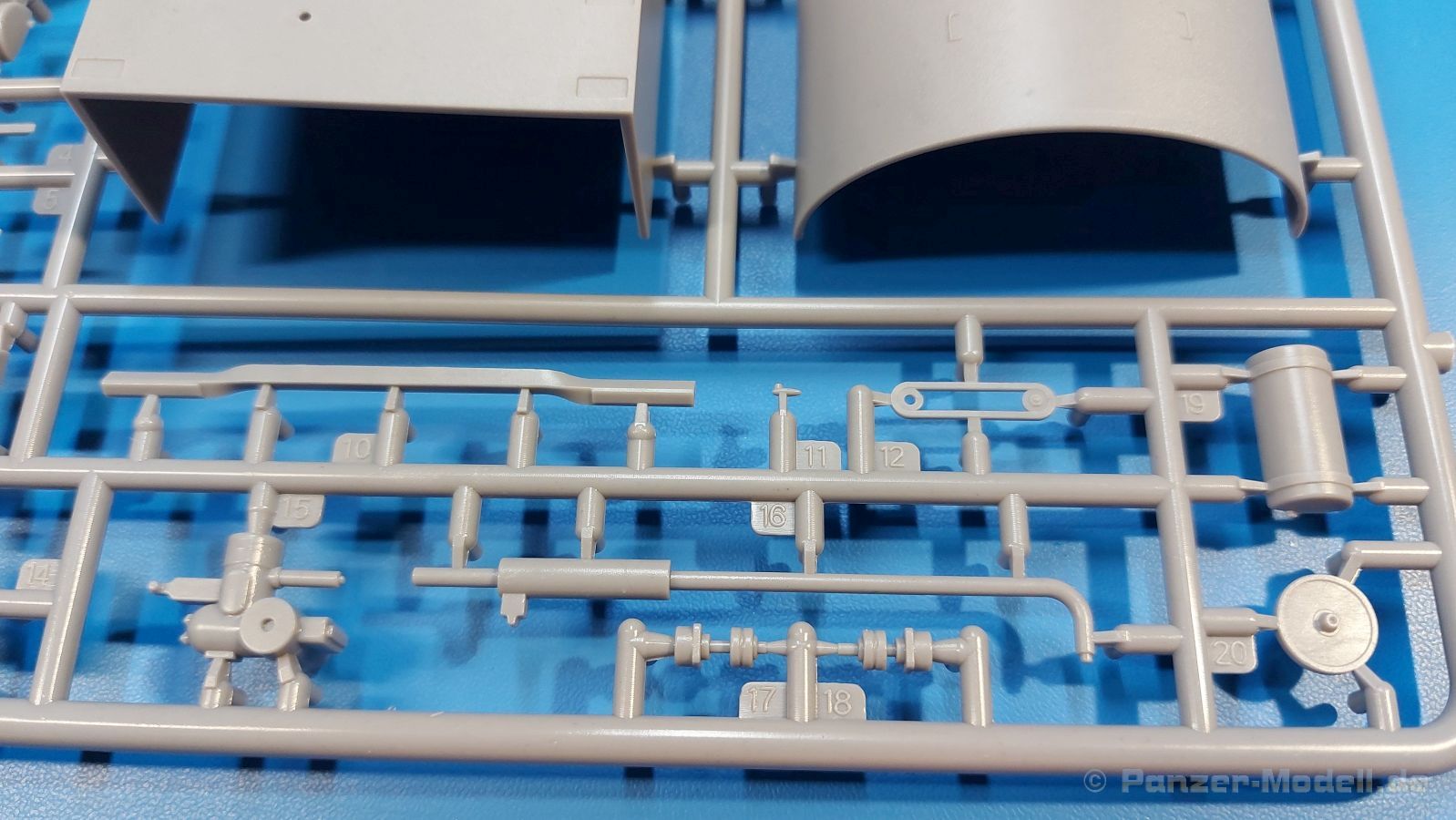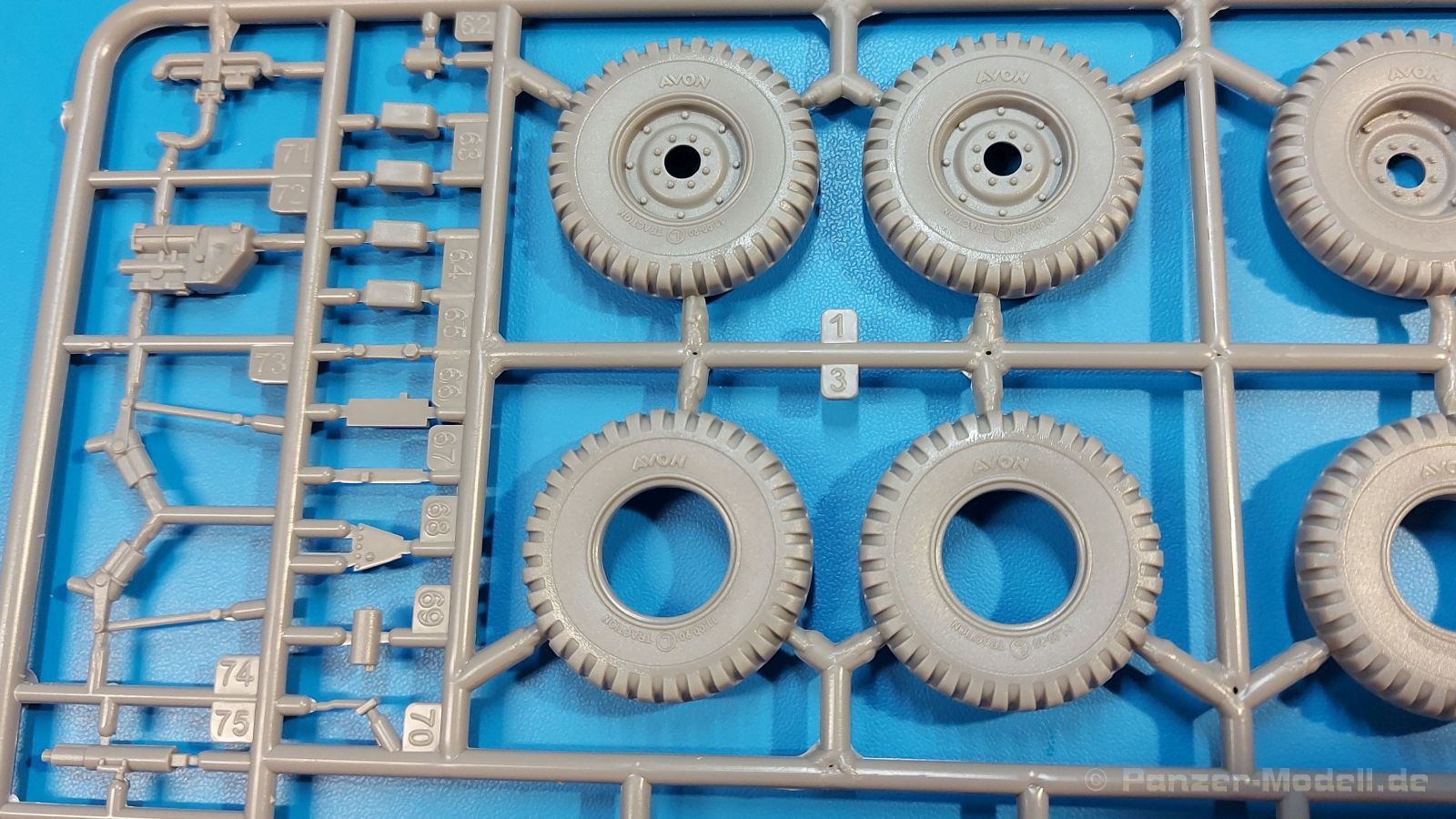 Das Original Der Bedford QL der gleichnamigen Firma Bedford gehörte zu einer Reihe von 3 to. Lkws, die zwischen 1941 und 1945 hergestellt und von den britischen Streitkräften im 2. Weltkrieg einsetzt wurden. Der QL Tanker war die Version eines Kraftstofftankfahrzeuges, welches hauptsächlich durch die Royal Air Force zum Betanken der Flugzeuge eingesetzt wurde. Der Tank fasste 950 Gallonen (ca. 4.319 Liter Umrechnung von britischen Gallonen in Liter). Der QL Tanker war natürlich auf Flugplätzen in England zu sehen, aber im Verlauf des Krieges auch näher an der Front wie z.B. in Belgien oder Italien. Der Bausatz: IBG Models führt seine Reihe des Bedford QL konsequent weiter und bringt als Nr. 5 einen QL Tankwagen auf den Markt. Im 405 x 258 x 60 mm großen Karton mit Stülpdeckel entdecken wir ein paar alte, bekannte und natürlich neue Spritzlinge. Insgesamt sind 9 graue Spritzlinge (Spritzlinge A und B sind bereits aus vorangegangenen Bedford QL Bausätzen von IBG bekannt.), 1 ebenfalls bekannter Klarsichtspritzling (Achtung: Ansicht in der Teileübersicht in der Bauanleitung entspricht nicht dem im Karton enthaltenen!), 1 PE-Platine, 1 Decalsheet und die Bauanleitung enthalten. Die Teile aus mittelgrauem Plastik sind größtenteils sauber ausgespritzt, ohne Grat und Versatz. Die Auswerfer sind meist auf den Spritzrahmen platziert. Leider finden sich an den Innenseiten der Blattfederpakete (Teile A13-A16), auf den Scheinwerfern (Teile B53, B54) und am Teil B72 Sinkstellen, die man außer bei den Scheinwerfern ggfs. ignorieren kann, weil sie am fertigen Modell nur schwer einzusehen sind. Die Klarsichtteile sind kristallklar ohne Kratzer oder Schlieren. Am Spritzling A finden wir die Hauptkomponenten des Fahrerhauses. Die Türen sind an den Seitenteilen fest angegossen. Innen sind die Fensterkurbeln bereits vorhanden, außen werden die Türgriffe noch angebracht. Aus den Klarsichtteilen werden nur die 2 Windschutzscheiben und die Türscheiben gebraucht. Bei den Türscheiben wurde auch das dreieckige Ausstellfenster bedacht. Man muss nur den Rahmen entsprechend in Fahrzeugfarbe bemalen. Das sehr gut getroffene Kühlergitter an der Frontseite ist auch fest eingegossen in die Front. Als Dach ist für den Tanker nur das geschlossene zu verwenden. Das ebenfalls vorhandene Dach mit der runden Öffnung wandert in die Ersatzteilkiste. Alle Pedale, Schalt- und Feststellbremshebel sind da und machen sich gut. Die Armaturentafel beim Original ist spartanisch eingerichtet, aber dennoch gut im Modell wiedergegeben. Der Feuerlöscher ist einfach gehalten, aber akzeptabel. Er verschwindet hinter dem Fahrersitz ohne weitere Aufmerksamkeit zu erregen. Bei den 3-teiligen Sitzen (Rückenlehne, Bodenplatte, Sitzpolster) gefällt mir die angeraute Oberfläche der Sitzpolster, die somit etwas Stoffstruktur wiedergeben. Der Fahrerhausboden hat die Motorabdeckung bereits integriert, so dass man den Motor nur zeigen könnte, wenn man das Fahrerhaus nicht festklebt. Die an den Ecken gerundeten, größeren Außenspiegel in der Form wie im Bausatz sieht man oft an restaurierten Fahrzeugen. Auf Fotos aus den 40 Jahren sind sie eher kleiner und viereckig. Auf den Kotflügeln des Fahrerhauses befinden sich Trittstufen mit feiner Antirutschriffelung. Zum ersten Mal ist eine PE-Platine im Bausatz, die auch das oft gesehene Gasdetektorblech samt Halterungen enthält. Auch ein großes Unterbodenblech, vermutlich um Motorwärme vom Tank fernzuhalten, ist dabei. Der Leiterrahmen besteht aus mehreren Längs- und Querträgern. Der 6-Zylinder Benzinmotor ist mit allen wichtigen Bauelementen (Motorblock, Zylinderkopf, Ölwanne, Anlasser, Generator, Vergaser, Zuluft-, Abgaskrümmer, Keilriemenscheiben mit Keilriemen, Lüfterpropeller) wiedergegeben. Kupplungsgehäuse und Schaltgetriebe schließen an den Motor an. Separate Kardanwellen werden zwischen Schalt- und Verteilergetriebe angebaut. Von dort zu Vorder- und Hinterachse. Die Gelenkköpfe der Kardanwellen kommen gut zur Geltung. Die Achsen sind mehrteilig ausgeführt, sollten sich aber problemlos gerade bauen lassen. Die Auslegung der Teile der Vorderachse lassen vermuten, dass ein Lenkeinschlag modellseitig nicht vorgesehen ist, aber es sind alle Teile des Lenkgestänges, Lenkgetriebe etc dabei. Die Federpakete der Blattfedern sind gut dargestellt, wären da nicht die Sinkstellen auf den Innenseiten. Die Federdämpfer der beiden Achsen sind sauber ausgearbeitet. Ein Auspuffrohr führt vom Abgaskrümmer zum 2-teiligen Schalldämpfer, der im linken Rahmenlängsträger verbaut wird. Das dort anzubringende Auspuffendrohr ist am Ende angeschrägt, aber leider nicht aufgebohrt. Für die linke Seite des Rahmens gibt es noch einen großen Staukasten unterhalb des Fahrzeugtanks, auf der rechten Seite den Druckluftbehälter für die Bremsen. Hinter dem Fahrerhaus wird ein 12-teiliges Gestell aufgebaut, dass sowohl den Kraftstofftank des Fahrzeugs als auch das Ersatzrad aufnimmt. Die Felgenlöcher sind des Ersatzrades durchbrochen (also ohne Schrauben), wie es sich gehört. Sowohl Ersatzrad als auch die vier anderen Räder tragen erhabene Hersteller- (AVON - Anmerkung: Bei den AVON Reifen scheint es sich gemäß anderer Quelle um Nachkriegsreifen zu handeln!) und Reifengrößenaufschriften (11.00-20). Die Radschrauben sind gut wiedergegeben. Als Fünfter im Bunde der IBG Bedford QL zeichnet sich der Tanker natürlich durch seinen Tankaufbau aus. Am Auffälligsten sind die große Unter- und Oberschale des Tanks. Zur Befestigung am Fahrzeugrahmen werden an der Unterschale vier Träger, jeder aus 4 Teilen bestehend, angebracht. Diese Träger nehmen auch beidseitig die Laufroste auf. Die hinteren Kotflügel werden mit dem Tank, nicht mit dem Rahmen verbunden. Zwei Gestelle aus PE nehmen insgesamt 4 Trichter (ebenfalls aus PE) auf. Die Stutzen der Trichter sind aus Plastik. Mein erster Gedanke war, dass ich diese beim Bau dann wohl aufbohren müsste, aber auf Originalfotos kann man se