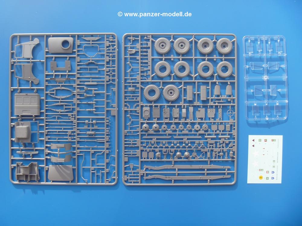 Den Klarsichtspritzling und A und B kennt man schon aus dem QLD Bausatz, nur das einige Teile davon wie z.B. Rahmenlängsträger und Tank für den QLT nicht gebraucht werden. Die überzähligen Scheiben deuten darauf hin, dass man (hoffentlich bald) auch die Funkausführung QLR erwarten kann.