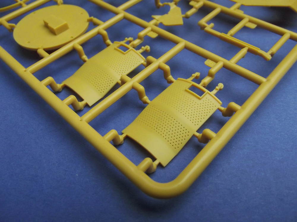 Für mich ist das der erste Bausatz von IBG Models, den ich auspacken darf. Und ich muss sagen ich bin angenehm überrascht. Denn was man da für rund 40,- € kaufen kann, ist schon sehr beachtlich. Das Modell des polnischen Schützenpanzers verfügt über eine Inneneinrichtung für Turm und Kampfraum. Die ist zwar nicht ganz vollständig, aber für einen Blick durch geöffnete Türen oder Luken ist sie mehr als ausreichend. Noch etwas Zubehör, persönliche Ausrüstung der Besatzung und schon passt es. Auch das Getriebe, samt Motor und Kühlsystem sind recht ordentlich dargestellt. Im Außenbereich finden sich schöne Details, wie zum Beispiel die Anti-Rutschbeläge. Mit leicht rauher Oberfläche hinterlassen sie schon einen sehr guten Eindruck. Der gute Eindruck wird durch leichte Unsauberkeiten im Bereich der Kühlluftöffnungen getrübt. Hier finden sich ein paar kleine Fischhäute die entfernt werden müssen. Zwar werden die Öffnungen mit Photoätzteilen versehen, nach der Lackierung dürften die kleinen Unregelmäßigkeiten aber sichtbar bleiben. Hier ist also etwas Nacharbeit angesagt. Diesem Bausatz liegen keine Reifen aus Vinyl sondern aus Polystyrol bei. Das ist schon mal positiv zu bemerken. Bei diesen Vinyl-Reifen kommt es leider häufig vor dass die Farben nicht richtig haften und / oder nicht richtig aushärten / trocknen. Zum Teil werden sie, nachdem sich der Weichmacher verflüchtigt hat, auch spröde und rissig. Daher finde ich die Entscheidung von IBG schon mal sehr gut. Auch eine Beschriftung der Reifenflanken ist vorhanden. Das Rad wird aus zwei Teilen für die Reifenflanken und einem Teil für die Lauffläche zusammengesetzt. Wenn sich die Einzelteile jetzt noch beim Bau perfekt und spaltfrei zusammenfügen lassen, kann man mehr als zufrieden sein. Die Bauanleitung führt in 55 Schritten zum fertigen Modell. Gezeigt werden die Baustufen in CAD Zeichnungen. Das wirkt zunächst auf mich etwas ungewöhnlich, aber nach kurzer Zeit der Eingewöhnung gefällt mir diese Art der Darstellung ebenfalls sehr gut. Die Baustufen sind recht übersichtlich und beinhalten meist nur eine geringe Anzahl an Bauteilen. Aber ab Stufe 23 beginnt man mit dem Fahrgestell / Fahrzeugrahmen. Und spätestens da wird es doch etwas haarig. Die Zeichnungen werden in den folgenden Baustufen recht klein und es kommen zum Teil sehr viele Bauteile zum Einsatz. Da muss man schon sehr genau hinsehen und wohl auch recht häufig trocken anpassen um die richtige Position für das entsprechende Bauteil zu ermitteln. Der Bausatz scheint nicht dafür ausgelegt zu sein die Räder mit einem Lenkeinschlag zu montieren. Aber mit etwas Arbeitsaufwand scheint es durchaus machbar zu sein. Die Bemalungsanleitung bietet, jeweils in Fünf-Seiten-Ansichten, zwei einfarbig grün lackierte Fahrzeuge, wie sie im Tschad 2009 bei den UN und EUFOR eingesetzt waren. Eine weitere Variante im Nato-Fleckentarnanstrich stellt ein Fahrzeug der 11. Lubuska Armored Cavalry Division dar. Die entsprechenden Markierungen für diese drei polnischen Fahrzeuge sind auf dem Decal-Sheet vorhanden. Die Farbangaben der Anleitung beziehen sich auf die Sortimente von Vallejo Model Air, Hataka, Life Color und AK-Interactive. Leider finden sich in der gesamten Anleitung weder Hinweise für die Lackierung der Inneneinrichtung noch für Motor und Getriebe. Hier wird man wohl oder übel nach Refrenzmaterial Ausschau halten müssen. Insgesamt würde ich dieses Modell als durchaus empfehlenswert einstufen. Das Preis-Leistungsverhältnis stimmt und die gelieferte Qualität ist ebenfalls in Ordnung. Klare Kaufempfehlung!