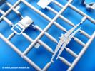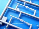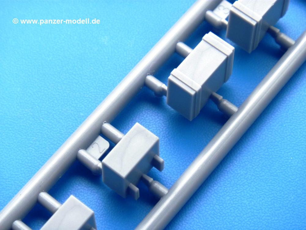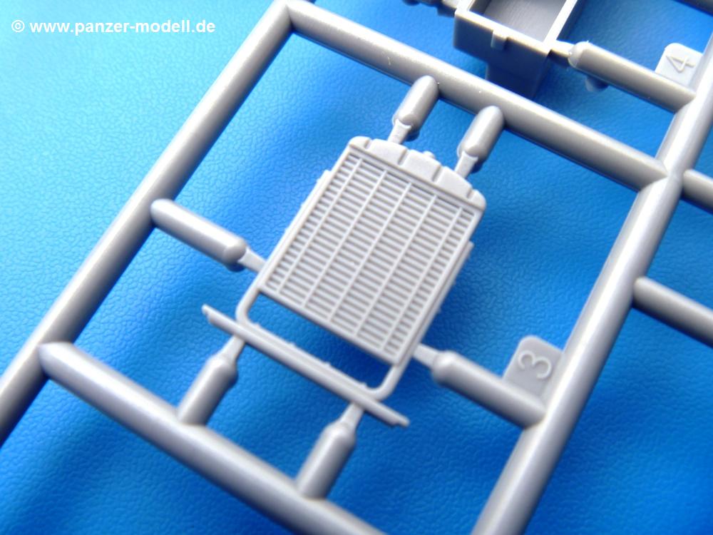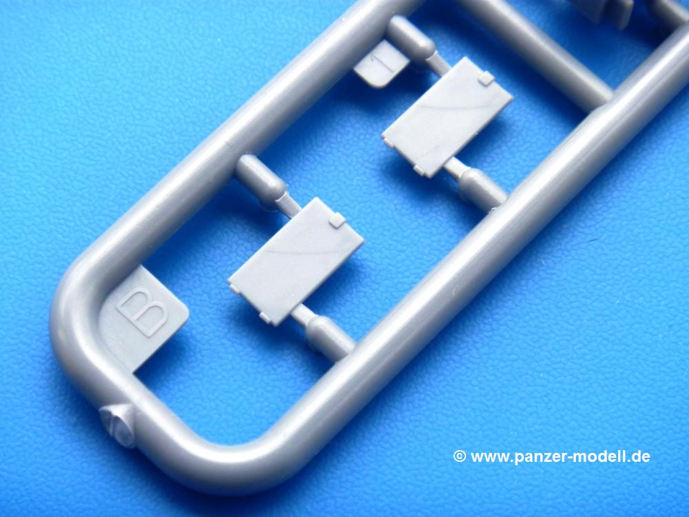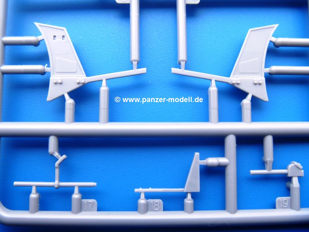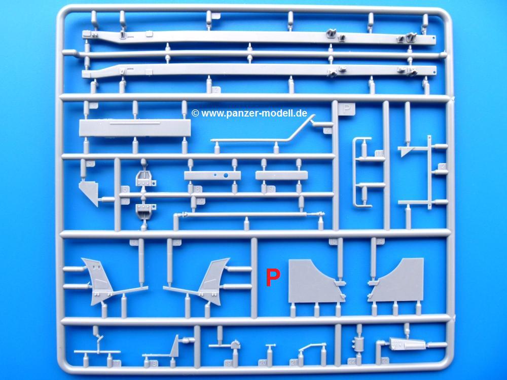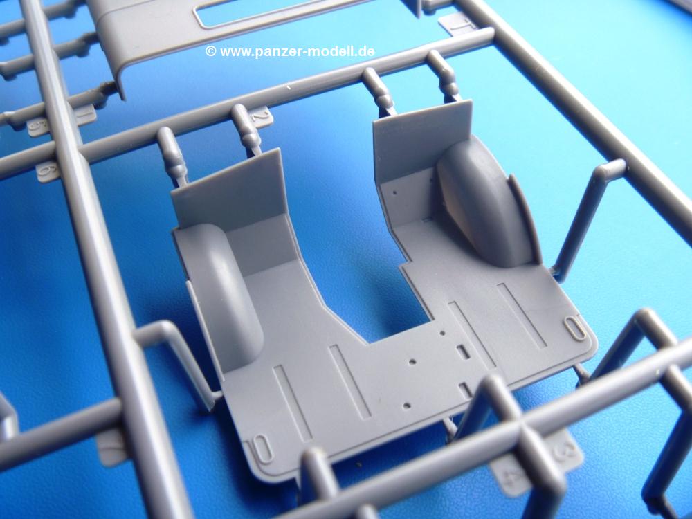Die Teile aus mittelgrauem Plastik sind sauber ausgespritzt, ohne Grat und Versatz. Die Auswerfer sind meist auf den Spritzrahmen platziert. Einige wenige sind auf Teilen zu finden, aber so platziert, dass sie auch ohne Verspachteln nach dem Zusammenbau nicht mehr stören würden.Fahrgestell: Wie heutzutage bei Lkw Modellen meist üblich besteht der Rahmen aus separaten Längs- und Querträgern. Der Aufbau der Teile hinterlässt den Eindruck, dass auch ein Anfänger einen verzugsfreien Rahmen hinbekommt. Die Blattfedern sind schön strukturiert. Der Allradantrieb mit geteilten Achsen, einzelnen Kardanwellen und Getriebe ist toll detailliert. Sämtliche Lenkgestänge der Vorderachse sind dabei. Der Minuspunkt ist, dass man die Räder nur in Geradeausstellung montieren kann. Jedes Rad besteht aus 2 Hälften. Sehr schön der hervorgehobene Herstelleraufdruck, die Rad-/Felgengröße (Goodyear 9.00-15), das Profil und die Verschraubungen. Am Rahmen finde Tanks mit langen Einfüllstutzen Platz. Auch die Trittbleche für's Fahrerhaus werden am Rahmen befestigt. Hier muss man darauf achten, dass das rechte Blech zwischen Cab 12 und 13 abweicht, während das linke bei beiden gleich ist. Zwischen Fahrerhaus und Ladefläche sitzt ein großer Staukasten mit Halterung für das Ersatzrad quer auf dem Rahmen. Die Staukastenklappen lassen sich offen oder geschlossen bauen.Motor: Der Motor weist viele Einzelteile und somit Details auf. Lichtmaschine, Zündspule, Luftfilter, Keilriemen, Lüfterrad usw. Wenn man den Motor zeigen möchte, sollte man die Motorhaube offen lassen, was zum Glück möglich ist. Der Auspuff ist mehrteilig ausgelegt, welches hoffentlich die Anbringung erleichtert.Fahrerhaus: Der Bausatz enthält Bauteile für 2x 2 Fahrerhäuser. Man hat die Wahl zwischen Cab 12 und Cab 13. Und jede dieser Versionen kann wahlweise mit geschlossenem Dach oder mit Dach mit einer Dachluke gebaut werden. Alle Sitze bestehen aus je 2 Bodenschienen, Sitzpolster und Rückenlehnen. Die Sitzpolster sind mir etwas zu glatt. Ein wenig Struktur wäre schön gewesen. Der Fahrer muss kein Bedienelement vermissen - Gas-, Brems-, Kupplungspedal, Schalt-, Allrad-, Handbremshebel, Lenkstange, Lenkrad, Armaturentafel - alles da, aber man vermisst etwas die Decals für die Armaturen. Feuerlöscher und die Karabiner der Besatzung finden auch ihren Platz im Fahrerhaus. Die Motorhaube(n) liegen als separate Teile bei. Man kann also einen Blick auf den Motor ermöglichen, nur muss man sich für die Scharniere selbst etwas einfallen lassen. Für die Kühlergrills gibt es schöne PE-Teile. Beim Cab 13 Grill sind Chevrolet Logo mit Schriftzug gut gestaltet. Für die Frontscheiben gibt es kratzer- und schlierenfreie Klarsichtteile. An Scheibenwischer in Form von PE-Teilen wurde auch gedacht.Ladefläche: Hier hat die Wahl zwischen 2, bzw. 3 Gestaltungsmöglichkeiten - mit Plane oder nur mit Spriegel. Lässt man die Spriegel weg und verspachtelt die Löcher für die Verbindungszapfen, hat man die 3. Möglichkeit. Die Bodenplatte mit den Längsbrettern ist für alle gleich. Rahmenaufsatzbalken, 4 Staukästen, teils mit separaten Klappen, und die hinteren Schmutzfänger gestalten die Unterseite.Entscheidet man sich für die Spriegel Version, bringt man Seiten-, Frontteile und die Heckklappe an. Letztere kann man auch heruntergeklappt anbauen. Dann folgen noch 2 Doppelsitzpolster auf den Radkästen. Die Spriegel besten aus 3 U-förmigen, sehr feinen Stangen. Vorsicht beim Abtrennen vom Spritzling! Dazu kommen noch 4 ebenso feine Stabilisierungsstangen.Bei der Planenversion bringt man nur die Sitzpolster auf den Radkästen an, dann folgt schon die Plane aus einem Stück, bei der Seiten- und Frontteile integriert sind. Die Plane ist trotz dünnem Material stabil. Innen sind die Spriegel angedeutet, aussen ist ein leichter, aber glaubhafter Faltenwurf vorhanden. Auch an die Zurrseile wurde gedacht. Die Heckklappe kann offen oder geschlossen gebaut werden.Gemäß Anleitung kann man mit den Decals 3 Fahrzeuge darstellen: