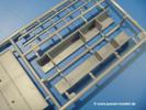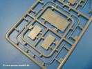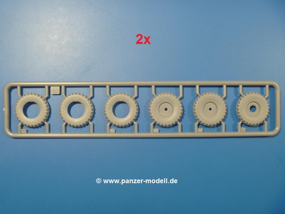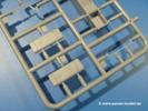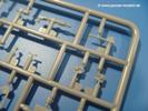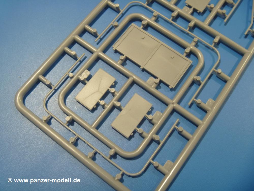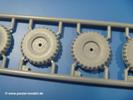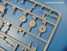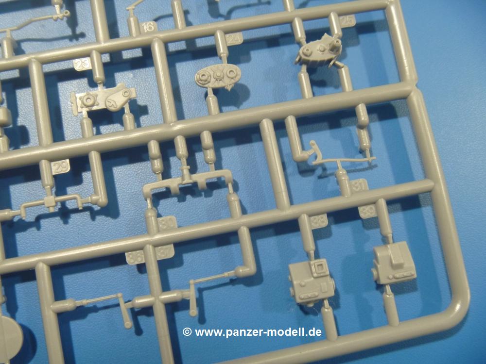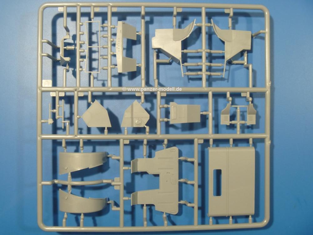 Die Teile aus mittelgrauem Plastik sind sauber ausgespritzt, ohne Grat und Versatz. Die Auswerfer sind meist auf den Spritzrahmen platziert. Einige wenige sind auf Teilen zu finden, aber so platziert, dass sie auch ohne Verspachteln nach dem Zusammenbau nicht mehr stören würden.Fahrgestell: Wie heutzutage bei Lkw Modellen meist üblich besteht der Rahmen aus separaten Längs- und Querträgern. Der Aufbau der Teile hinterlässt den Eindruck, dass auch ein Anfänger einen verzugsfreien Rahmen hinbekommt. Die Blattfedern sind schön strukturiert. Der Allradantrieb mit geteilten Achsen, einzelnen Kardanwellen und Getriebe ist toll detailliert. Sämtliche Lenkgestänge der Vorderachse sind dabei. Der Minuspunkt ist, dass man die Räder nur in Geradeausstellung montieren kann. Jedes Rad besteht aus 2 Hälften. Sehr schön der hervorgehobene Herstelleraufdruck, die Rad-/Felgengröße (Goodyear 10.50-16), das Profil und die Verschraubungen. Am Rahmen finden Tanks mit langen Einfüllstutzen Platz. Auch die Trittbleche für's Fahrerhaus werden am Rahmen befestigt.Motor: Der Motor weist viele Einzelteile und somit Details auf. Lichtmaschine, Zündspule, Luftfilter, Keilriemen, Lüfterrad usw. Wenn man den Motor zeigen möchte, sollte man die Motorhaube offen lassen, was zum Glück möglich ist. Der Auspuff ist mehrteilig ausgelegt, welches hoffentlich die Anbringung erleichtert.Fahrerhaus: Das Fahrerhaus (Cab 12) kann wahlweise mit geschlossenem Dach oder mit Dach mit einer Dachluke gebaut werden. Alle Sitze bestehen aus je 2 Bodenschienen, Sitzpolster und Rückenlehnen. Die Sitzpolster könnt ein wenig mehr Struktur gebrauchen. Der Fahrer muss kein Bedienelement vermissen - Gas-, Brems-, Kupplungspedal, Schalt-, Allrad-, Handbremshebel, Lenkstange, Lenkrad, Armaturentafel - alles da, aber man vermisst auch hier Decals für die Armaturen. Feuerlöscher und die Karabiner der Besatzung finden auch ihren Platz im Fahrerhaus. Die Motorhaube liegt als separates Teil bei. Man kann also einen Blick auf den Motor ermöglichen, nur muss man sich für die Scharniere selbst etwas einfallen lassen. Für den Kühlergrill gibt es schöne PE-Teile. Für die Frontscheiben gibt es kratzer- und schlierenfreie Klarsichtteile. An Scheibenwischer in Form von PE-Teilen wurde auch gedacht.Ladefläche: Hier hat die Wahl zwischen 2, bzw. 3 Gestaltungsmöglichkeiten - mit Plane oder nur mit Spriegel. Lässt man die Spriegel weg und verspachtelt die Löcher für die Verbindungszapfen, hat man die 3. Möglichkeit. Die Blechbodenplatte ist für alle gleich. Radkasten und 3 Staukästen pro Seite mit separaten Klappen bilden gleichzeitig Sitzbänke auf der Ladefläche. An der Unterseite finden wir hier nur die Rahmenaufsatzbalken und angegossene Querrippen. Der C30A kommt ohnme Schmutzfänger aus.Entscheidet man sich für die Spriegel Version, bringt man Seiten-, Frontteile und die Heckklappe an. Letztere kann man auch heruntergeklappt anbauen. Die Spriegel besten aus 4 U-förmigen, sehr feinen Stangen. Vorsicht beim Abtrennen vom Spritzling! Dazu kommen noch 5 ebenso feine Stabilisierungsstangen.Bei der Planenversion bringt man nur die Plane aus einem Stück an, bei der Seiten- und Frontteile integriert sind. Die Plane ist trotz dünnem Material stabil. Innen sind die Spriegel angedeutet, aussen ist ein leichter, aber glaubhafter Faltenwurf vorhanden. Auch an die Zurrseile wurde gedacht. Die Heckklappe kann offen oder geschlossen gebaut werden.Gemäß Anleitung kann man mit den Decals 2 Fahrzeuge darstellen: