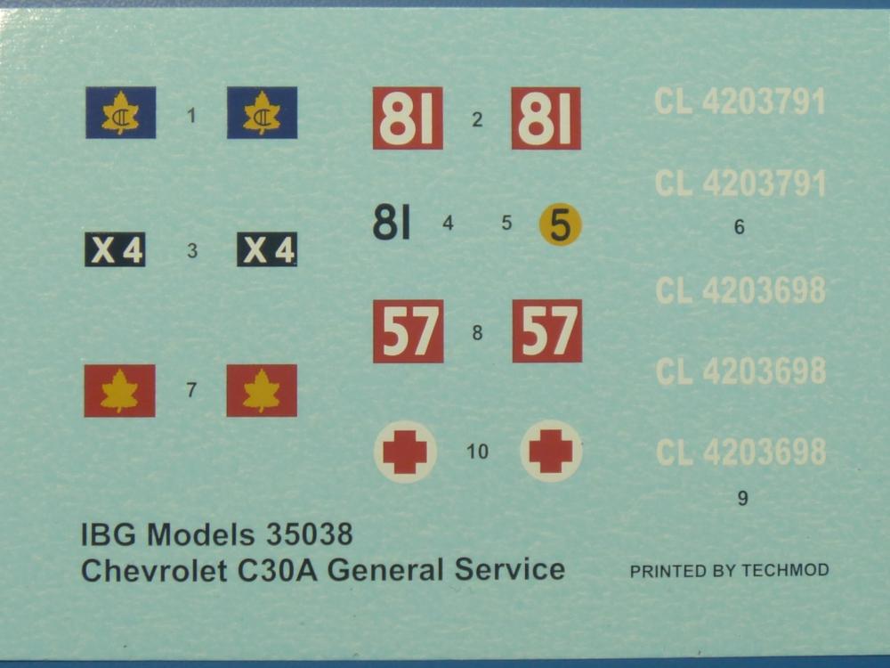 Das Original: CMP (Canadian Military Pattern) Lkws waren nach britischen Spezifikationen in großen Stückzahlen in Kanada hergestellte Lastkraftwagen, die für den Gebrauch durch Commonwealth Armeen und deren Verbündete bestimmt waren. Der CMP C30A war ein Allrad-Lkw mit einer Ladekapazität von ca. 1500 kg (30 cwt). Eigentlich handelt es sich bei dem C30 um einen "gestreckten" C15 (Radstand 340 cm gegenüber 256 cm). Leider konnte ich keine explizite Information über den C30 finden, daher kann ich nur vermuten, dass er auch den 85 PS (63 kW) 6-Zylinder Reihenmotor mit einem Hubraum von 3,5 Litern hatte, mit dem er ca. 80 km/h erreichen konnte. (Zumindest im Modell wird der gleiche Motor verwendet.) Es gab ihn in verschiedenen Varianten wie z.B. als Transporter und Waffenplattform. Er wurde auf fast allen Kriegsschauplätzen im 2. Weltkrieg eingesetzt und auch von den Achsenmächten als Beutefahrzeug eingesetzt und modifiziert. Der Bausatz: IBGs verwöhnt Fans von britischen Fahrzeugen diesmal mit dem Chevrolet C30A, von dem ich kein Modell in Spritzguss soweit finden konnte.Wir finden Im Karton 17 graue, einen klaren Spritzling, 1 PE-Platine, Decals und die Bauanleitung.