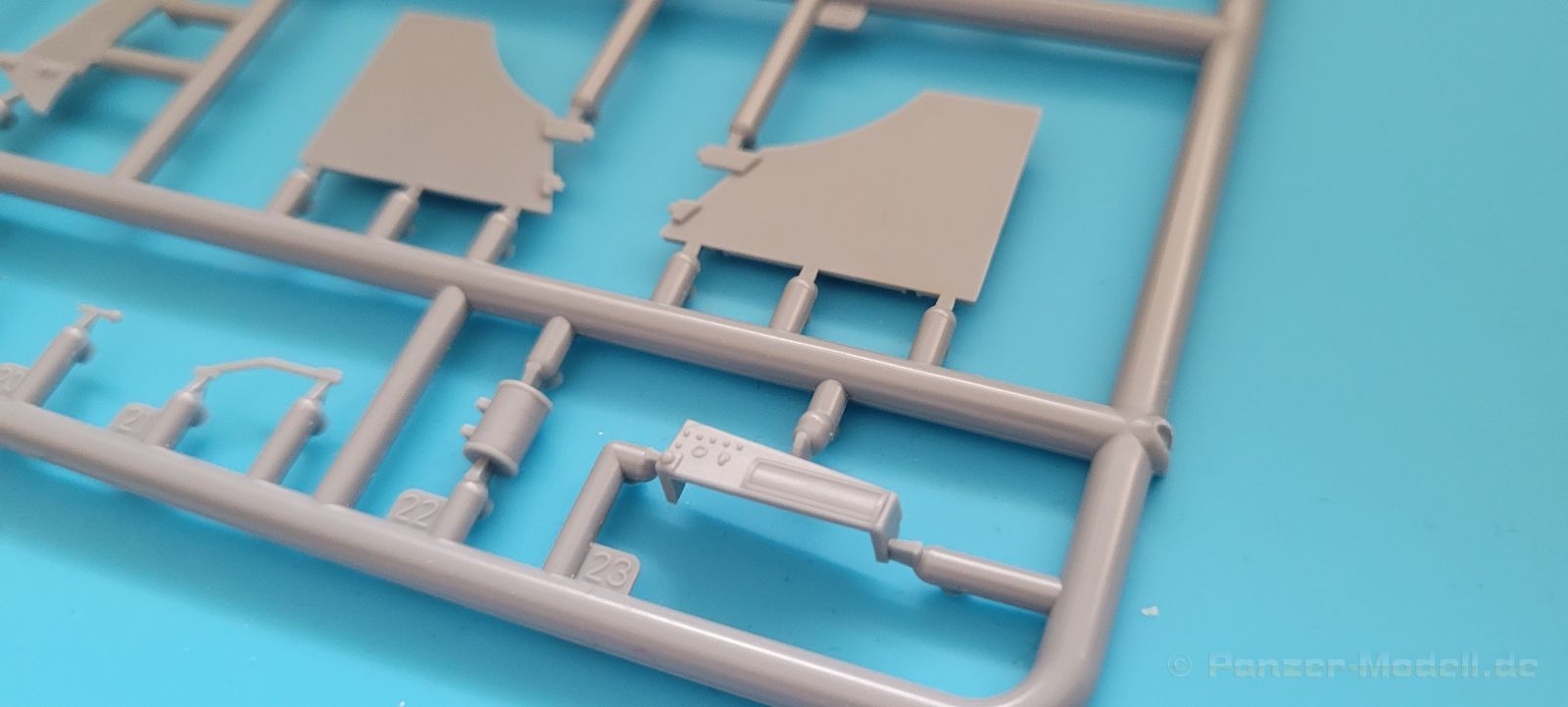 Der Bausatz präsentiert sich sauber gespritzt, Fischhaut ist augenscheinlich keine vorhanden und die meisten Auswerfermarken befinden sich an später nicht mehr sichtbaren Stellen. Decals, Fotoätzteile und eine Bauanleitung im typischen IBG 3D Stil runden den Bausatz ab.