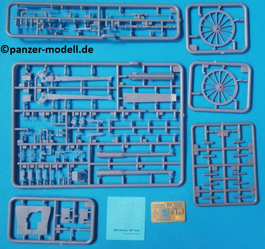 Die französische 75mm Feldkanone Canon de 75 mm modèle 1897 war eine im März 1898 eingeführte Schnellfeuerkanone. Sie war allgemein bekannt als die „Französische 75“, einfach „Die 75“ und „Soixante-Quinze“ (französisch für "fünfundsiebzig"). Obwohl 1939 bereits veraltet, waren aus Mangel an moderneren Geschützen noch viele 75er im Einsatz (allein in der französischen Armee ca. 4500 Exemplare). In den Jahren 1919-1920 war eine beträchtliche Anzahl, zusammen mit Infanteriewaffen, für den Einsatz im polnisch-sowjetischen Krieg an Polen geliefert worden. Dort wurde sie als 75mm Armata wz.1897 bezeichnet. Im September 1939 verfügte die polnische Armee über 1.374 dieser Geschütze, womit es das mit Abstand meistverwendete Artilleriegeschütz im polnischen Dienst war. In der mittlerweile vierten Inkarnation veröffentlicht der polnische Herstellers IBG dieses Geschütz nun in polnischen Diensten. Die Schachtel enthält: