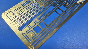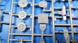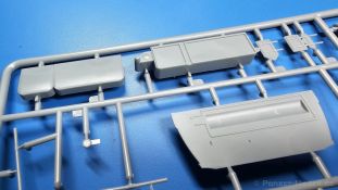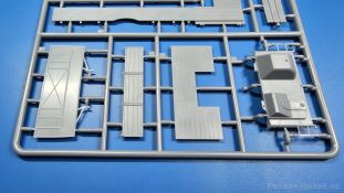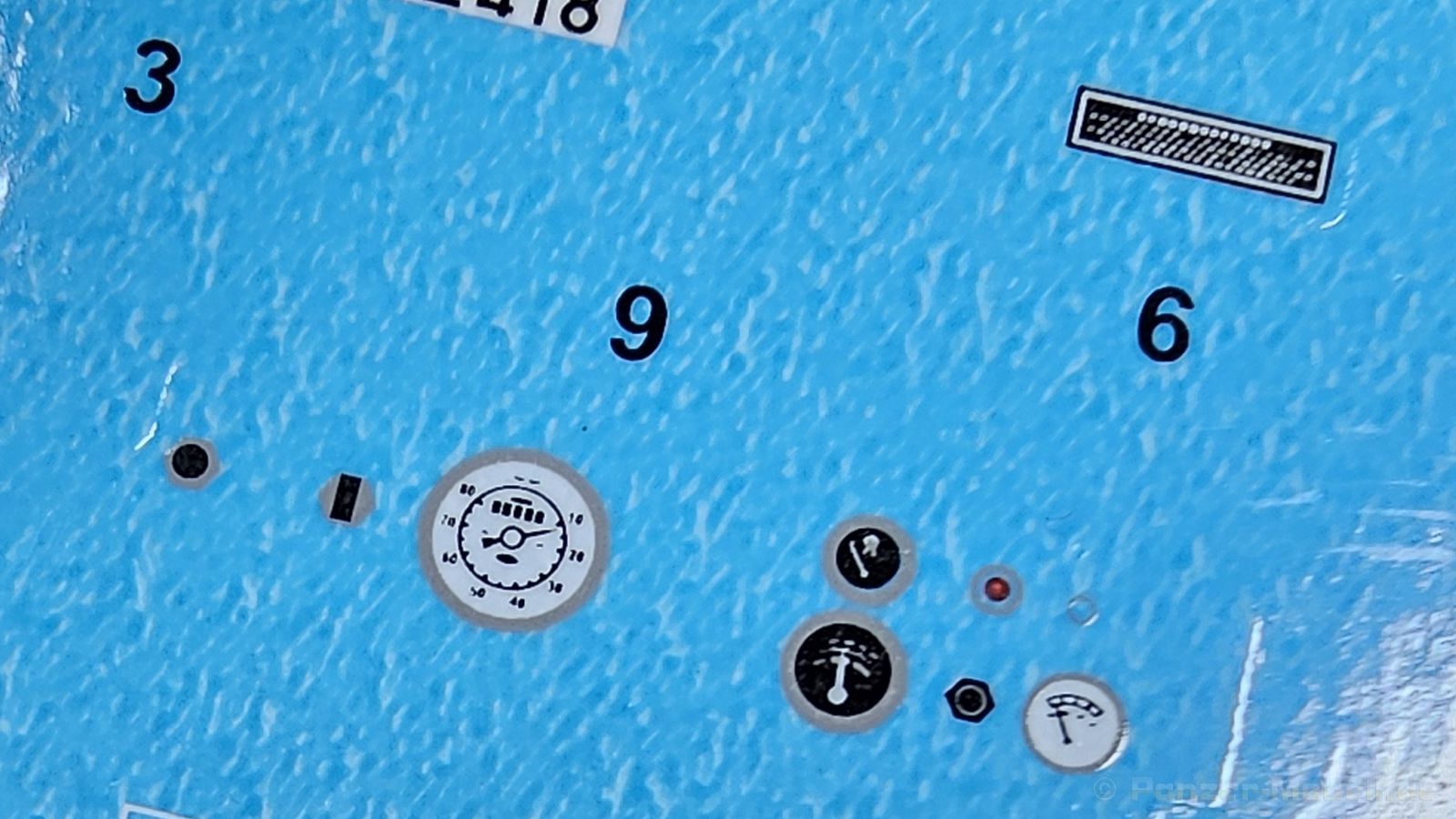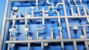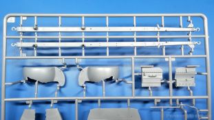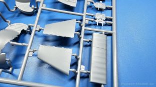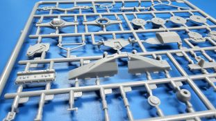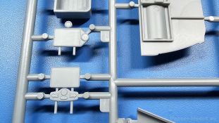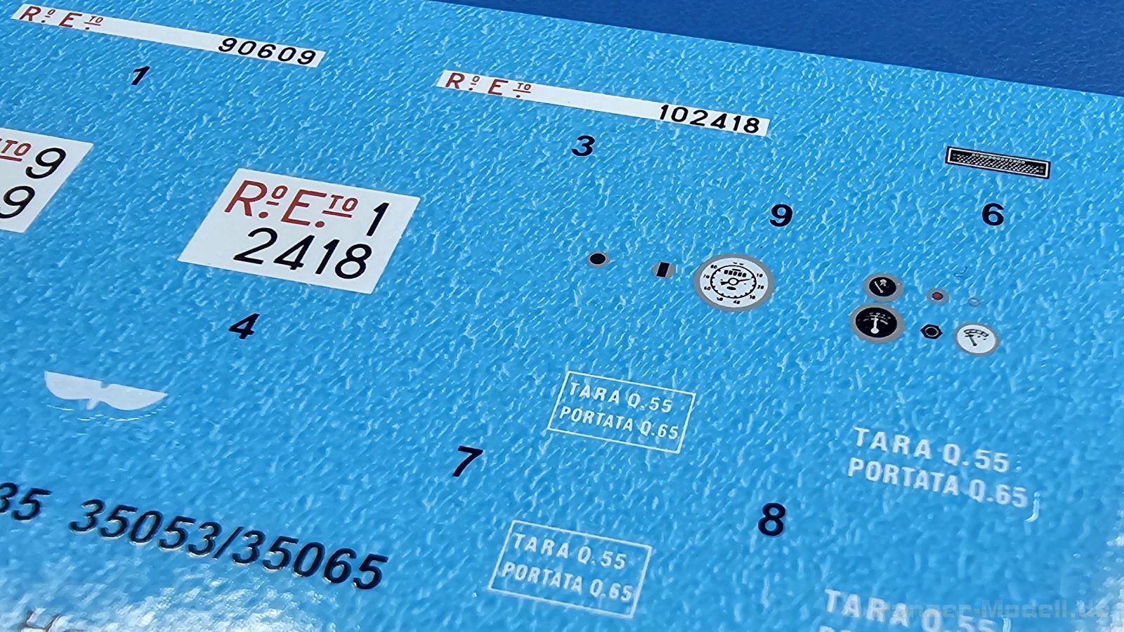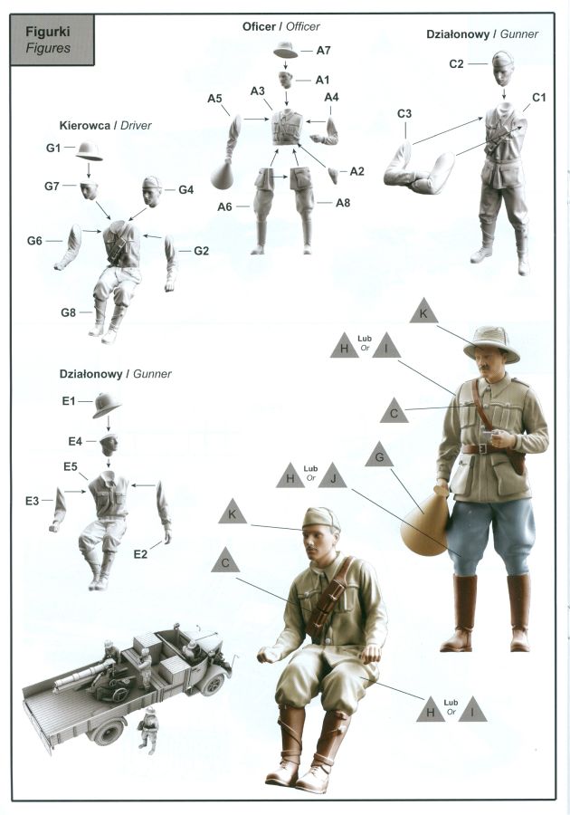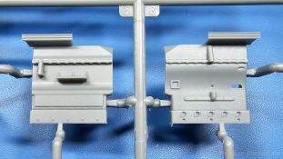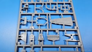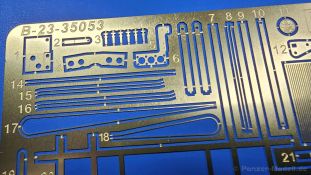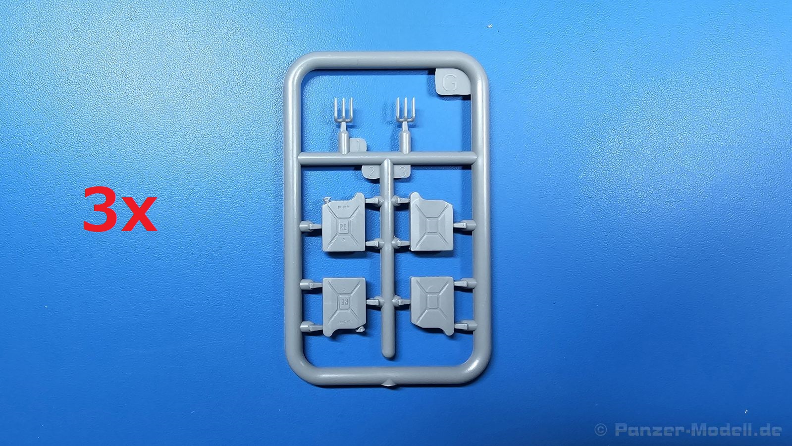 Die Auslegung des Fahrerhauses als Rechtslenker machte mich stutzig. In Italien gab es bis in die 1920-Jahre eine regional unterschiedliche Regelung mit Rechts- und Linksverkehr, welches eine Erklärung sein könnte, allerdings wurde der Lancia 3Ro erst ab 1938 entwickelt. Das oben offene Fahrerhaus ist immer noch ein viele Einzelteile aufgebrochen. An die Rückwand wird innen die durchgehende Rückenlehne angebracht. Die schmalen Seitenwände haben um unteren Ende Stangen zur Aufhängung der Trittbleche. Hier sollte man beim Hantieren aufpassen, um die Stangen nicht bereits vor der Montage des Fahrerhauses auf dem Rahmen abzubrechen. Der Boden nimmt die einteilige Sitzbank auf, deren Darstellung aber eine Trennung zwischen Fahrer- und Beifahrersitz aufweist. Es macht den Eindruck, dass der Fahrer auf dem Tank sitzt, denn rechts von seinem Sitz schaut ein Einfüllstutzen heraus. Schalt- und Handbremshebel werden ebenfalls auf den Boden geklebt. Die Fahrerhausfront ist auch beidseitig detailliert. Bereits angegossen sind die Halterungen mit den Winkern. An der Motortrennwand wird der Luftfilter mittels PE-Halterung montiert und über die Zuluftleitung mit dem Motor verbunden. Innen finden sich Kupplungs-, Brems- und Gaspedal, Lenkstange und -rad, Armaturentafel, kleine Bedienhebel und Haltebügel für den/die Beifahrer. Beidseitig detaillierte Türen können geöffnet oder geschlossen angebaut werden. Die äußeren Türgriffe werden separat angebracht. Beidseitig werden Suchscheinwerfer(?) angebracht. Für die Frontscheiben gibt es kratzer- und schlierenfreie Klarsichtteile, die aber bei dieser Version nicht angebracht werden, auch wenn sie im Bausatz enthalten sind. Die Motorhaube besteht aus dem mit angegossenem Einfüllstutzen Kühlerrahmen, der mit einem PE-Gitter verfeinert wird, den Seitenblechen mit Lüftungsrippen und den 2 Haubenteilen, die über ein schönes Klavierscharnier verbunden werden. Die Aufteilung erlaubt eine geöffnete Darstellung der Motorhaube. Die Seitenteile erhalten je 3 Riegel aus PE-Teilen. Die Vorderräder werden von großen Kotflügeln mit nach vorn ausgestellten Trittflächen überdeckt. Auf den Trittflächen werden feine Begrenzungsstangen befestigt, von denen man vorher den feinen Grat entfernen sollte. Die ausgehöhlten Fahrscheinwerfer mit Klarsichtscheiben finden seitlich am Kühlerrahmen ihren Platz. Der Boden der Ladefläche wird auf einen einteiligen Hilfsrahmen montiert und weist eine Holzbohlenstruktur auf, sowie den genieteten Rahmen für die Aufnahme der Haubitze. Die Ladefläche wird an den vier Seiten von entsprechenden und ebenfalls optisch ansprechenden Seitenwänden abgeschlossen. Zusätzlich gibt es zwei Staukisten und eine Sitzbank für die Geschützbedienung. Der Unterboden bekommt noch die Schmutzfänger der Hinterräder, die zusätzlich durch Fotoätzteile abgestützt werden. Auf der linken Unterseite wird noch eine Halterung mit fünf 20 Liter Kanistern angebracht. Jeder Kanister besteht aus zwei Längshälften und dem Griff. Der Ausguss mit geschlossenem Deckel ist an einer Hälfte bereits angegossen. Auch wenn sie durch die speziellen Versteifungsrippen wie Wehrmachtskanister aussehen, tragen sie doch fein und deutlich die Gravierung R.E. für Reggio Escercito im mittleren Feld, darunter ein C und darüber 20 Litre. Somit sind sie eindeutig italienische Kanister. Die Bauanleitung im ca. A4 Format hat 16 Seiten und ist in schwarz-weiß mit farbigen Akzenten gehalten. Kurze Beschreibungen oder Anleitungen sind in Polnisch und in Englisch gehalten. Die erste Seite startet mit Zeichenerklärungen, PE- und Decalübersicht, sowie den benötigten Farben und gibt Farbnummern für Vallejo Model Air, Hataka, Life Color, Mr. Hobby, AK Interactive und Mission Models an. Die Teile- und Spritzlingübersicht findet sich Seite 2. Der Bau des Fahrzeugs wird in 42 sinnvoll aufgeteilten, leicht verständlichen Schritten mit ausreichend großen Zeichnungen erklärt. Im Bereich des Fahrwerks erscheinen die Teile vielleicht etwas überladen. Man sollte aufpassen, dass man nichts übersieht. Einzelne Baugruppen, die in einem späteren Bauschritt verbaut werden, erhalten eine weiße Nummer in einem Dreieck. Bei Verwendung der Baugruppe erscheint das Dreieck wieder, dann in schwarzer Schrift. Am Ende der Bauschritte kommt eine Seite mit den Bau- und Bemalungsanleitungen für die Figuren. Die Anbringung der Decals und die Bemalungsanleitung für zwei Fahrzeuge finden sich auf den letzten Seiten. · R.E. 90609 - Nordafrika 1941 in einfarbig Sahara Khaki · R.E. 102418 - Nordafrika 1942 in Sahara Khaki mit graugrünen Tarnstreifen Während bei den Erstausgaben von 35053 noch keine Decals für die Armaturen dabei waren, sind sie diesmal dabei. Die Decals sind leicht seidenmatt glänzend mit wenig Trägerrand. Leider geht die Bauanleitung nicht auf die Anbringung der Armaturendecals ein. Der Bausatz hat schon allein einiges geboten, aber zusammen mit den Figuren kommt jetzt noch Diorama-Potential dazu. Winzige Plastik- (z.B. Pedale und Bedienknöpfe) und Fotoätzteile (z.B. Haubenriegel, Kanisterhalterungen) erfordern Modellbauerfahrung. Sicherlich ein Modell, das Herausforderung und Spaß beim Bau verspricht und ein äußerst befriedigendes Ergebnis.