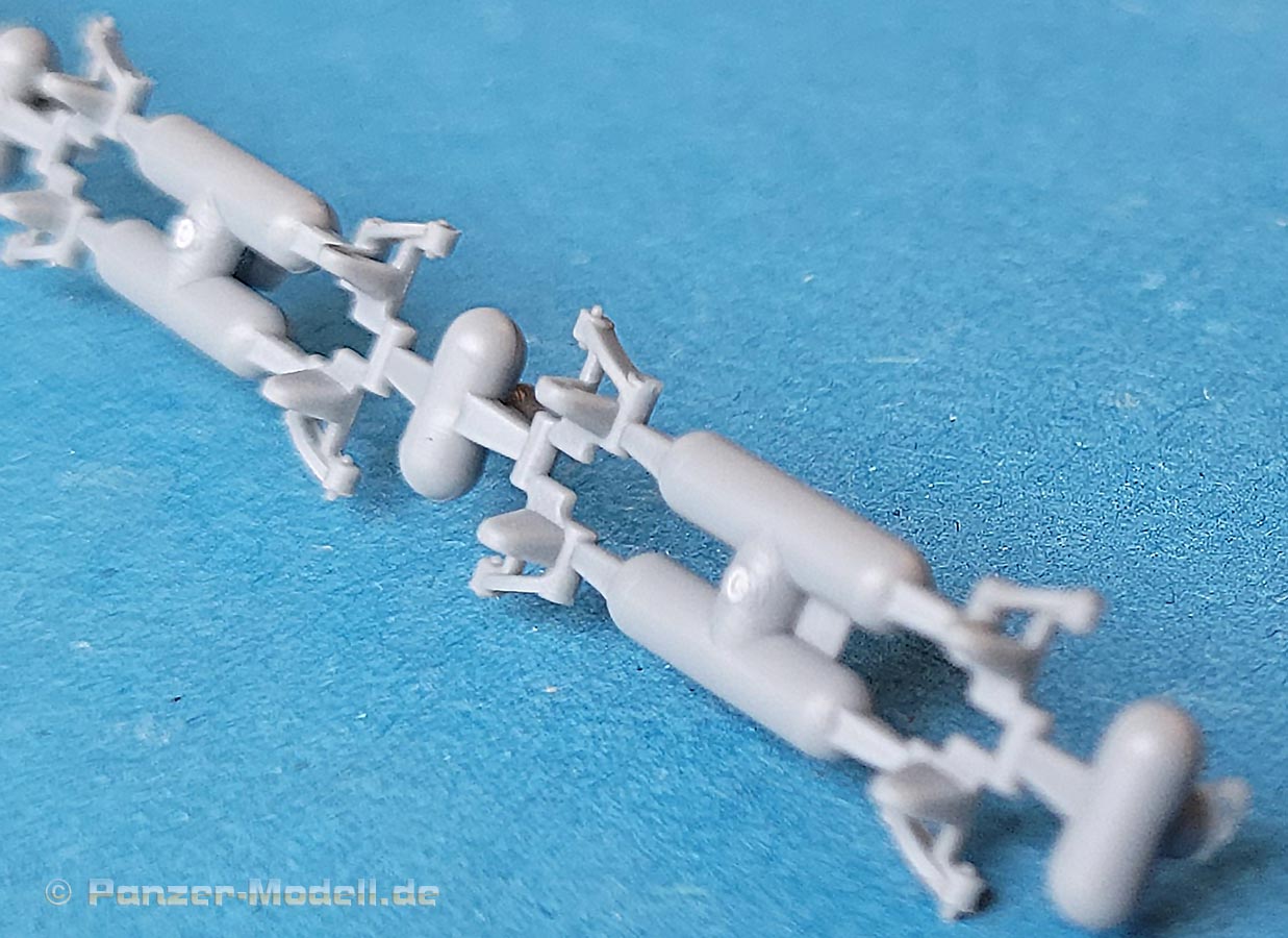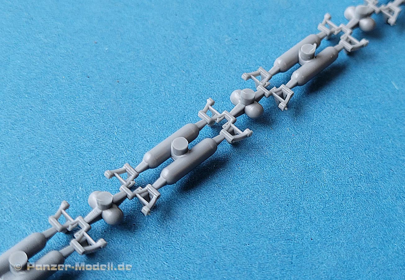 Die feinen Traghaken für Turm (und auch für die Oberwannenbleche/Motordeck) liegen als kleine, feien Spritzgusshaken bei, die sehr gut aussehen.