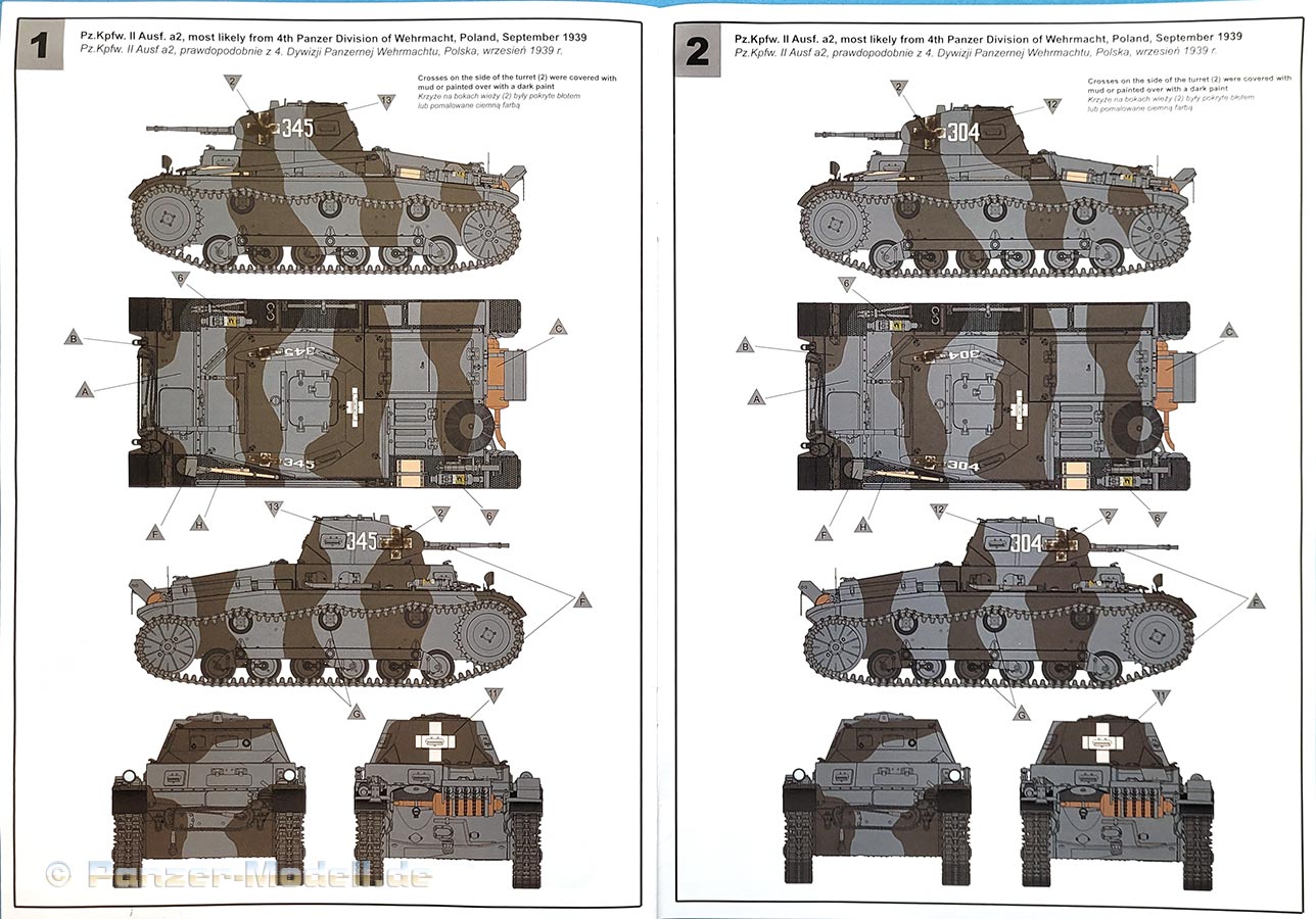 Am Ende der Anleitung sind 3 Seiten mit farbig gedruckten Farbprofilen zu Bemalung und Markierung von 3 Versionen: