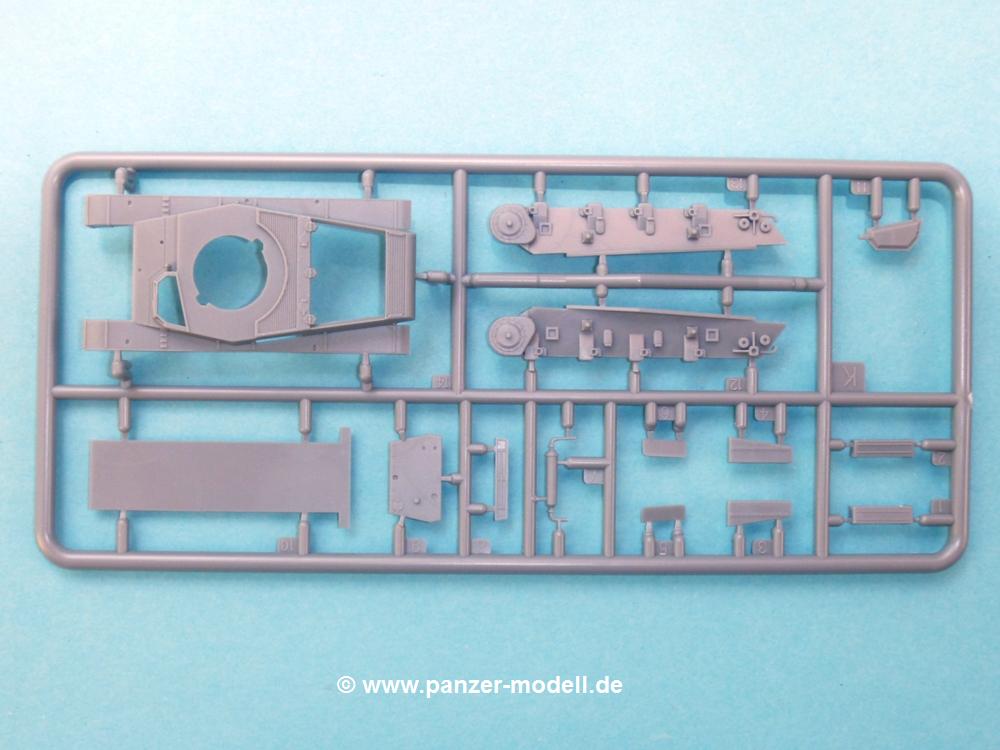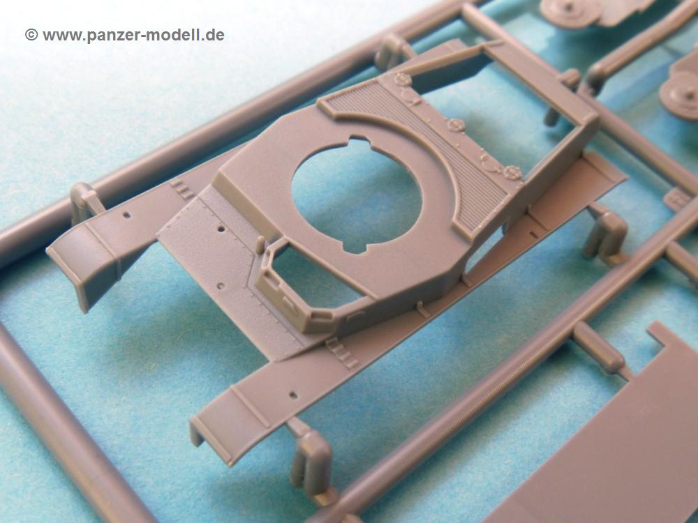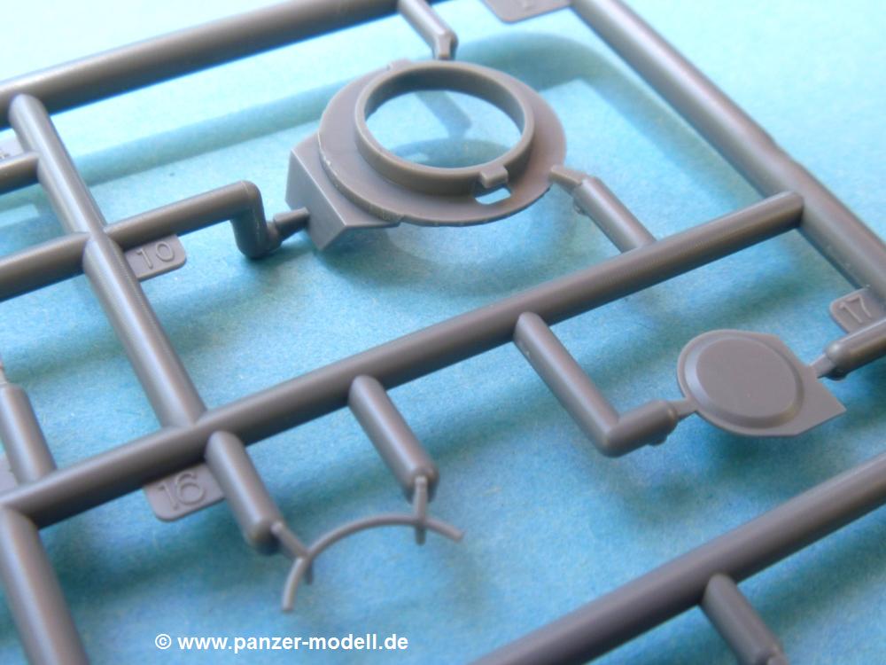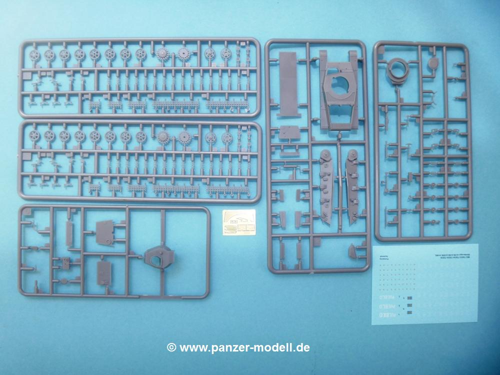 Die Teile aus mittelgrauem Plastik sind sauber ausgespritzt, ohne Grat und Versatz. Die Auswerfer sind meist auf den Spritzrahmen platziert. Feine Details treten scharf hervor.Die Wanne ist mehrteilig in Boden-, Heck-, Bugplatte und Seitenwänden ausgeführt. Ebenso sind Schwingarme, Stoßdämpfer und Kettenspannvorrichtung als separate Teile zu montieren. Die Befestigungsstifte der Schwingarme erscheinen mir ein wenig kurz. Sicheres Verkleben erspart späteren Frust. Alle Räder werden Paaren zusammengeklebt. Nieten und Verschraubungen sind jede Menge vorhanden, die Details treten scharf hervor. Die Ketten bestehen aus verschieden großen Segmenten und Einzelgliedern für die Rundungen der Antriebs- und Leiträder. Die Kettenführungszähne sind auch sehr schön gestaltet. Das Heraustrennen der Einzelglieder wird jede Menge Vorsicht erfordern, da die Glieder extrem fein und zerbrechlich erscheinen.Die Oberwanne besteht aus einem großen Teil mit angegossenen Kettenabdeckungen. Auch hier fallen feine Details wie Nietenreihen, Wartungsklappen, Luftein- und Auslassgrätings auf. An den Staukästen finden wir feine Klavierscharniere. Werkzeuge wie Schaufel, Spitzhacke, Brechstange und Wagenheber beleben das Fahrzeug. Die Fahrerluke kann theoretisch geöffnet oder geschlossen angebracht werden. Die Scheinwerfer sind mit ihren Schutzbügeln zusammengegossen und wirken ein klein wenig "klotzig", sind aber in dem Maßstab in Spritzguß kaum besser zu gestalten.Der Turm besteht Unter-, Oberteil und Luke. Seitenluken und Sichtklappen sind angegossen, trotzdem aber sehr schön detailliert. Separater Antennenfuß, abgeklappte Fla-MG Halterung und ein Hilfsvisier (?) aus PE stellen weitere Details dar. Aus dem Bauschritt geht die Anbringung des Hilfsvisiers nicht klar hervor, aber in der bemalungsübersicht kann man gut erkennen, wie es angebracht wird.Aus dem Standard-Decalbogen für alle IBG Stridsvagn entnimmt man die für ein Fahrzeug der schwedischen Armee in 3-Farb Tarnung (grün, braun, schwarz).Die Decals sind seidenmatt ohne Trägerrand gedruckt. Die weiß umrandeten Turmnummern sind so fein, dass man sie erst bei genauerem Hinschauen entdeckt. Selbnst bei den Nahaufnahmen tut man sich schwer sie zu sehen.Die 4-seitige Bauanleitung im schwarz-weißen A4 Format enthält kurze Beschreibungen oder Anleitungen in Polnisch und in Englisch. Die erste Seite zeigt uns die Spritzlingübersicht. Auf 2 weiteren Seiten wird der Bau in 11 Schritten leicht verständlich gezeigt. Auf der letzten Seite finden wir die Angaben der Farbnummern für Valejo Model Color, AK Interactive und Hataka Hobby, sowie die Anbringung der Decals.Das "Panzerchen" glänzt mit vielen Details und Einzelteilen. Der Bastelspaß ist garantiert, auch wenn die wenigen Einzelglieder etwas mehr Aufmerksamkeit erfordern. Ein wenig Erfahrung im Modellbau sollte man wegen der PE-Teile schon mitbringen.Der Preis liegt bei unter 9,- EUR! Da kann man gleich mal eine Gruppe oder Zug darstellen, wenn man sich mehrere anschafft.