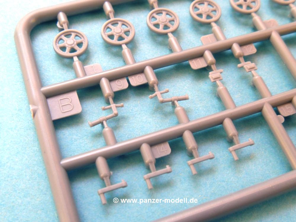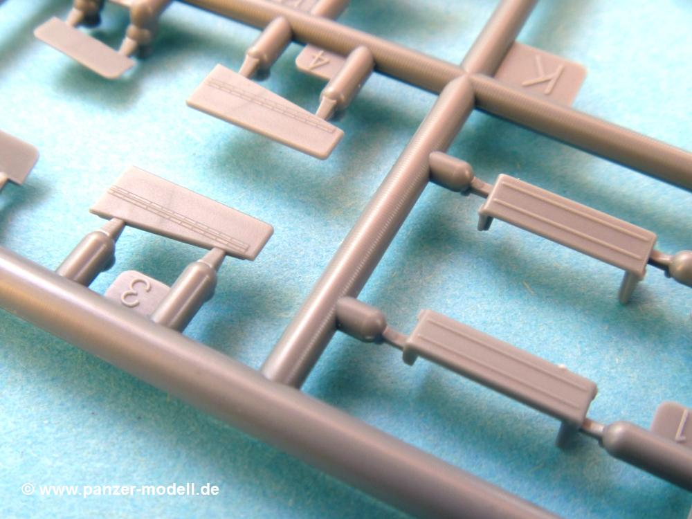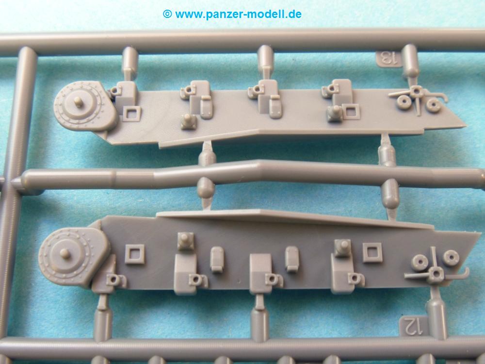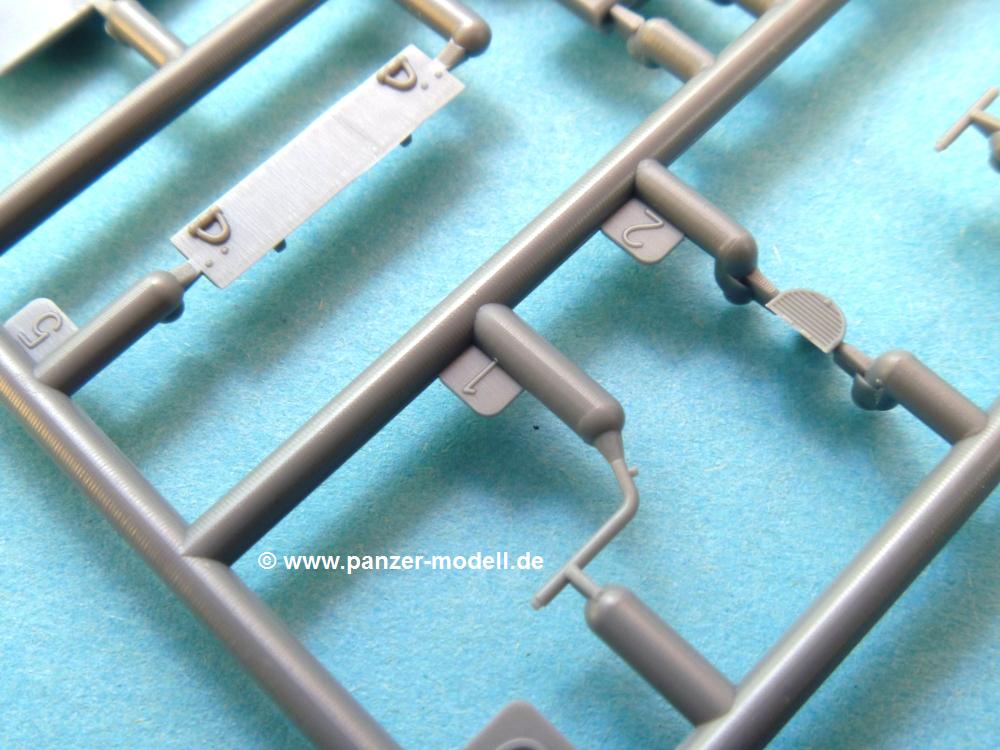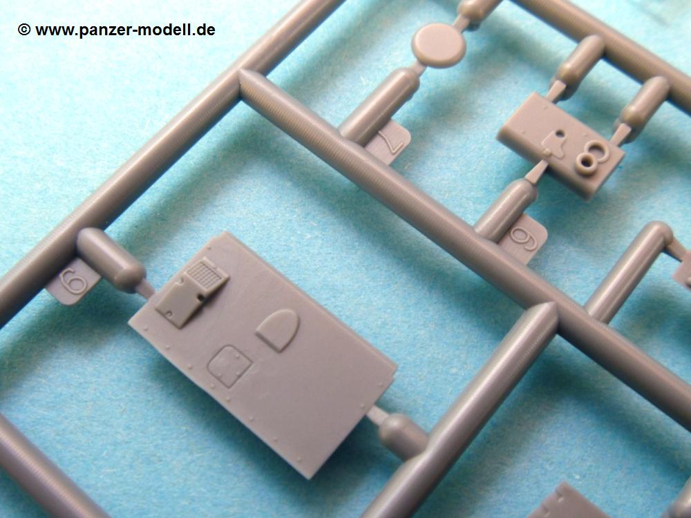 Die Teile aus mittelgrauem Plastik sind sauber ausgespritzt, ohne Grat und Versatz. Die Auswerfer sind meist auf den Spritzrahmen platziert. Feine Details treten scharf hervor.Die Wanne ist mehrteilig in Boden-, Heck-, Bugplatte und Seitenwänden ausgeführt. Ebenso sind Schwingarme, Stoßdämpfer und Kettenspannvorrichtung als separate Teile zu montieren. Die Befestigungsstifte der Schwingarme erscheinen mir ein wenig kurz. Sicheres Verkleben erspart späteren Frust. Alle Räder werden Paaren zusammengeklebt. Nieten und Verschraubungen sind jede Menge vorhanden, die Details treten scharf hervor. Die Ketten bestehen aus verschieden großen Segmenten und Einzelgliedern für die Rundungen der Antriebs- und Leiträder. Die Kettenführungszähne sind auch sehr schön gestaltet. Das Heraustrennen der Einzelglieder wird jede Menge Vorsicht erfordern, da die Glieder extrem fein und zerbrechlich erscheinen.Die Oberwanne besteht aus einem großen Teil mit angegossenen Kettenabdeckungen. Auch hier fallen feine Details wie Nietenreihen, Wartungsklappen, Luftein- und Auslassgrätings auf. An den Staukästen finden wir feine Klavierscharniere. Werkzeuge wie Schaufel, Spitzhacke, Brechstange und Wagenheber beleben das Fahrzeug. Die Fahrerluke kann theoretisch geöffnet oder geschlossen angebracht werden. Die Scheinwerfer sind mit ihren Schutzbügeln zusammengegossen und wirken ein klein wenig "klotzig", sind aber in dem Maßstab in Spritzguß kaum besser zu gestalten.Der Turm besteht Unter-, Oberteil und Luke. Seitenluken und Sichtklappen sind angegossen, trotzdem aber sehr schön detailliert. Separater Antennenfuß, abgeklappte Fla-MG Halterung und ein Hilfsvisier (?) aus PE stellen weitere Details dar. Aus dem Bauschritt geht die Anbringung des Hilfsvisiers nicht klar hervor, aber in der bemalungsübersicht kann man gut erkennen, wie es angebracht wird.Aus dem Standard-Decalbogen für alle IBG Stridsvagn entnimmt man die für ein Fahrzeug der schwedischen Armee in 3-Farb Tarnung (grün, braun, schwarz).Die Decals sind seidenmatt ohne Trägerrand gedruckt. Die weiß umrandeten Turmnummern sind so fein, dass man sie erst bei genauerem Hinschauen entdeckt. Selbnst bei den Nahaufnahmen tut man sich schwer sie zu sehen.Die 4-seitige Bauanleitung im schwarz-weißen A4 Format enthält kurze Beschreibungen oder Anleitungen in Polnisch und in Englisch. Die erste Seite zeigt uns die Spritzlingübersicht. Auf 2 weiteren Seiten wird der Bau in 11 Schritten leicht verständlich gezeigt. Auf der letzten Seite finden wir die Angaben der Farbnummern für Valejo Model Color, AK Interactive und Hataka Hobby, sowie die Anbringung der Decals.Das "Panzerchen" glänzt mit vielen Details und Einzelteilen. Der Bastelspaß ist garantiert, auch wenn die wenigen Einzelglieder etwas mehr Aufmerksamkeit erfordern. Ein wenig Erfahrung im Modellbau sollte man wegen der PE-Teile schon mitbringen.Der Preis liegt bei unter 9,- EUR! Da kann man gleich mal eine Gruppe oder Zug darstellen, wenn man sich mehrere anschafft.