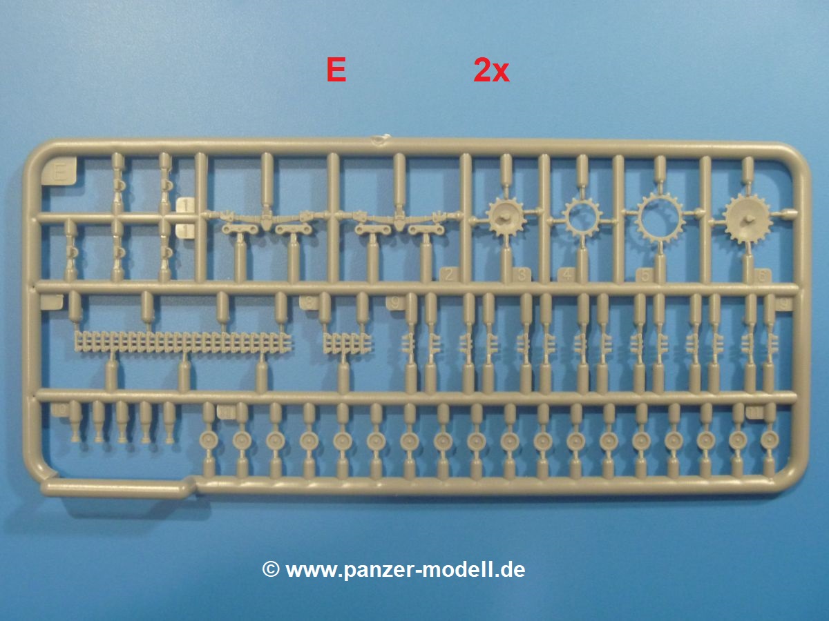 - F (1x): obere Kettensegmente, äußere Stützrollengegenlager, Laufwerkspanzerung, Antriebsradlagerung, vordere Laufrollenlagerung