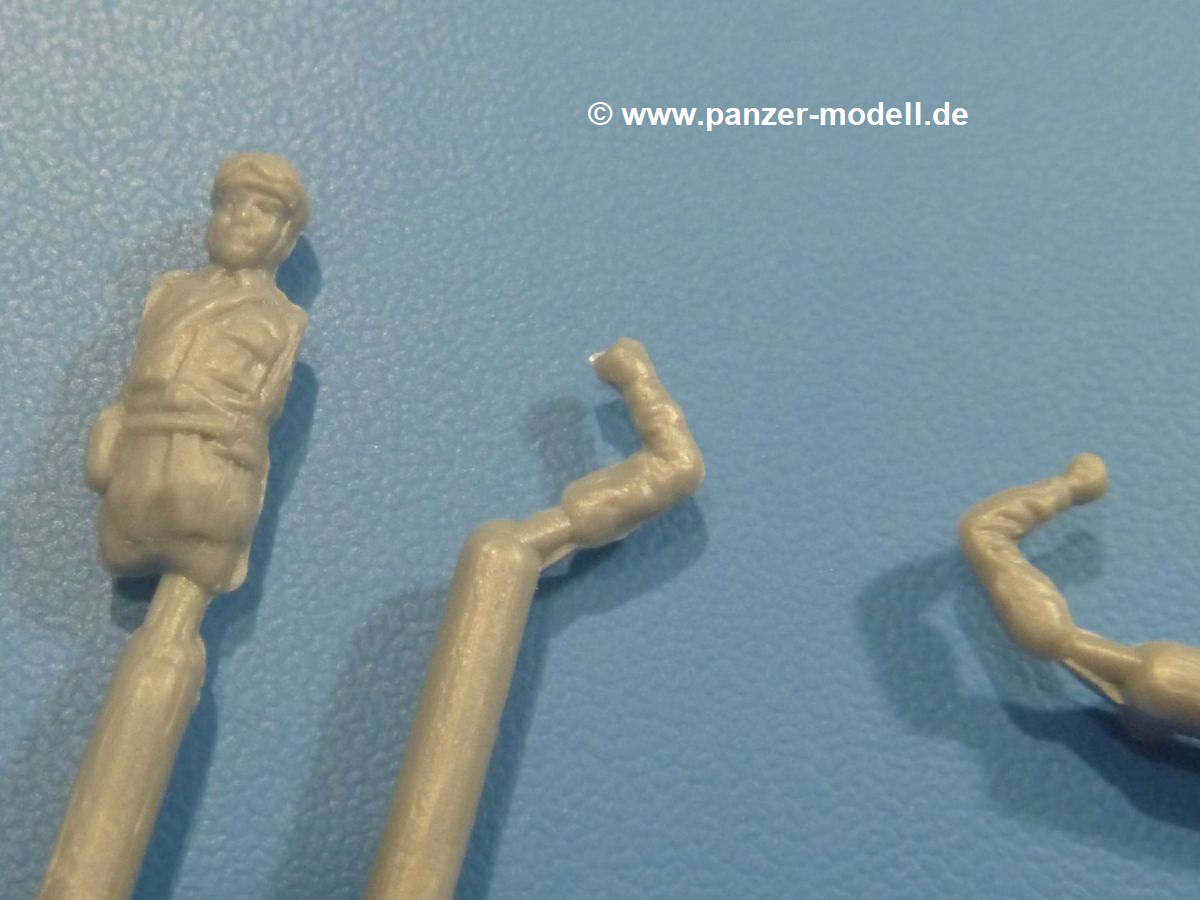 Nicht in der Anleitung vermerkt, aber trotzdem im Bausatz enthalten sind 2 Figuren - eine 3/4 Kommandantenfigur mit separaten Armen und eine außenstehende Vollfigur.