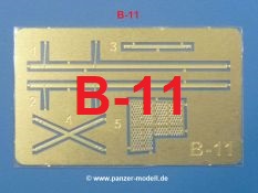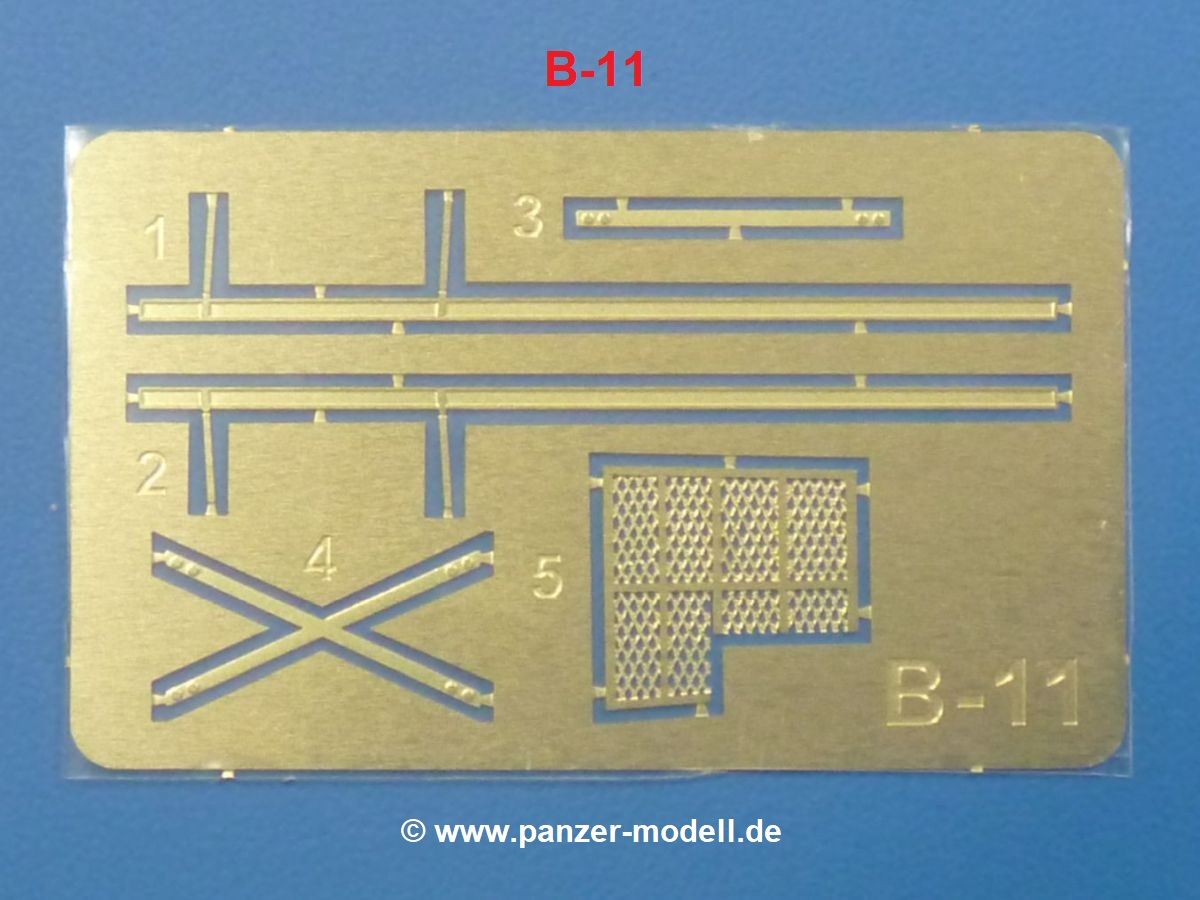 - B11 (1x): PE-Platine (Auspuffgitter, Stützrollenstrebe, Grabenschwanzstreben)
