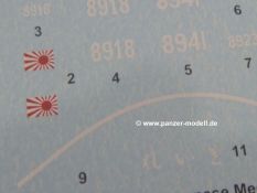 Aus dem kleinen Decalbogen für die Bausätze 72037 bis 72041 benötigt man laut Anleitung nur die Nr. 8918 an den Seiten und der Front für ein Fahrzeug des 7. Panzerregimentes, 1937 in Shanghai.