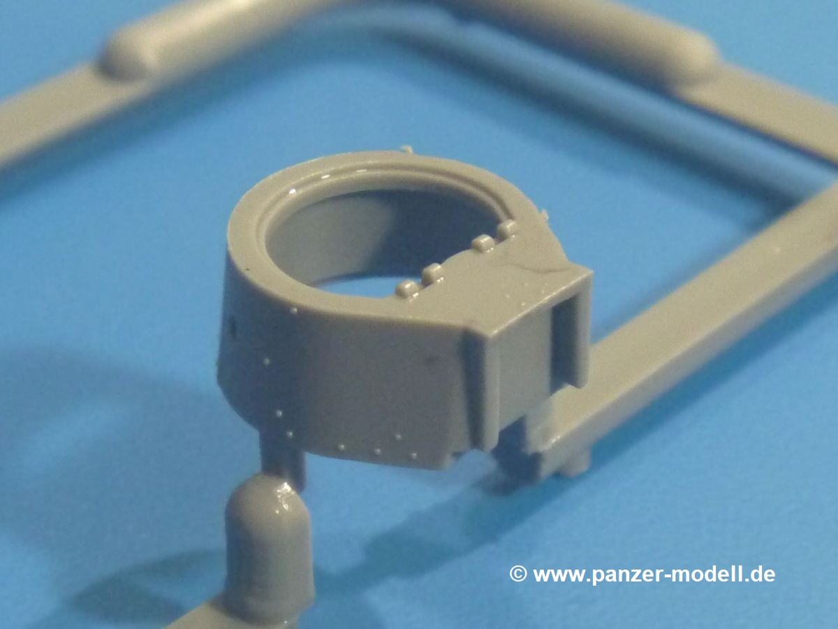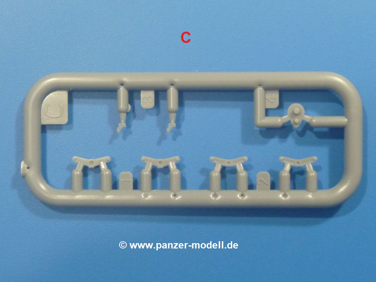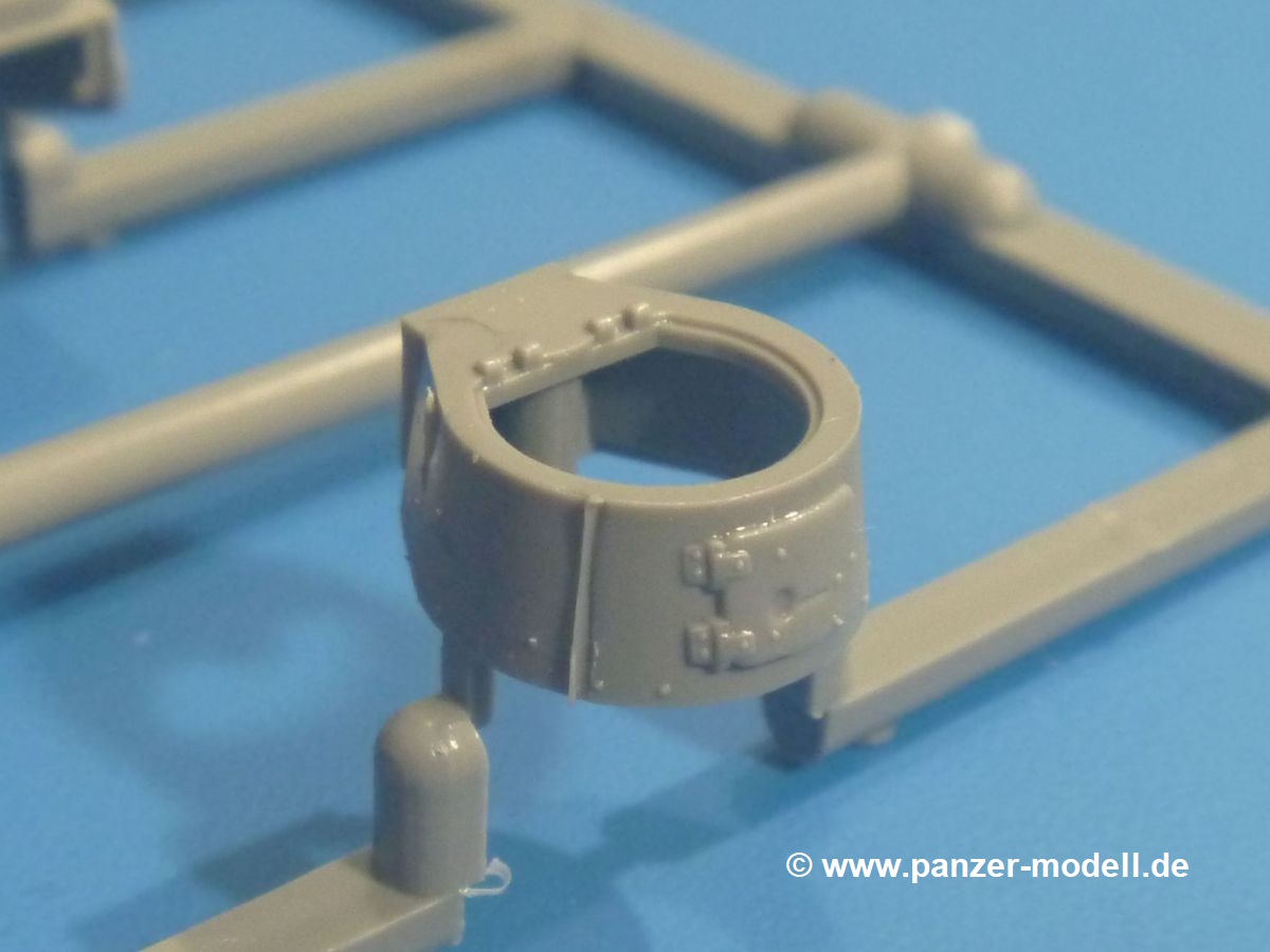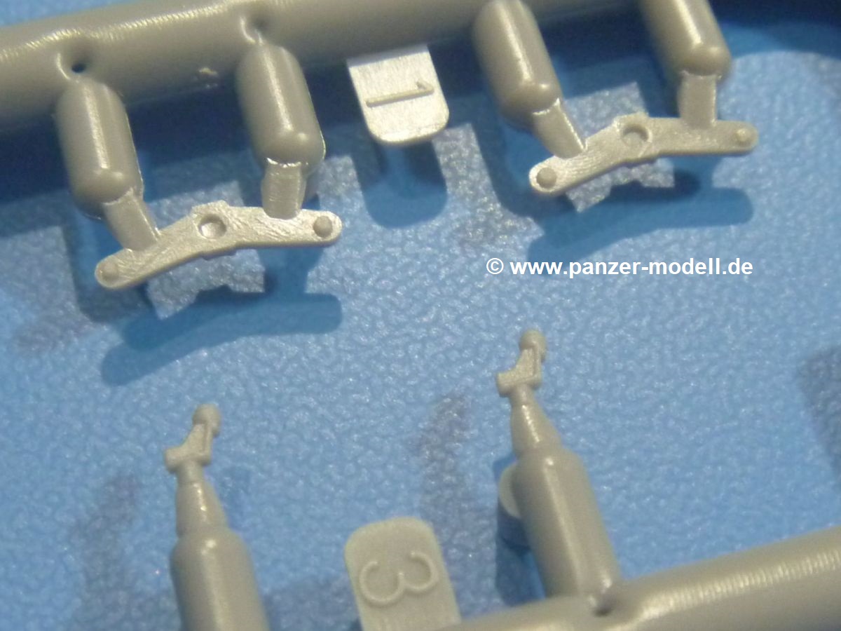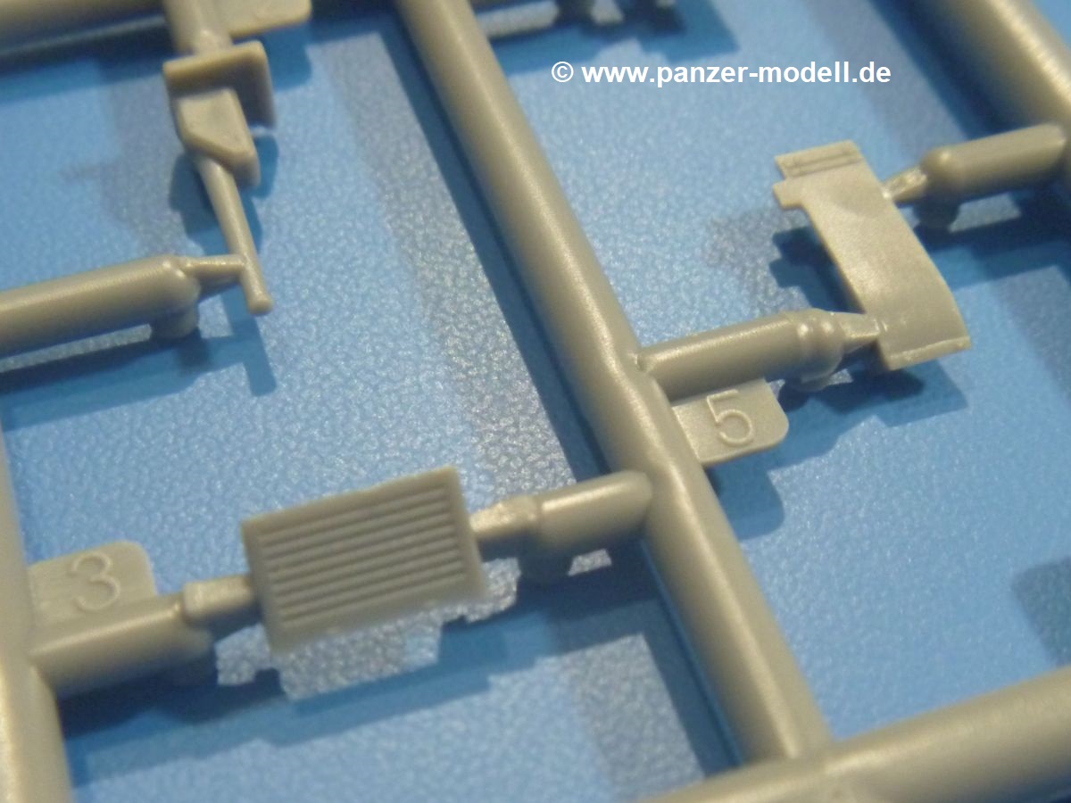 Die Tankette zeichnet sich nicht durch ihre Größe aus. Der Karton hätte auch für 4 Bausätze gereicht. Die mangelnde Masse wird aber durch gute Qualität ausgeglichen. Die Teile aus mittelgrauem Plastik sind sauber ausgespritzt mit schönen Details. Man findet wenig Grat und keinen Formversatz. Die Auswerfer sind meist auf den Spritzrahmen platziert.Wie auch bei den Vorgängerbausätzen besteht das Laufwerk ohne Einbußen an Details aus einem Stück, also Kette, Lauf-, Stütz-, Antriebs- und Leitrollen sind zusammengegossen. Man muss nur noch die Laufrollenträger befestigen. An der Wanne müssen nur noch die Vorgelegedeckel, Stützrollenachsen, Laufwerksfederung und Leitradschwingarme angebracht werden. Die Wanne, die nur noch mit dem Bodenblech geschlossen werden muss, zeigt uns schöne Details wie Wartungs- und Lukendeckel, Blechstöße und Verschraubungen/Nieten. Am Fahrererker entdecken wir feine Scharniere und Sichtklappen. Da es sich um einen Prototyp handelt, ist die linke Seite etwas abgewandelt. Hier befindet sich ein großes Zuluftgräting, welches eine Teilung der Kettenabdeckung erforderlich machte. Die Halterungen der Kettenabdeckungen bestehen aus kleinen PE Teilen. Auch für den Auspufftopf gibt es ein sehr feines PE Schutzgitter. Auch wenn das „Panzerchen“ grad mal so groß wird wie ein Daumenglied, hat man doch an Details wie Hupe, Scheinwerfer und Außenbordwerkzeuge (Schaufel, Brechstange, Spitzhacke) gedacht. Nach dem Vorbild der britischen Tanketten hat die Type 74 am Heck eine Blattfeder für die Anhängekupplung. Der Turm mit der 37mm Kanone ist aus 4 Teilen (Turmboden, Turm, Kanone, Lukendeckel) schnell zusammengesetzt.Aus dem kleinen Decalbogen für die Bausätze 72043 bis 72046 wird nur das schwarze Kennzeichen benötigt.Die 4-seitige Bauanleitung im A4 Format enthält kurze Beschreibungen oder Anleitungen in Polnisch und in Englisch. Auf der ersten Seite ist die Spritzlingübersicht, der 7 übersichtliche Bauschritte folgen. Die Angaben für Farbnummern von Tamiya-, Valejo Model Air-, Hataka-, Life Color- und AK Interactive-Farben finden wir am Schluss zusammen mit dem Bemalungsvorschlag für einen Prototyp der japanischen Armee.Der Preis liegt im deutschen Handel bei unter 10,- EUR!