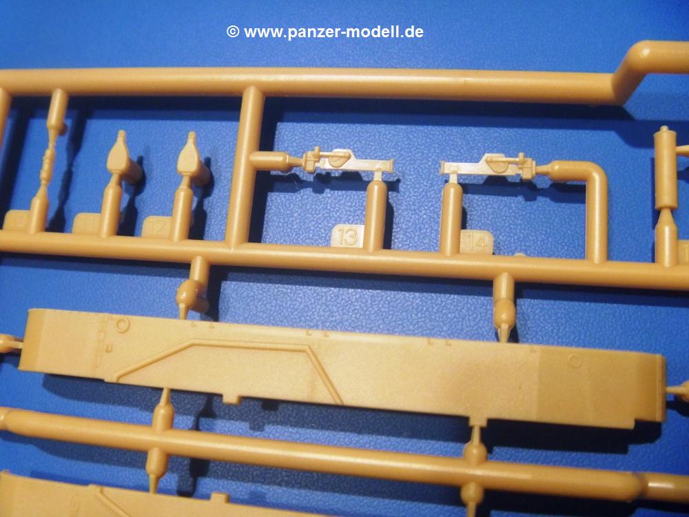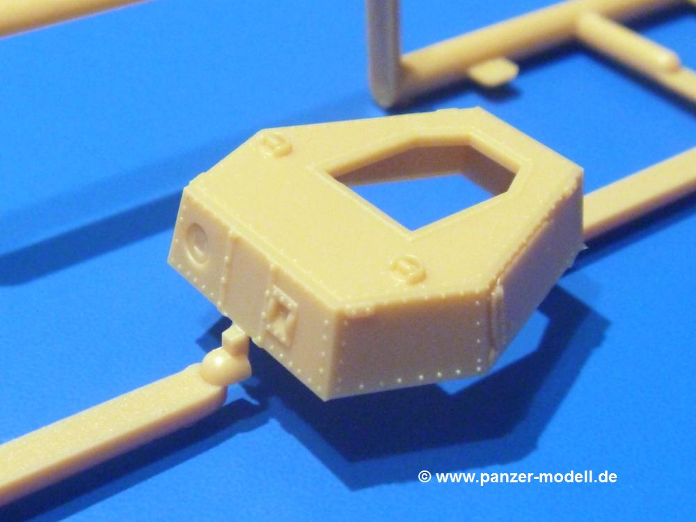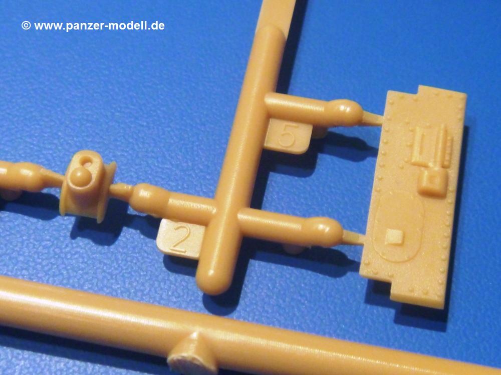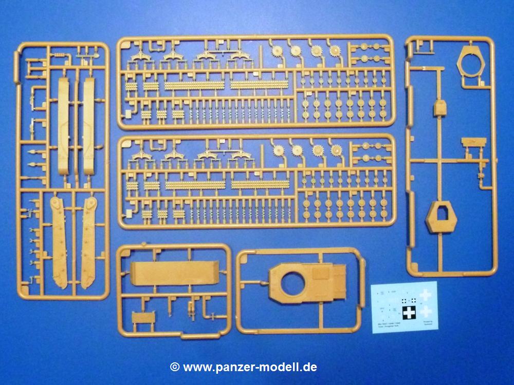 Der Bausatz: Mit dem Turan I startet IBG Models eine Reihe von 3 Modellen des gleichen Fahrgestells.Im 300 x 200 x 45 mm großen Karton finden wir 6 sandgelbe Spritzlinge und Decals.