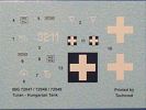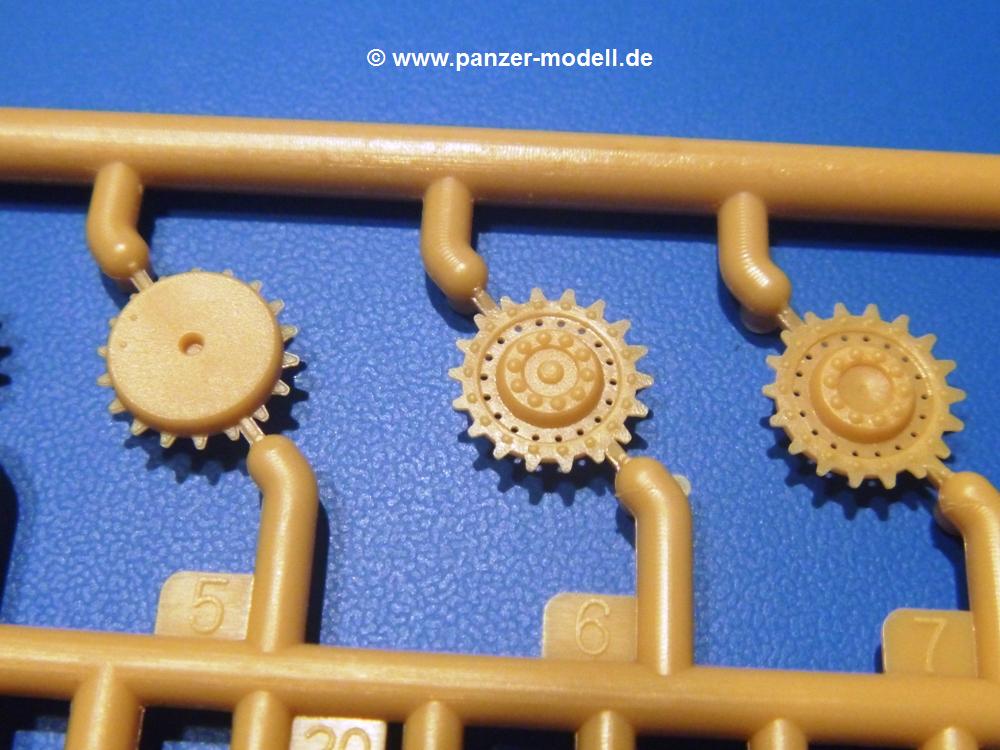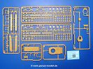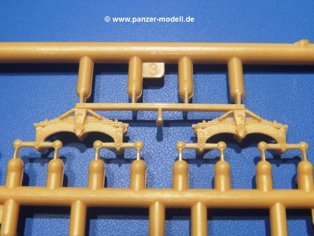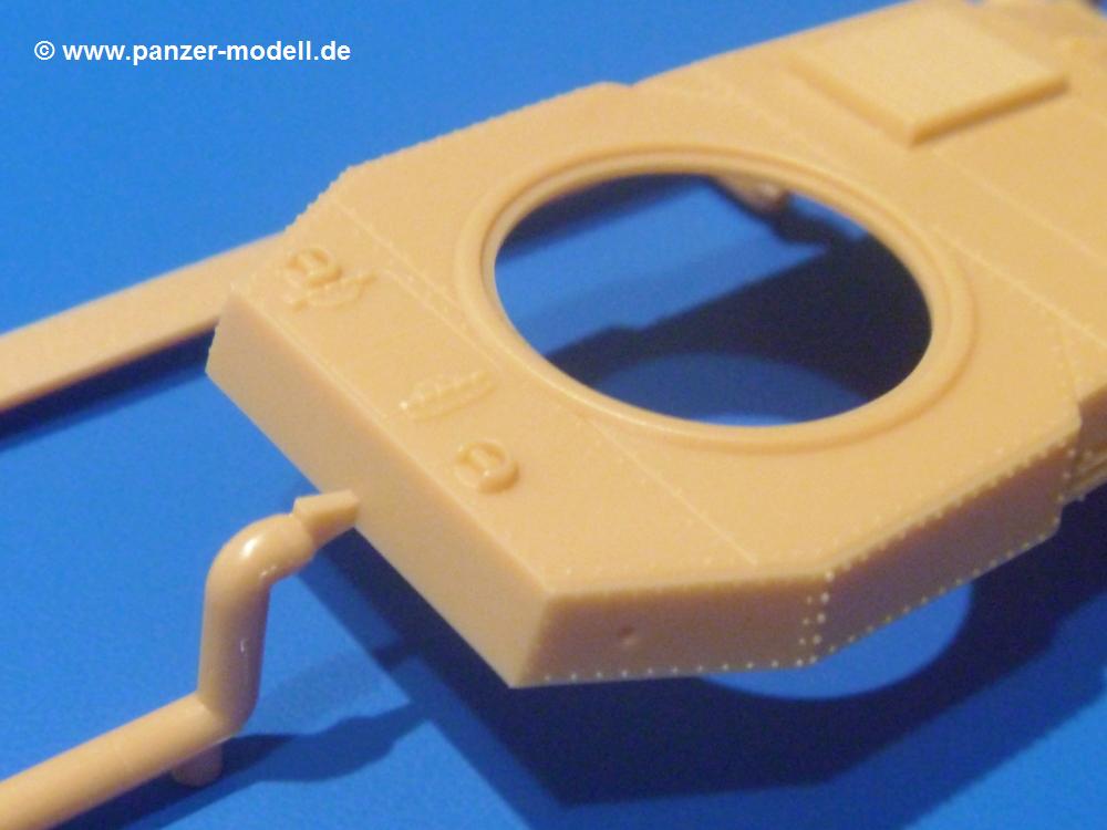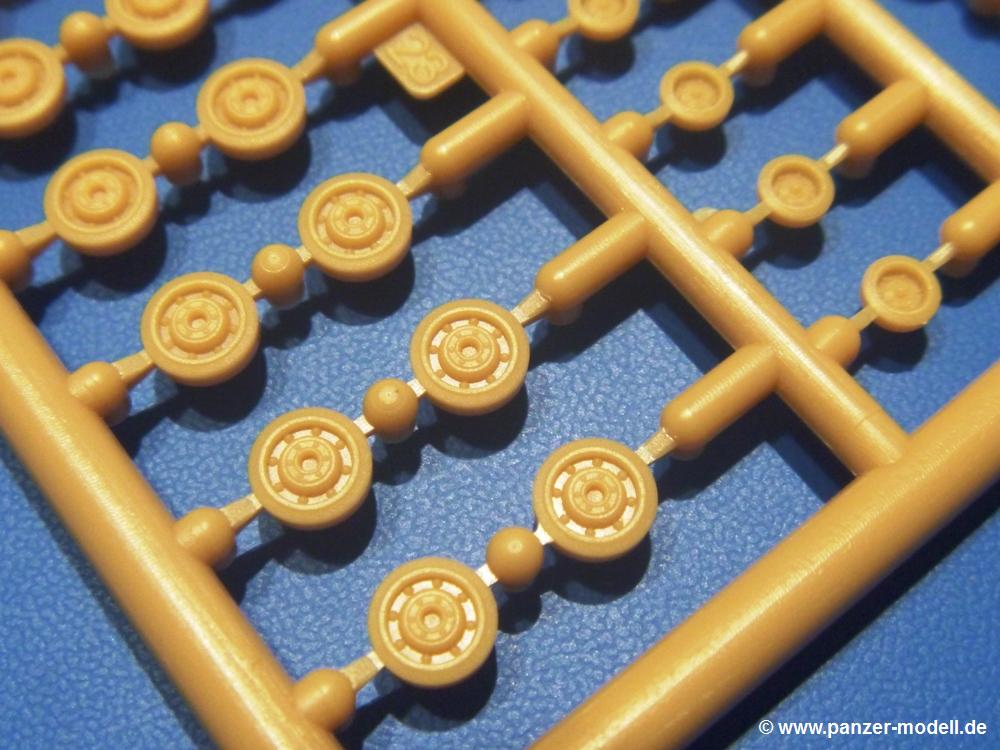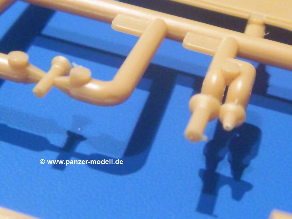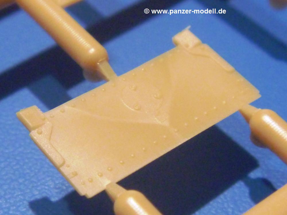 Die Teile aus sandgelbem Plastik sind sauber ausgespritzt, ohne Grat und Versatz. Die Auswerfer sind meist auf den Spritzrahmen platziert. Feine Details treten scharf hervor. Angüsse sind sehr fein und pfiffig gesetzt, so dass das Abtrennen der Teile keine Probleme bereiten wird.Die Wanne ist mehrteilig in Boden-, Bugplatte und Seitenwänden ausgeführt. Das, im Original eigentlich aufwendige, Fahrgestell des Turan besteht aus 3 Hauptteilen, ohne an Detail zu verlieren. Die äußeren Rollenwagen mit den Blattfedern bestehen aus 1 Stück, die inneren aus 2 Teilen. Alle 32 Laufrollen, 4 vordere Stützlaufrollen, 20 Stützrollen, sowie die 8 Zahnräder sind separat vorhanden. Die Ketten bestehen sowohl aus Segmenten als auch aus feinen Einzelgliedern.Die Oberwanne besteht aus einem großen Teil, an das die Kettenabdeckungen angebaut werden. Hier finden wir feine Details wie Nietenreihen, Wartungsklappen, Luftein- und Auslassgrätings. Werkzeuge wie Bolzenschneider, Schaufel, Brechstange und Wagenheber beleben das Fahrzeug. Die Fahrerluke ist geschlossen an der Wanne angegossen. Die Bugplatte mit der Fahrersichtklappe erhält noch das Bug-MG, dessen Lauf andeutungsweise offen dargestellt ist. Offen sind auch die Endrohre der Aufpufftöpfe. Am Heck finden 2 Laufrollenpaare, ein paar Schlepphaken und die Nebeltöpfe ihren Platz.Der Turm besteht Unter-, Oberteil und der Kommandantenkuppel mit geschlossener Luke. Die Seitenluken sind angegossen, trotzdem aber sehr schön detailliert. Auch das 40mm Rohr und das Turm-MG zeigen offene Mündungen.Die Decals sind seidenmatt ohne Trägerrand gedruckt und sind für 1 Fahrzeug der 1. Kavalleriedivision im Frühjahr 1944 vorgesehen.Die 8-seitige Bauanleitung im meist schwarz-weißen A4 Format enthält kurze Beschreibungen oder Anleitungen in Polnisch und in Englisch. Auf der ersten Seite finden wir die Angaben der Farbnummern für Vallejo Model Color, Hataka, Life Color, MR Hobby und AK Interactive. Die 2. Seite zeigt uns die Spritzlingübersicht. Auf 4 weiteren Seiten wird der Bau in 13 Schritten leicht verständlich gezeigt. Die Anbringung der Decals wird auf der letzten Seite gezeigt.Wieder ein toller Bausatz von IBG. Der Preis liegt bei im deutschen Handel bei um die 11,- EUR!