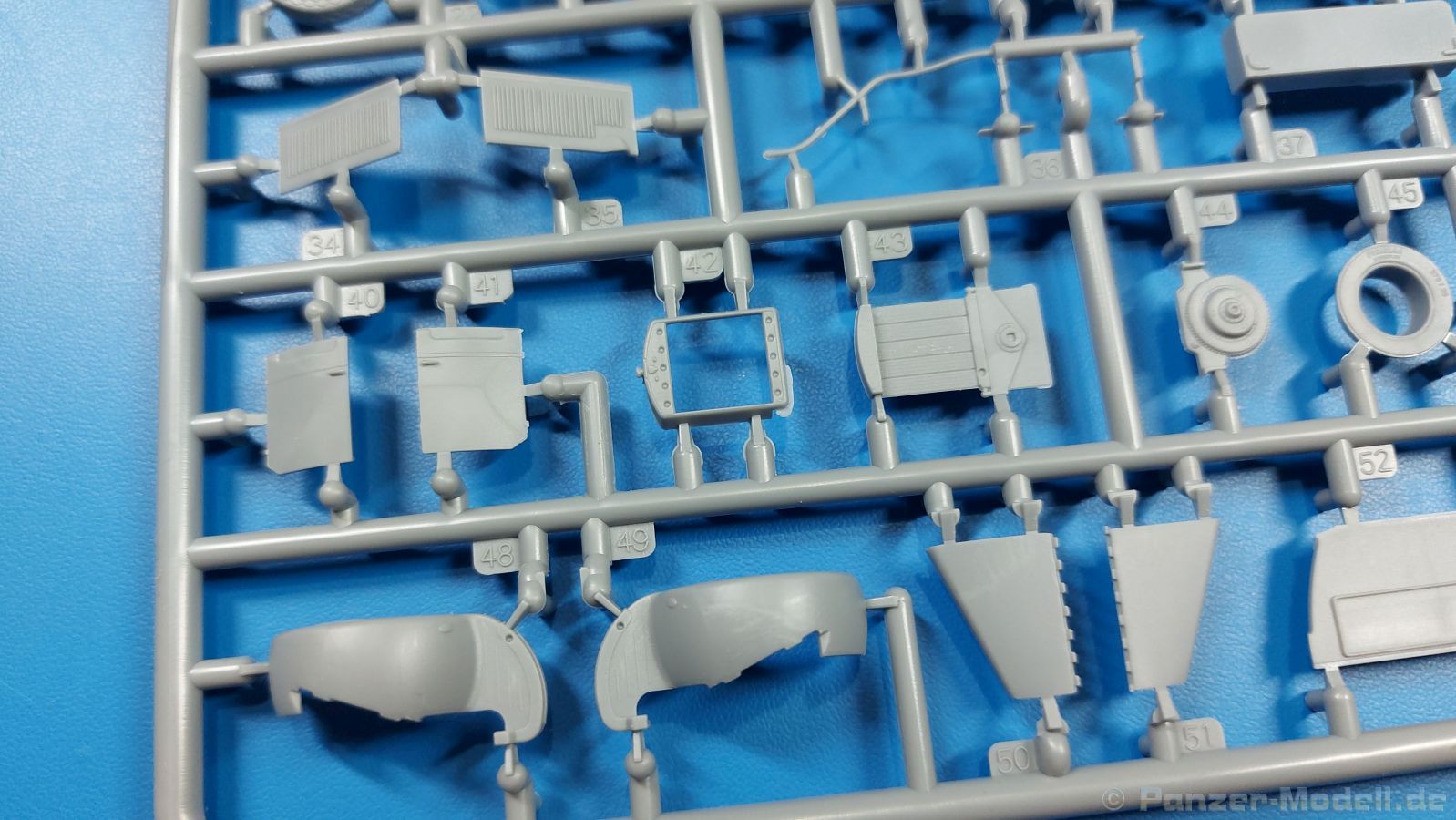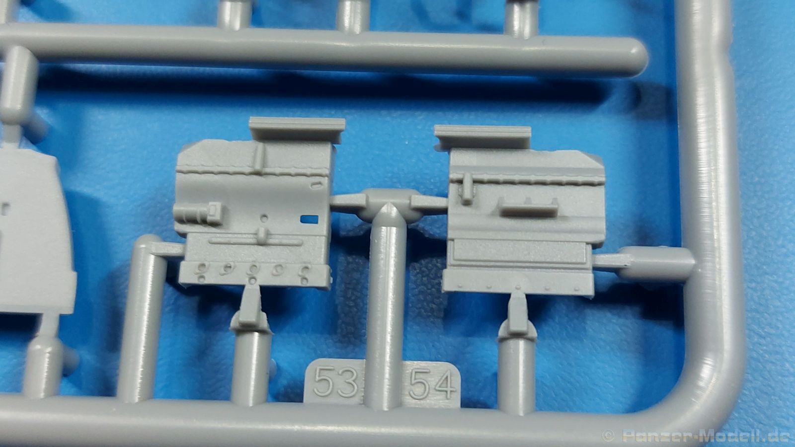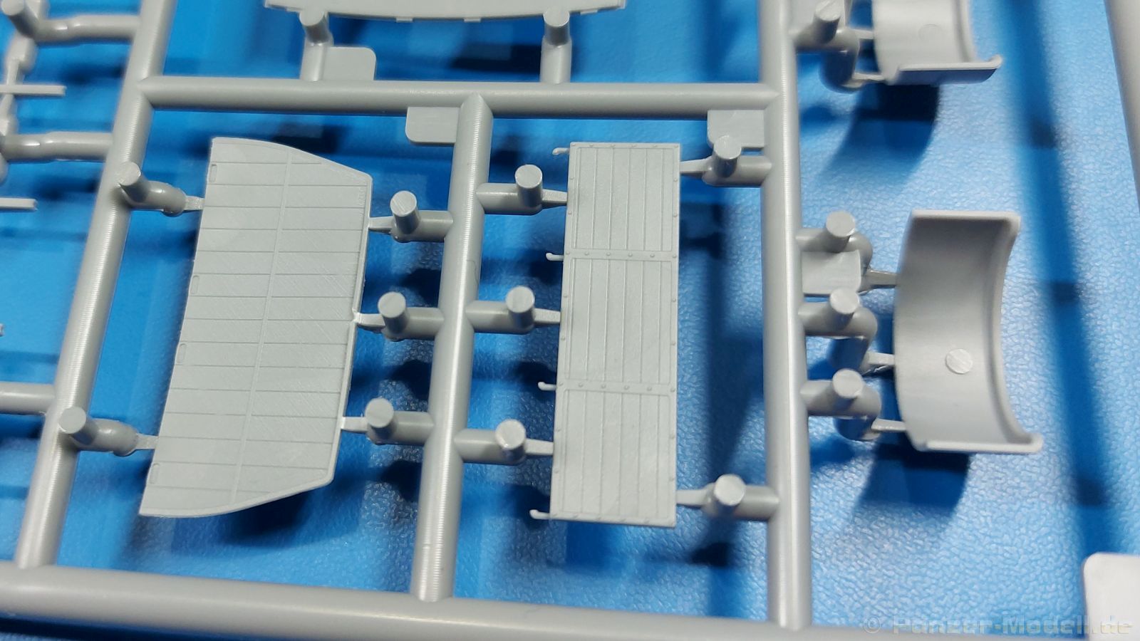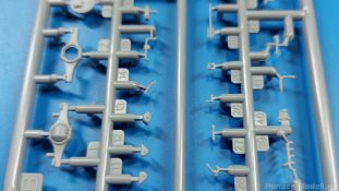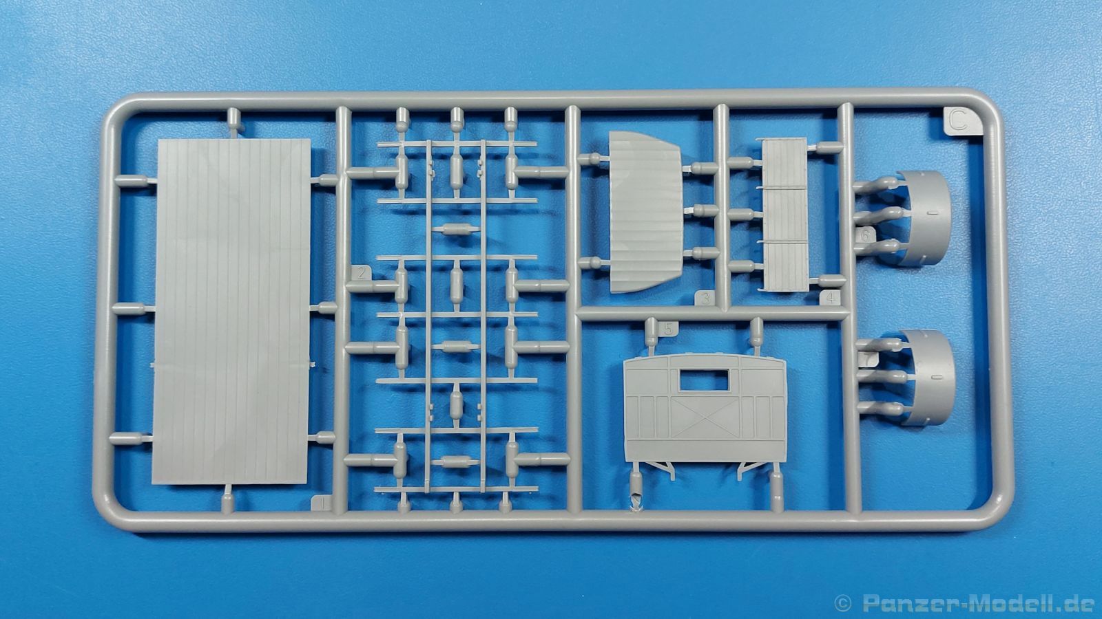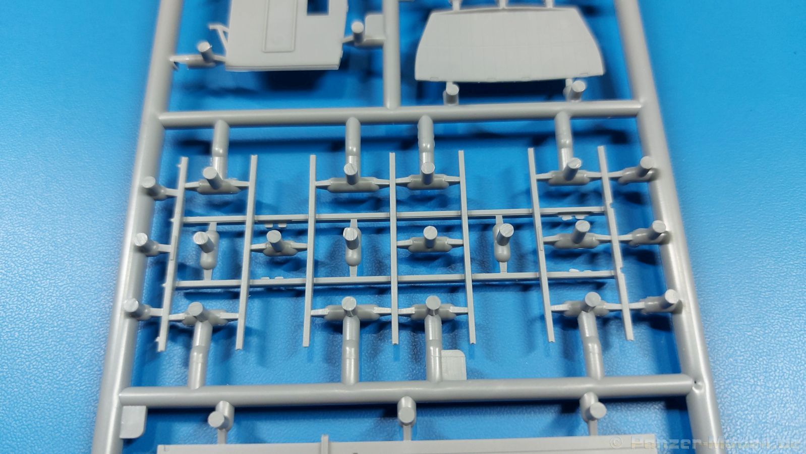 3Ro Italian Truck - 90/53 Ammunition Carrier Das Original Der Bausatz: Wie in 1:35 bekommt der 3Ro mit 90/53 90mm Flak von IBG nun auch in 1:72 einen passenden Munitions-Lkw. Der Karton mit Stülpdeckel ist 300 x 200 x 45 mm groß. Darin finden wir 16 graue, 1 klaren Spritzlinge, 1 PE-Platine, Decals und die Bauanleitung. Die Teile aus grauem Plastik sind sauber ausgespritzt, ohne Grat und Versatz. Angüsse sind so gesetzt, dass Details nicht beeinträchtigt werden. Störende Auswerferspuren sind mir so nicht aufgefallen. Angüsse sind flach gehalten, so dass man die Teile alles in allem ohne viel Nacharbeit vom Spritzling trennen können sollte. Fahrgestell: Ein eingängiges Studium der Bauanleitung kann ich nur ans Herz legen, denn der Kleine (1:72) ist dem Großen (1:35) von der Aufteilung her sehr ähnlich. Der Rahmen besteht aus separaten Längs- und Querträgern. Auch ein nicht so erfahrener Modellbauer sollte einen verwindungsfreien Rahmen hinbekommen, denn die Träger sind so geformt, dass sie nach dem Zusammenbau die entsprechende Stabilität gewährleisten. Der Kühler ist gleich im vorderen Querträger integriert. In der Vorderachse sind bereits viele Details integriert, so dass nur noch das Lenkgestänge angebaut werden müssen. Leider kann man die Räder nur in Geradeausstellung montieren. Auch die Hinterachse ist gut detailliert. Zusätzliche Spiralfedern sind bereits angegossen. Die großen Blattfedern vorn wie hinten sind sauber strukturiert. Die Räder sind gut gelungen. Das Profil ist gut getroffen. An den Seitenwänden sieht man deutlich den Herstelleraufdruck PIRELLI und die Reifengröße. Die Felgen sind mit entsprechenden Durchbrüchen versehen. Das Ersatzrad besteht nur aus Felgentrommel und Lauffläche und ruht in einem 3-teiligen Gestell am Heck des Rahmens. 2 PE Gurte sichern das Rad gegen Herausrutschen. Im vorderen Drittel des Rahmens sitzt das sehr detailreiche Getriebe, ausgestattet mit Kardanwelle und Öleinfüllstutzen. Genoppte Trittbleche für das Fahrerhaus werden auch am Rahmen befestigt. Im hinteren Querträger sitzt die Anhängekupplung mit angegossenem Kupplungsbolzen. Der mehrteilige Auspuff wird im Rahmen verlegt und mit einigen PE-Teilen gesichert. Motor: Der Dieselmotor ist ein kleines Modell für sich. Der hohe Motorblock des 5-Zylinder Diesel mit seinen Einspritzdüsen im Zylinderkopf fällt ebenso ins Auge wie die als Ölkühler ausgelegte und somit mit vielen Kühlrippen versehene Ölwanne. Lichtmaschine, Einspritzpumpe, Keilriemen, Lüfterrad, Zuluft- und Kühlleitungen, Abgaskrümmer und Öleinfüllstutzen sind weitere Details. Fahrerhaus: Die Auslegung des Fahrerhauses als Rechtslenker machte mich stutzig. In Italien gab es bis in die 1920-Jahre eine regional unterschiedliche Regelung mit Rechts- und Linksverkehr, welches eine Erklärung sein könnte, allerdings wurde der Lancia 3Ro erst ab 1938 entwickelt. Das Fahrerhaus ist viele Einzelteile aufgebrochen. Die Rückwand hat außen etliche Versteifungsrippen und einen Durchbruch für das Klarsichtfenster zur Ladefläche hin. Innen wird die durchgehende Rückenlehne angebracht. Die schmalen Seitenwände haben um unteren Ende Stangen zur Aufhängung der Trittbleche. Hier sollte man beim Hantieren aufpassen, um die Stangen nicht bereits vor der Montage des Fahrerhauses auf dem Rahmen abzubrechen. Der Boden nimmt die einteilige Sitzbank auf, deren Darstellung aber eine Trennung zwischen Fahrer- und Beifahrersitz aufweist. Der Fahrer hat tatsächlich auf dem Tank gesessen, denn rechts von seinem Sitz schaut der Einfüllstutzen heraus. Schalt- und Handbremshebel werden ebenfalls auf den Boden geklebt. Die Fahrerhausfront ist auch beidseitig detailliert. Bereits angegossen sind die Halterungen mit den Winkern. Zum Motorraum hin wird der Luftfilter mittels PE-Halterung montiert und über die Zuluftleitung mit dem Motor verbunden. Innen finden sich Kupplungs-, Brems- und Gaspedal, Lenkstange und -rad, Armaturentafel, kleine Bedienhebel und Haltebügel für den/die Beifahrer. Beidseitig detaillierte Türen können geöffnet oder geschlossen angebaut werden. Die Türgriffe innen wie außen sind bereits angegossen. Beidseitig werden Außenspiegel und Suchscheinwerfer angebracht. Das Planendach, auch innen mit Struktur, schließt das Fahrerhaus nach oben hin ab. Für die Frontscheiben gibt es kratzer- und schlierenfreie Klarsichtteile. Die Motorhaube besteht aus dem mit angegossenem Einfüllstutzen Kühlerrahmen, der mit einem PE-Gitter verfeinert wird, den Seitenblechen mit Lüftungsrippen und den 2 Haubenteilen, die über ein schönes Klavierscharnier verbunden werden. Die Aufteilung erlaubt eine geöffnete Darstellung der Motorhaube. Die Seitenteile erhalten je 3 Riegel aus PE-Teilen. Die Vorderräder werden von großen Kotflügeln mit nach vorn ausgestellten Trittflächen überdeckt. Auf den Trittflächen werden feine Begrenzungsstangen befestigt. Die ausgehöhlten Fahrscheinwerfer mit Klarsichtscheiben finden seitlich am Kühlerrahmen ihren Platz. Ladefläche: Der Boden der Ladefläche wird auf einen einteiligen Hilfsrahmen montiert. Es folgen die Frontseite, die Heckklappe und die Seitenteile. Es 7 Spriegel, deren Seiten an die Seitenteile angegossen sind. Die Oberteile der Spriegel bilden zusammen mit Längslattungen (9 Latten) ein Teil, das wie ein Dach aufgesetzt wird. Die Wölbung des Daches ist sehr gut gelungen. Den Unterschied zum normalen Transport-Lkw machen die vier Munitionskästen für Flak-Munition aus. Sie bestehen jeweils aus vier Seitenwänden, einem Zwischenboden mit aufgegossenen 90mm Patronen, einer Trennwand und zwei Deckeln. Jeden Deckel kann man geöffnet darstellen und mittels zwei PE-Stangen pro Deckel abstützen. Je Kasten gibt es zwei Einlagen aus je 5 fünf zusammengegossenen Patronen, die man bei geöffnetem Deckel einsetzen kann, um einen vollen Kasten darzustellen. Der Unterboden bekommt die Kotflügel der Hinterräder, die zusätzlich durch PE-Teile abgestützt wer