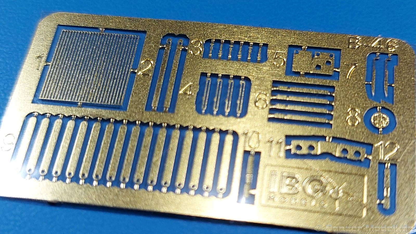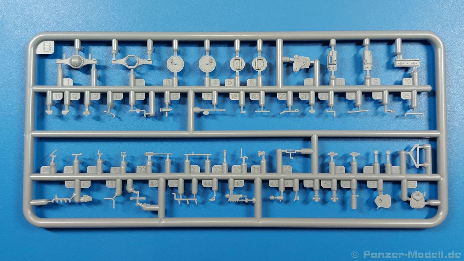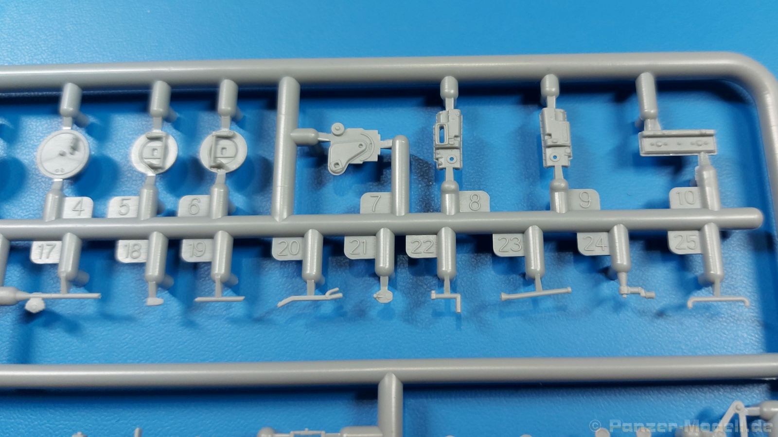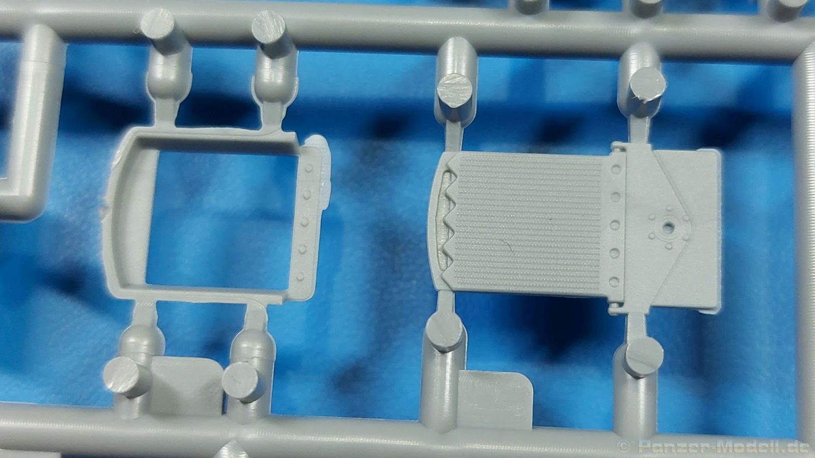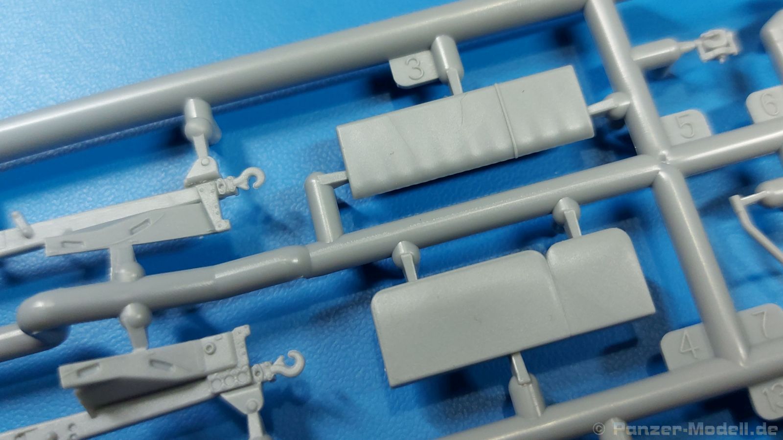 3Ro Italian Truck - 90/53 Ammunition Carrier Das Original Der Bausatz: Wie in 1:35 bekommt der 3Ro mit 90/53 90mm Flak von IBG nun auch in 1:72 einen passenden Munitions-Lkw. Der Karton mit Stülpdeckel ist 300 x 200 x 45 mm groß. Darin finden wir 16 graue, 1 klaren Spritzlinge, 1 PE-Platine, Decals und die Bauanleitung. Die Teile aus grauem Plastik sind sauber ausgespritzt, ohne Grat und Versatz. Angüsse sind so gesetzt, dass Details nicht beeinträchtigt werden. Störende Auswerferspuren sind mir so nicht aufgefallen. Angüsse sind flach gehalten, so dass man die Teile alles in allem ohne viel Nacharbeit vom Spritzling trennen können sollte. Fahrgestell: Ein eingängiges Studium der Bauanleitung kann ich nur ans Herz legen, denn der Kleine (1:72) ist dem Großen (1:35) von der Aufteilung her sehr ähnlich. Der Rahmen besteht aus separaten Längs- und Querträgern. Auch ein nicht so erfahrener Modellbauer sollte einen verwindungsfreien Rahmen hinbekommen, denn die Träger sind so geformt, dass sie nach dem Zusammenbau die entsprechende Stabilität gewährleisten. Der Kühler ist gleich im vorderen Querträger integriert. In der Vorderachse sind bereits viele Details integriert, so dass nur noch das Lenkgestänge angebaut werden müssen. Leider kann man die Räder nur in Geradeausstellung montieren. Auch die Hinterachse ist gut detailliert. Zusätzliche Spiralfedern sind bereits angegossen. Die großen Blattfedern vorn wie hinten sind sauber strukturiert. Die Räder sind gut gelungen. Das Profil ist gut getroffen. An den Seitenwänden sieht man deutlich den Herstelleraufdruck PIRELLI und die Reifengröße. Die Felgen sind mit entsprechenden Durchbrüchen versehen. Das Ersatzrad besteht nur aus Felgentrommel und Lauffläche und ruht in einem 3-teiligen Gestell am Heck des Rahmens. 2 PE Gurte sichern das Rad gegen Herausrutschen. Im vorderen Drittel des Rahmens sitzt das sehr detailreiche Getriebe, ausgestattet mit Kardanwelle und Öleinfüllstutzen. Genoppte Trittbleche für das Fahrerhaus werden auch am Rahmen befestigt. Im hinteren Querträger sitzt die Anhängekupplung mit angegossenem Kupplungsbolzen. Der mehrteilige Auspuff wird im Rahmen verlegt und mit einigen PE-Teilen gesichert. Motor: Der Dieselmotor ist ein kleines Modell für sich. Der hohe Motorblock des 5-Zylinder Diesel mit seinen Einspritzdüsen im Zylinderkopf fällt ebenso ins Auge wie die als Ölkühler ausgelegte und somit mit vielen Kühlrippen versehene Ölwanne. Lichtmaschine, Einspritzpumpe, Keilriemen, Lüfterrad, Zuluft- und Kühlleitungen, Abgaskrümmer und Öleinfüllstutzen sind weitere Details. Fahrerhaus: Die Auslegung des Fahrerhauses als Rechtslenker machte mich stutzig. In Italien gab es bis in die 1920-Jahre eine regional unterschiedliche Regelung mit Rechts- und Linksverkehr, welches eine Erklärung sein könnte, allerdings wurde der Lancia 3Ro erst ab 1938 entwickelt. Das Fahrerhaus ist viele Einzelteile aufgebrochen. Die Rückwand hat außen etliche Versteifungsrippen und einen Durchbruch für das Klarsichtfenster zur Ladefläche hin. Innen wird die durchgehende Rückenlehne angebracht. Die schmalen Seitenwände haben um unteren Ende Stangen zur Aufhängung der Trittbleche. Hier sollte man beim Hantieren aufpassen, um die Stangen nicht bereits vor der Montage des Fahrerhauses auf dem Rahmen abzubrechen. Der Boden nimmt die einteilige Sitzbank auf, deren Darstellung aber eine Trennung zwischen Fahrer- und Beifahrersitz aufweist. Der Fahrer hat tatsächlich auf dem Tank gesessen, denn rechts von seinem Sitz schaut der Einfüllstutzen heraus. Schalt- und Handbremshebel werden ebenfalls auf den Boden geklebt. Die Fahrerhausfront ist auch beidseitig detailliert. Bereits angegossen sind die Halterungen mit den Winkern. Zum Motorraum hin wird der Luftfilter mittels PE-Halterung montiert und über die Zuluftleitung mit dem Motor verbunden. Innen finden sich Kupplungs-, Brems- und Gaspedal, Lenkstange und -rad, Armaturentafel, kleine Bedienhebel und Haltebügel für den/die Beifahrer. Beidseitig detaillierte Türen können geöffnet oder geschlossen angebaut werden. Die Türgriffe innen wie außen sind bereits angegossen. Beidseitig werden Außenspiegel und Suchscheinwerfer angebracht. Das Planendach, auch innen mit Struktur, schließt das Fahrerhaus nach oben hin ab. Für die Frontscheiben gibt es kratzer- und schlierenfreie Klarsichtteile. Die Motorhaube besteht aus dem mit angegossenem Einfüllstutzen Kühlerrahmen, der mit einem PE-Gitter verfeinert wird, den Seitenblechen mit Lüftungsrippen und den 2 Haubenteilen, die über ein schönes Klavierscharnier verbunden werden. Die Aufteilung erlaubt eine geöffnete Darstellung der Motorhaube. Die Seitenteile erhalten je 3 Riegel aus PE-Teilen. Die Vorderräder werden von großen Kotflügeln mit nach vorn ausgestellten Trittflächen überdeckt. Auf den Trittflächen werden feine Begrenzungsstangen befestigt. Die ausgehöhlten Fahrscheinwerfer mit Klarsichtscheiben finden seitlich am Kühlerrahmen ihren Platz. Ladefläche: Der Boden der Ladefläche wird auf einen einteiligen Hilfsrahmen montiert. Es folgen die Frontseite, die Heckklappe und die Seitenteile. Es 7 Spriegel, deren Seiten an die Seitenteile angegossen sind. Die Oberteile der Spriegel bilden zusammen mit Längslattungen (9 Latten) ein Teil, das wie ein Dach aufgesetzt wird. Die Wölbung des Daches ist sehr gut gelungen. Den Unterschied zum normalen Transport-Lkw machen die vier Munitionskästen für Flak-Munition aus. Sie bestehen jeweils aus vier Seitenwänden, einem Zwischenboden mit aufgegossenen 90mm Patronen, einer Trennwand und zwei Deckeln. Jeden Deckel kann man geöffnet darstellen und mittels zwei PE-Stangen pro Deckel abstützen. Je Kasten gibt es zwei Einlagen aus je 5 fünf zusammengegossenen Patronen, die man bei geöffnetem Deckel einsetzen kann, um einen vollen Kasten darzustellen. Der Unterboden bekommt die Kotflügel der Hinterräder, die zusätzlich durch PE-Teile abgestützt wer