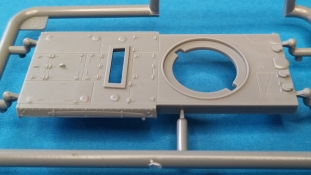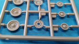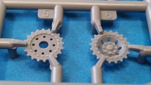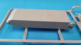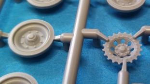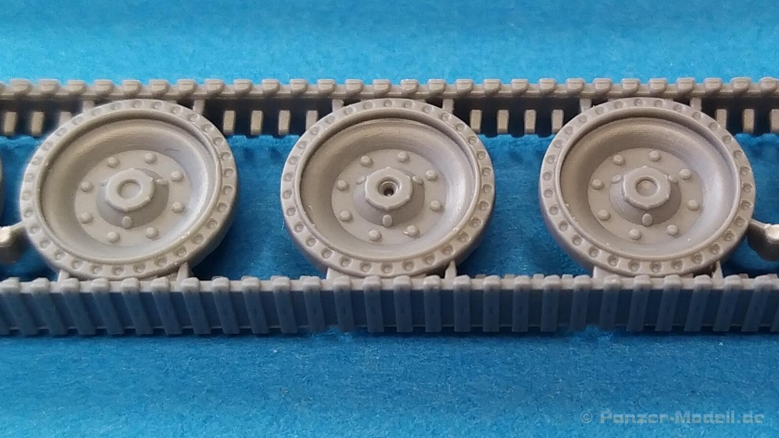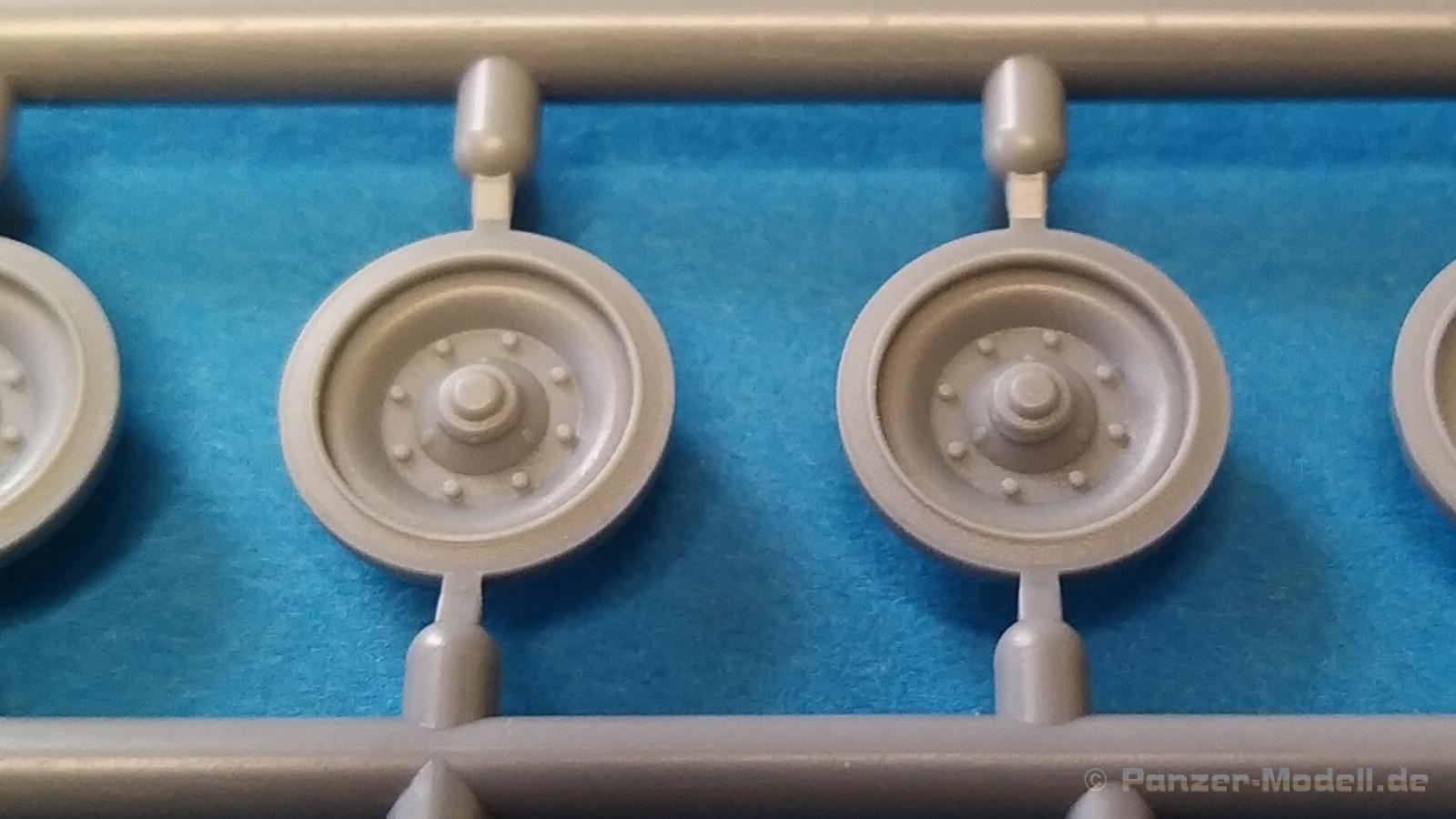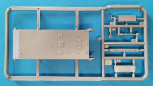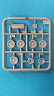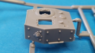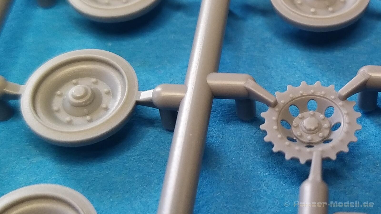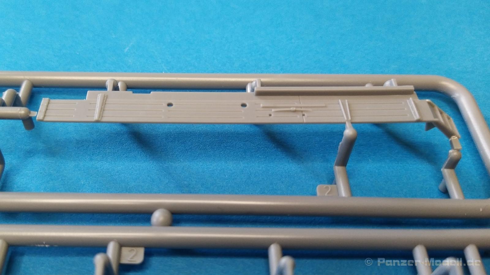 Nachdem bereits 2021 ein Cromwell-Bausatz (damals Hull Type C) erschienen war haben wir hier nun eine andere Wannenart (Hull-Type) und andere Bauteile. Hinter der Bezeichnung „Cromwell Mk. IV British Tank“ verbirgt sich die meist produzierte Version der schnellen und relativ gut bewaffneten Mk. VIII Kreuzerpanzer, die von den Briten während des zweiten Weltkrieges entwickelt wurden. Offiziell betitelt wurden diese Fahrzeuge als „A27M Cromwell Mk. IV“. Diese Fahrzeuge sind eine Kombination aus einer Centaur-Rumpfwanne und einem Rolls-Royce Meteor-Motor (A27M) der dem Fahrzeug eine hohe Geschwindigkeit und Mobilität verlieh. Charakteristisch für die hier gezeigte Wanne „Type D“ ist die Seitenluke für den MG-Schützen links vorne in der Wanne und die zweiteilige Fahrerluke rechts vorne im Wannendach. Die Besatzung bestand aus 5 Soldaten die als Bewaffnung eine 75mm-Schnellfeuerkanone und zwei MG´s zur Verfügung hatten. Bei der Kanone handelt es sich um eine aufgebohrte Version der britischen 6-Pfünder-Kanone, die ursprünglich Ende 1943 eingeführt wurde. Der Turm dieses Panzertyps war eine geschraubte Konstruktion, bei dem 51mm starke Seitenplatten auf ein geschweißtes Innengehäuse mit einer Wandstärke von 12,7mm aufgeschraubt wurden. Anhaltende technische Probleme mit der Hauptbewaffnung führten dazu, dass die Cromwell Mk. IV erst im Juni 1944 bei der Landung in der Normandie zum Einsatz kamen. Hier konnten sie leider nicht in den engen und von Hecken gesäumten Gassen der Einsatzräume ihre im Vergleich zu den eingesetzten Sherman-Panzern deutlich bessere Mobilität zum Einsatz bringen. Um das Problem mit den einengenden Hecken und Buschwerken in den Griff zu bekommen wurden an der Vorderseite „Heckenscheren“ aus Stahlklingen befestigt, womit die Fahrzeuge in der Lage waren Hindernisse unter Panzerschutz zu beseitigen und sich den Weg zu bahnen. Dieses markante Bauteil ist erfreulicherweise auch im Bausatz enthalten, wird aber bei den gezeigten Markierungsvarianten nicht benötigt. Nun aber zum eigentlichen vorliegenden Modell. Der Stülpkarton (30 x 20 x 4,5cm) offenbart den folgenden Inhalt: - 1x achtseitige Bauanleitung mit ausführlichen Schritt-für-Schrittanleitungen in 8 Baustufen und 4 Farb- und Markierungsvarianten am Ende - 1x Spritzling (A) in grauem Kunststoff mit Teilen der Unterwanne - 2x Spritzling (B) in grauem Kunststoff mit Teilen für Laufrollen, Antriebsrädern, Staukisten, etc. - 1x Spritzling (L) in grauem Kunststoff mit Teilen der Oberwanne - 1x Spritzling (E) in grauem Kunststoff mit Teilen für Bugplatte und Funker-MG - 1x Spritzling (G) in grauem Kunststoff mit Teilen für „Heckenschneider“ und Hauptbewaffnung - 1x Spritzling (J) in grauem Kunststoff mit Teilen für die Kettenbleche - 1x Spritzling (F) in grauem Kunststoff mit Teilen des Wannenhecks - 1x Spritzling (K) in grauem Kunststoff mit Teilen des Turmes - 1x Spritzling (J) in grauem Kunststoff mit Teilen für Laufrollen, Antriebsrädern, etc. - 1x separates Laufwerk links - 1x separates Laufwerk rechts - 1x Fotoätzplatine mit Teilen wie z. B. Lüftergitter, Lampenschutzbügel, etc. - 1x Decalbogen mit vier verschiedenen Markierungsvarianten Wie von IBG gewohnt ist die Detailierung und Gravierung der Teile sehr gut. Die Abspritzung der Bauteile ist tadellos. Alle Angüsse sind so gewählt, dass man diese gut entfernen kann. Auf den Bauteilen sind keine nennenswerten Auswerfermarken an später sichtbaren Stellen zu sehen. Ein Highlight vieler Panzerbausätze von IBG sind auch die hier die in einem Stück gefertigten Ketten mit angegossenen Hälften der Laufrollen. Diese können somit schon mal komplett bemalt werden, bevor die zweite Hälfte der Laufrollen, Antriebs- und Spannräder ergänzt werden. Die angegossenen Laufräderhälften bei den Kettenlaufwerken hören sich nach „einfacher Darstellung“ an, ist es aber absolut nicht. Kettenstruktur, Verschraubungen, und Kettenführungszähne sind sehr fein ausgeführt. Fotoätzteile kommen nur für wenige und sinnvolle Teile zum Einsatz. Sie sind aber nicht optional zu Plastikteilen zu verwenden, sondern werden immer zum Bau benötigt. U.a. müssen Lampenschutzbügel, Kettenblechhalter und das charakteristische Lüftergitter auf dem Wannenheck aus diesem Material gebaut werden. Im Turmdach lassen sich die Luken der Besatzung offen oder geschlossen darstellen. Dafür liegen geschlossene einteilige und geteilte offene Versionen der Luken bei. In der Wanne geht das leider nicht, da die Luken nur geschlossen dargestellt sind. Das Rohr der Hauptbewaffnung ist erfreulicherweise zusammen mit offener Rohrmündung in einem Stück hergestellt. Hier muss also nichts nachträglich aufgebohrt werden oder umständlich aus mehreren Teilen zusammengesetzt werden. Die Bauanleitung ist zweisprachig ausgelegt. Es gibt Hinweise in polnischer und englischer Sprache. Sie ist sehr übersichtlich aufgebaut. Auf der ersten Seite findet man eine Übersicht der enthaltenen Decals und Fotoätzteile. Außerdem sind hier auch Farbangaben in tabellarischer Form für die Hersteller Vallejo, Hataka, Life Color, Mr. Hobby, und AK Interactive aufgeführt. Auf der nächsten Seite finden wir eine Übersicht der insgesamt elf enthaltenen Spritzlinge und zwei separate Laufwerksseiten. Nun folgt die eigentliche Bauanleitung, die sich in nur 8 Baustufen gliedert. Hier wird pro Baustufe anhand von einfarbigen 3D-Zeichnungen Schritt für Schritt der Weg zum fertigen Modell dargestellt bzw. erklärt. Der Zusammenbau startet mit den Kettenlaufwerken links und rechts. Hier müssen lediglich die äußeren Hälften der Laufrollen, Antriebsräder und Spannrollen montiert werden. Hier ergibt es Sinn, die einzelnen Teile zuerst zu bemalen und dann zu komplettieren. Im Anschluss werden die fertigen Laufwerke dann an der Unterwanne angebracht und diese dann noch mit Wannenheck und front ergänzt. Am Wannenheck müssen versionsspezifisch noch zwei nicht benötigte angegossene H