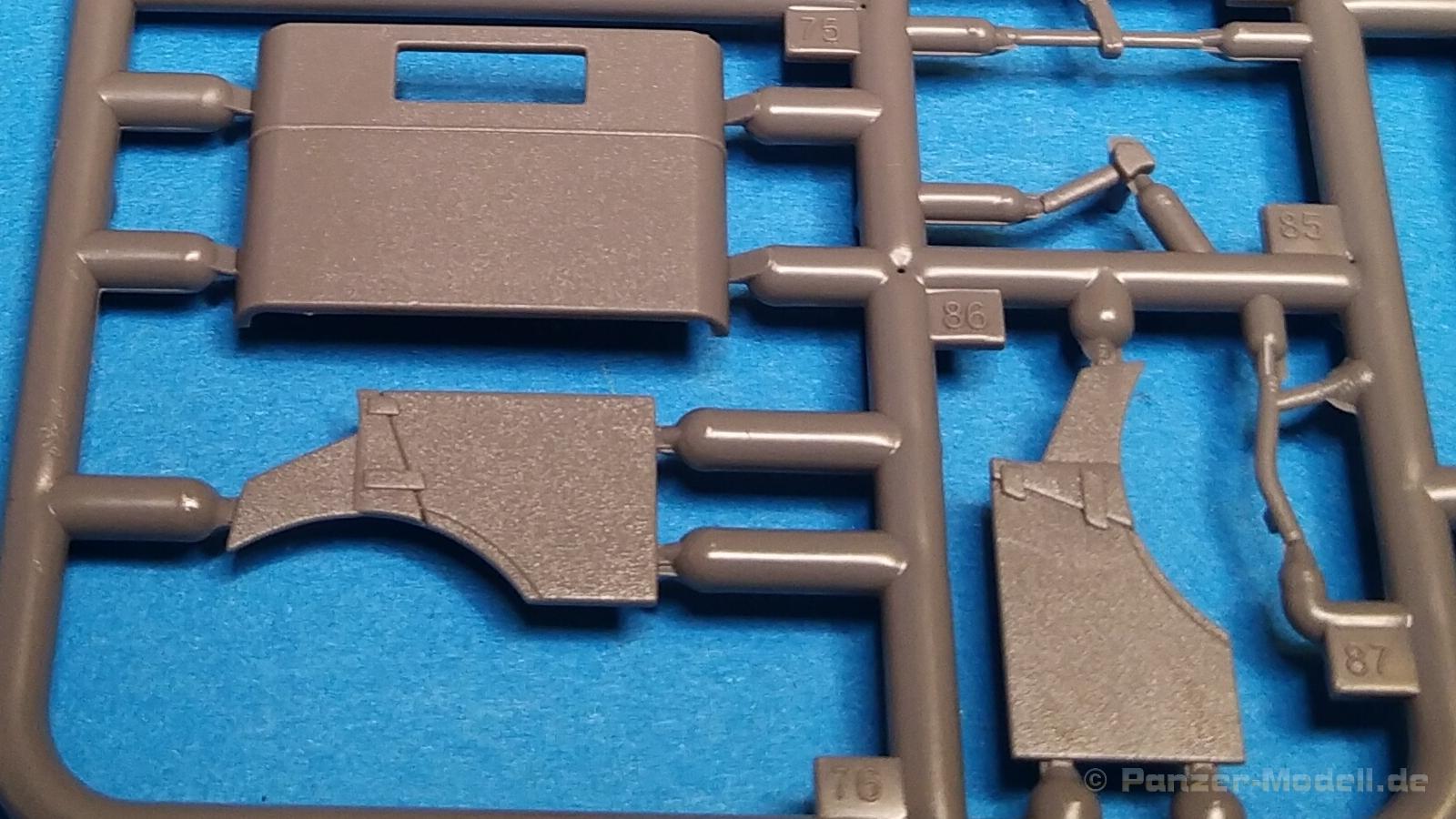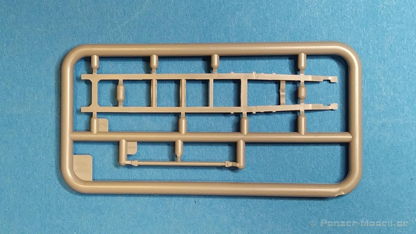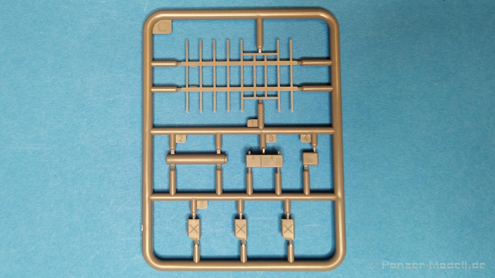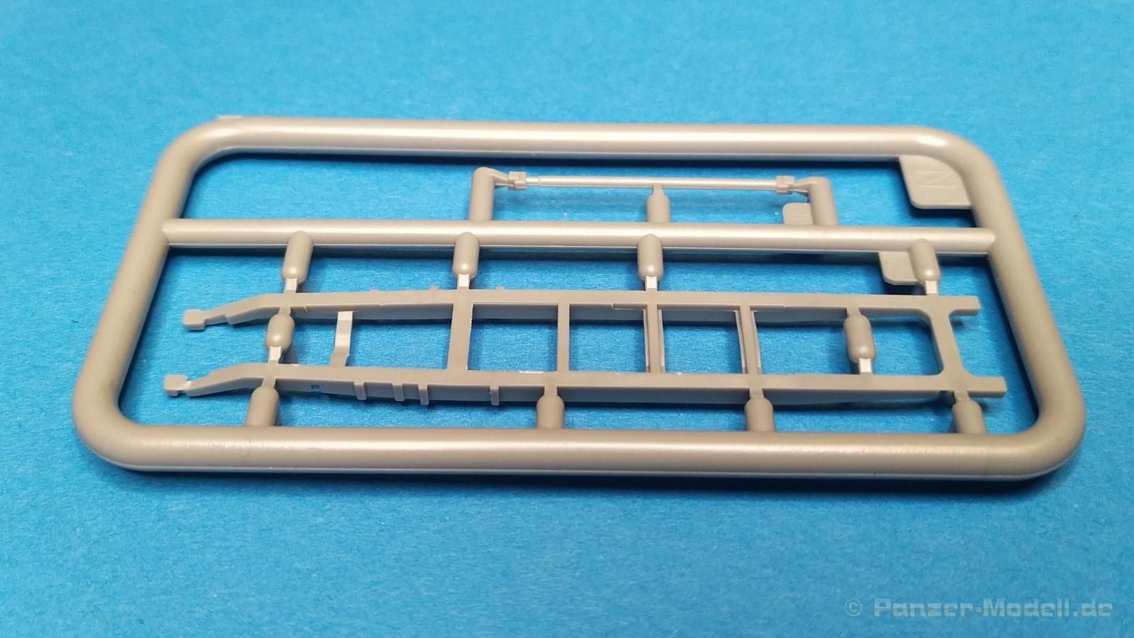 Die von IBG gewohnte Qualität in Detailierung und Gravierung der Teile ist auch bei diesem Bausatz wieder zu bewundern. Die Abspritzung der Bauteile ist tadellos. Alle Angüsse sind so gewählt, dass man diese gut entfernen kann. Nennenswerte Auswerfermarken an später sichtbaren Stellen sind nicht zu finden. Es gibt ältere vom Grundbausatz stammende Spritzlinge (ohne Bezeichnung) und neue Bauteile (Spritzlinge mit Bezeichnung). Wichtige und entscheidende Bauteile dieser Version wie die Räder, Rahmen und der Kofferaufbau wurden als neue Teile / Spritzlinge beigelegt. Dankenswerterweise ist der neue verlängerte Leiterrahmen als ein zusammenhängendes Bauteil konstruiert. So ist ein Ausrichten von Einzelteilen nicht nötig und der weitere Aufbau steht so auf einem soliden geraden „Fundament“. Genauso wie bei der Version „Office Lorry“ besitzt die Fahrerkabine auch hier eine Inneneinrichtung mit Pedalerie und Lenkrad. Konstruktionsbedingt lassen sich die Türen leider auch nicht geöffnet darstellen um später einen Blick darauf beim fertigen Modell zu ermöglichen. Auch die bekannte einfache Motornachbildung ist wieder vorhanden. Fotoätzteile kommen erst beim Bau des Kofferaufbaus und der Reserveradhalterung zum Einsatz. Sie sind aber nicht optional zu Plastikteilen zu verwenden, sondern werden immer zum Bau benötigt. Im Innenraum muss z.B. ein Regal aus diesem Material hergestellt werden. Und auch die Reserveradhalterung ist ein Modell am Modell aus PE-Teilen. Dünnwandige Schmutzfänger unter der Kabine und vorgenannte Dinge bewirken aber einen sehr hohen Grad an Feinheit und Detaillierung. Beim Kofferaufbau kann man die Hecktüren offen oder geschlossen bauen. Hier könnte man evtl. auch das Kofferdach lose auflegen um später einen besseren Blick auf den Innenraum zu erhalten. Alle Fenster des Bausatzes liegen als vorgezeichnete markierte Elemente auf einem Klarsichtfilm bei. IBG-typisch ist die übersichtliche Bauanleitung zweisprachig in polnisch und englisch ausgelegt. Auf der ersten Seite findet man eine Übersicht der enthaltenen Decals, Fotoätzteile, Klarsichtfilms und der insgesamt acht enthaltenen Spritzlinge. Mit einer Tabelle mit Farbangaben für die Hersteller Vallejo, Hataka, Life Color, Mr. Hobby, Lifecolor und AK Interactive endet die Einleitung. Auf der nächsten Seite beginnt auch schon die eigentliche Bauanleitung, die sich in 17 Baustufen gliedert. Einfarbige 3D-Zeichnungen pro Baustufe zeigen Schritt für Schritt der Weg zum fertigen Modell. Der Zusammenbau startet in Baustufe 1 mit dem Bau der Vorderachse, gefolgt von der Hinterachse in Baustufe 2. Die Motornachbildung wird in Baustufe 3 behandelt. Dann geht’s auch schon an den Zusammenbau der Fahrerkabine. Die Arbeiten dazu laufen bis in Baustufe 6. Dankenswerterweise wird am Ende eines Teilbereichs (z.B. Fahrerkabine) immer eine Zeichnung des fertigen Zustandes mit dargestellt. Mit dem Fahrgestell bzw. Leiterrahmen und den dazugehörigen Anbauteilen wie Achsaufhängung, Tanks, Stoßstange, etc. beschäftigen sich die Baustufen 7 bis 10. Den Abschluss bildet hier in Baustufe 10 die Montage der Räder. Ab der Baustufe 11 beschäftigen wir uns dann mit der Kabine und hier dann auch das erste Mal mit den enthaltenen Fotoätzteilen. Ein Regal muss dazu sauber und ordentlich gefaltet werden um eine korrekte „gerade“ Form zu erhalten. Alle anderen „Einbauten“ wie z.B. die Sitz- bzw. Liegebänke sind aus Plastikteilen zusammenzusetzen. Hier ist es bestimmt von Vorteil eine Teilbemalung des Kofferaufbauinnenraums durchzuführen, bevor man am Schluss dort nur schwer an Details herankommt. In den folgenden Baustufen werden dann nach und nach die Wände es Kofferaufbaus mit Details und Fenstern versehen und das ganze am Ende der Baustufe 14 mit dem Einbau der Türen komplettiert. In Baustufe 15 werden noch Teile unter dem Aufbau ergänzt und im Folgenden mit der sehr filigranen Reserveradhalterung schließlich in Baustufe 17 mit dem Fahrgestell vereinigt. Das Ende der Bauanleitung zeigt dann noch eine Zeichnung des fertig zusammengebauten Modells. Zu guter Letzt folgt auf der Rückseite der Anleitung ein Bemalungs- und Markierungsvorschlag: 1. Chevrolet C60L, ohne Kennzeichen, unbekannte Einheit, unbekannter Ort, unbekannter Zeitpunkt, einfarbig oliv drab Der mit nur zwei roten Kreuzen sehr übersichtliche Decalbogen kommt auf einem hellblauen Trägerpapier daher, augenscheinlich fällt kein Versatz beim Druck der Rotkreuzmarkierungen auf. Fahrzeugkennzeichen sind leider Fehlanzeige. Mein Fazit: Schlag auf Schlag folgen bei IBG Models weitere Versionen der bekannten Canadian Military Pattern Trucks (CMP) aus der Zeit des zweiten Weltkrieges im Maßstab 1:72. Ich bin gespannt welche Versionen noch erscheinen. Bei diesem Bausatz wurden Teile des bekannten Grundbausatzes mit neuen Teilen für den Aufbau und feiner detaillierten Rädern zu einer neuen Fahrzeugvariante zusammengestellt. Hier nun in der Variante des „San-Koffers“, der sicherlich auf vielen Dioramen seinen Platz finden wird. Die Detaillierung des Kofferaufbaus mit einigen Fotoätzteilen ist hervorragend, wenn auch z. B. die zu „faltende“ Reserveradhalterung für den ein oder anderen Modellbauer etwas abschreckend ist. Aber zu dem Bausatzpreis kann man sich ruhig einmal genauer mit dem Thema beschäftigen. Der Preis für die dargebotene Zusammenstellung und Qualität von Spritzgussteilen und Fotoätzteilen sind absolut ok. Die zu verwendenden Fotoätzteile machen den Bausatz sicherlich eher für den fortgeschrittenen Modellbauer geeignet. Für den aufgerufenen Preis von 15,50 Euro eine absolute Kaufempfehlung!